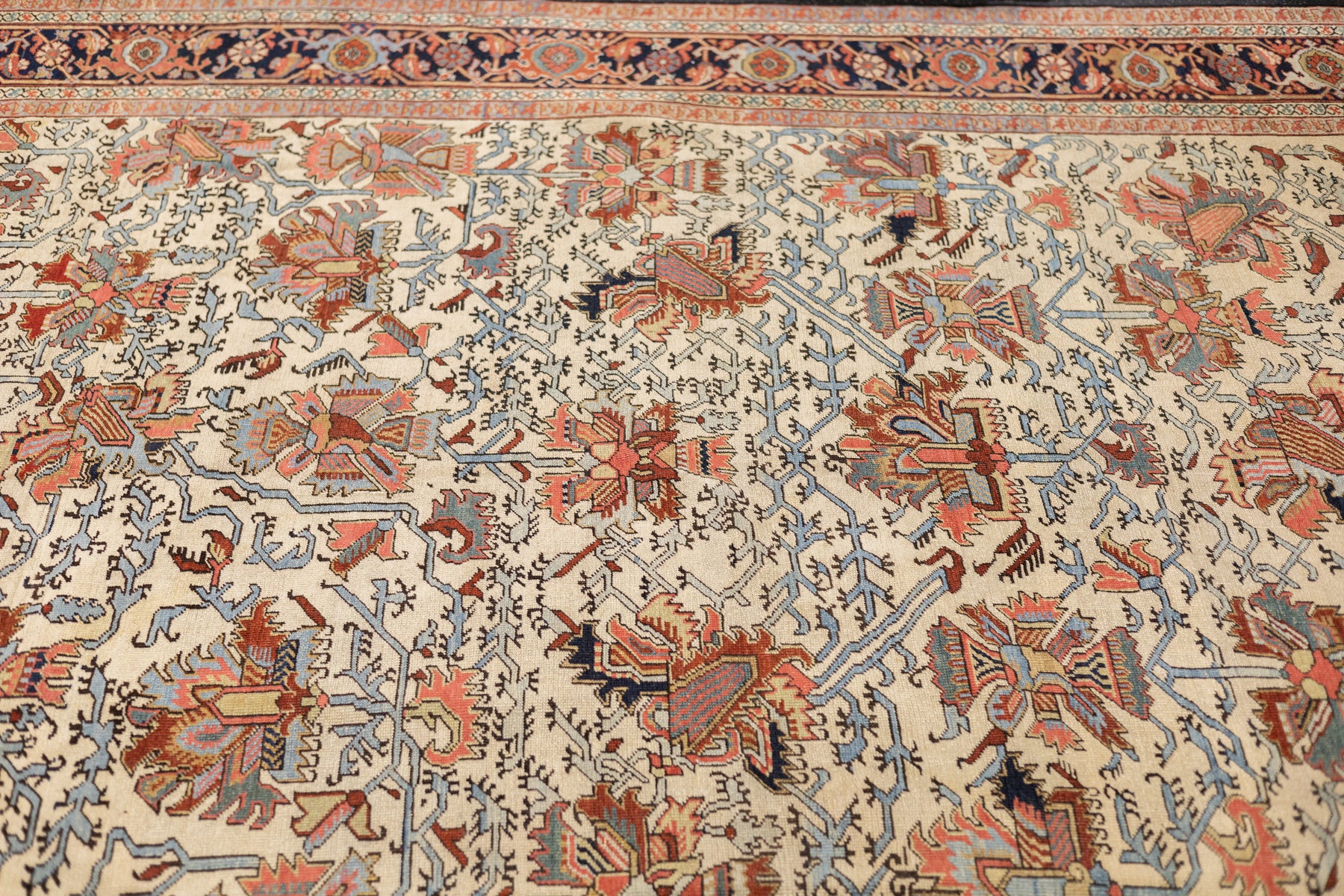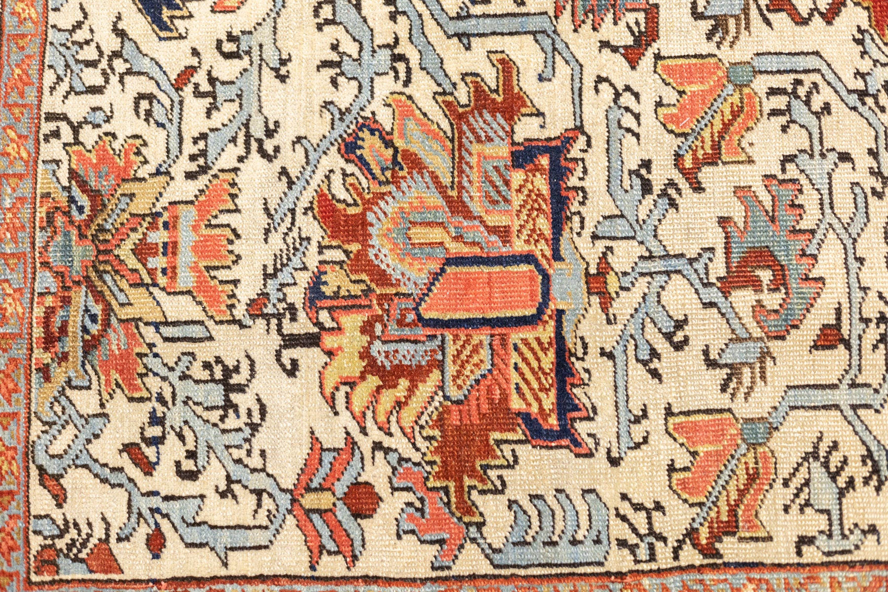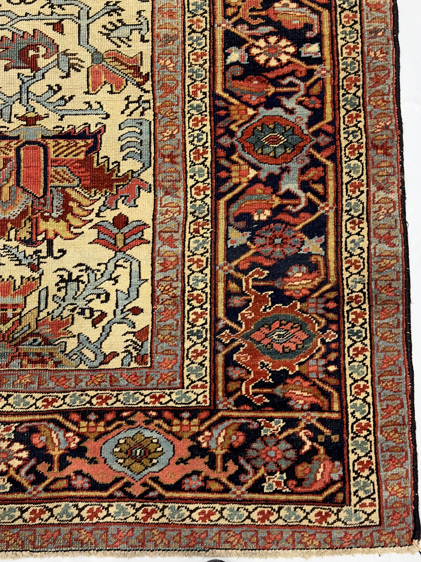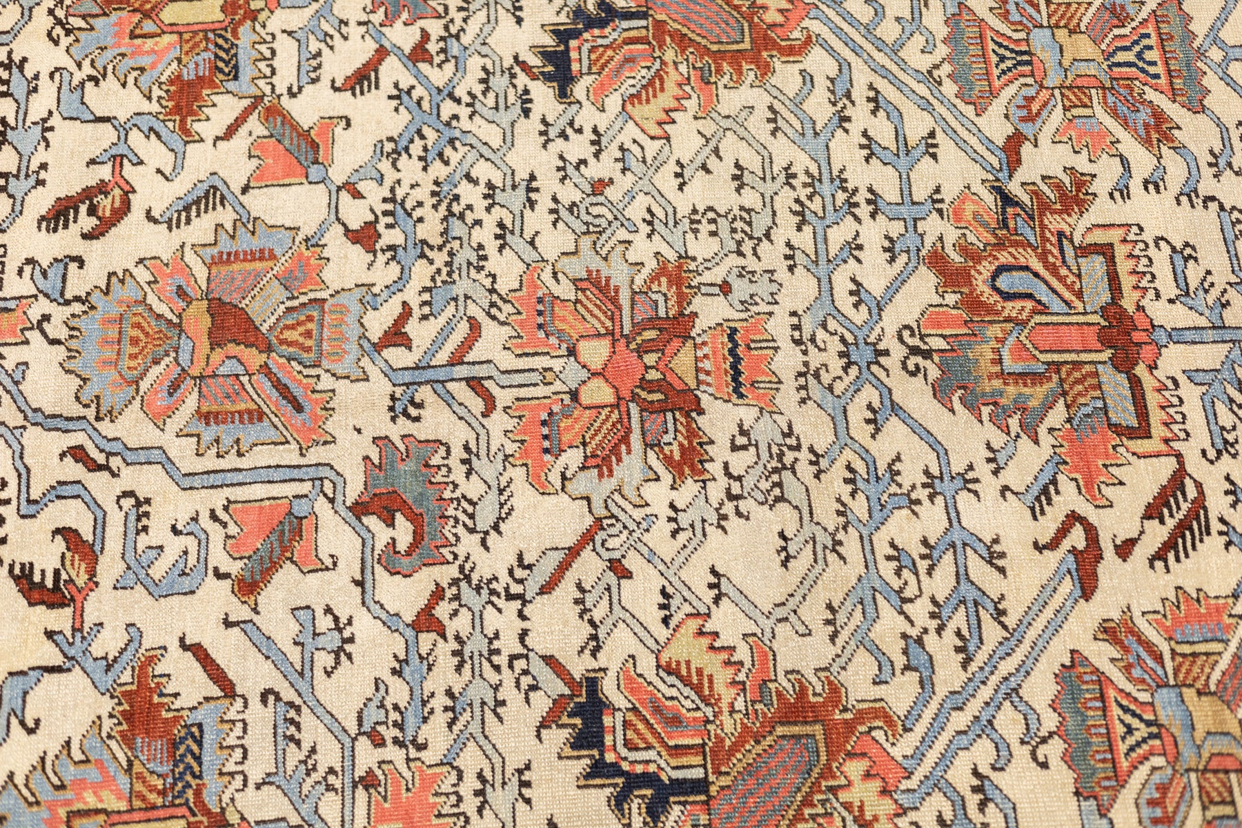 The numerous rugs of the famous NW Persian weaving district, from small scatters to giant carpets and a few runners, in semi-geometric medallion, centralized and strictly allover patterns, on cotton foundations, with crisp natural dye palettes including a warm madder red. Coarse to moderate weave. Works with any décor, always popular.