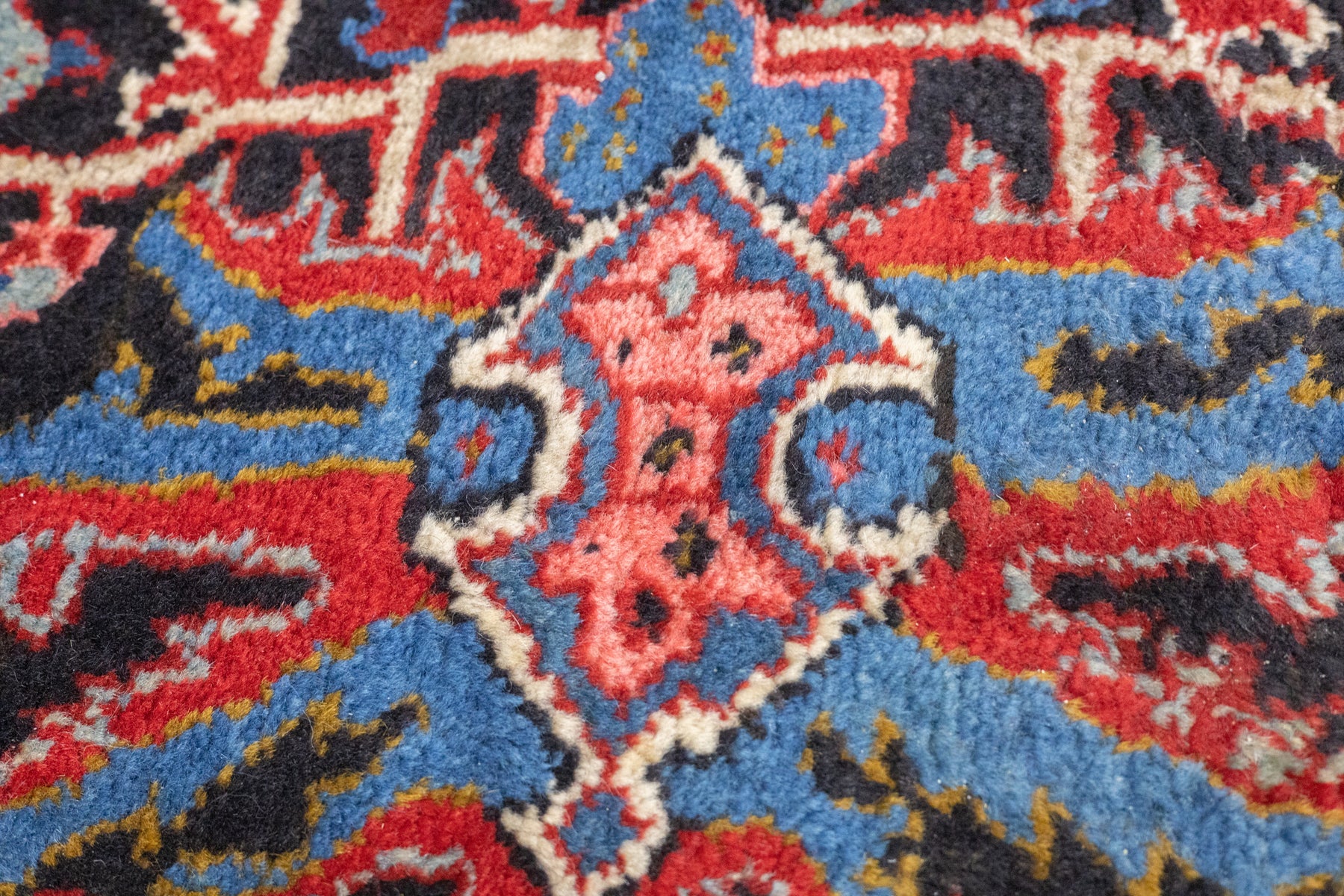 The numerous rugs of the famous NW Persian weaving district, from small scatters to giant carpets and a few runners, in semi-geometric medallion, centralized and strictly allover patterns, on cotton foundations, with crisp natural dye palettes including a warm madder red. Coarse to moderate weave. Works with any décor, always popular.