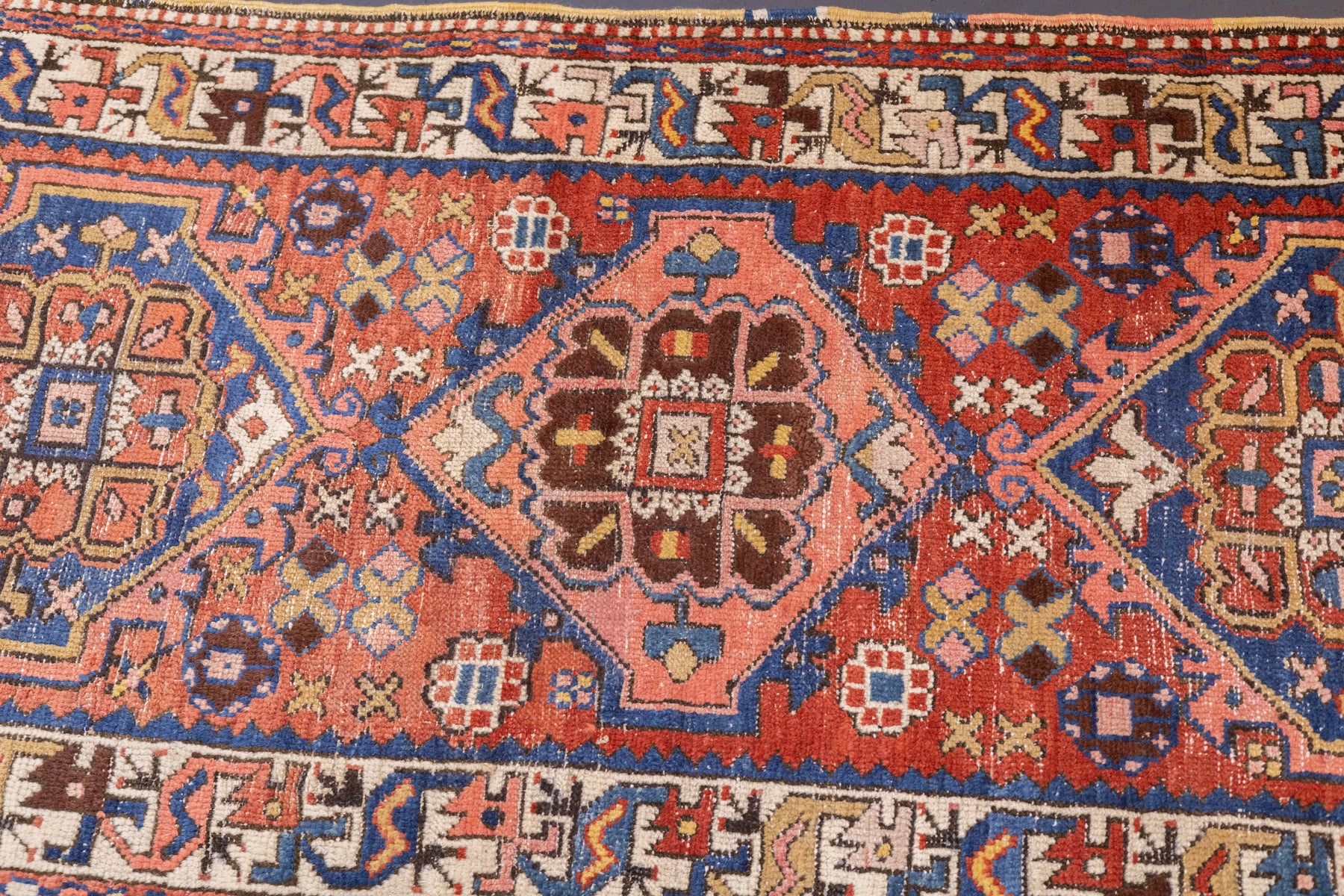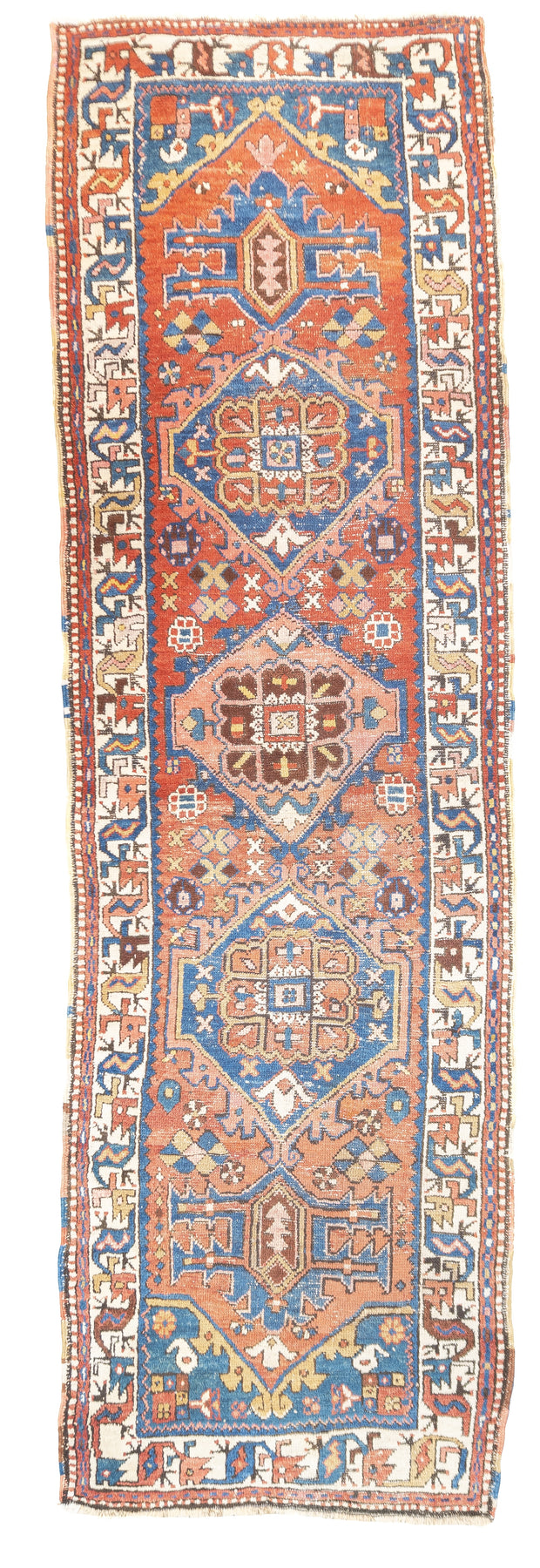The numerous rugs of the famous NW Persian weaving district, from small scatters to giant carpets and a few runners, in semi-geometric medallion, centralised and strictly allover patterns, on cotton foundations, with crisp natural dye palettes including a warm madder red. Coarse to moderate weave. Works with any décor, always popular.