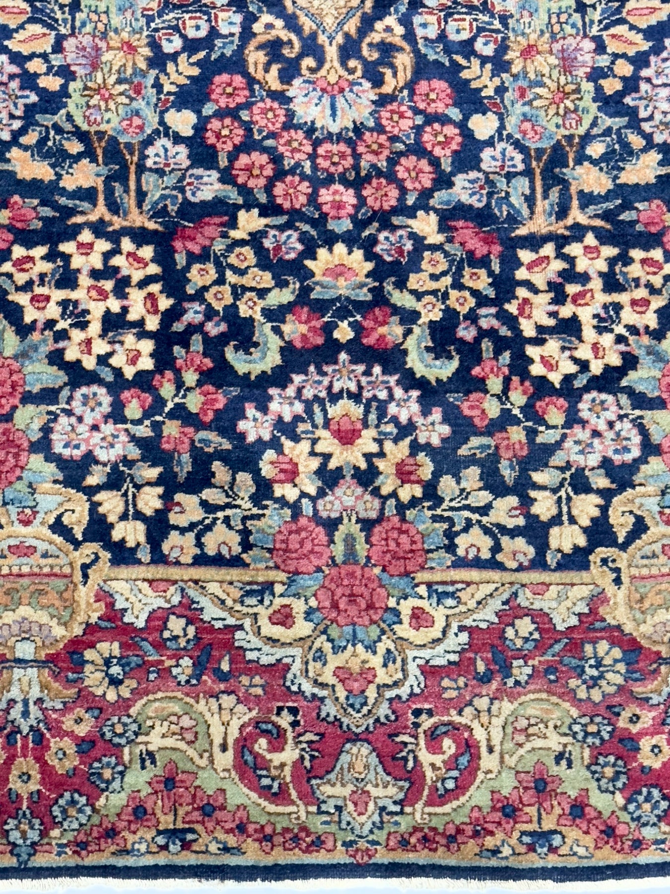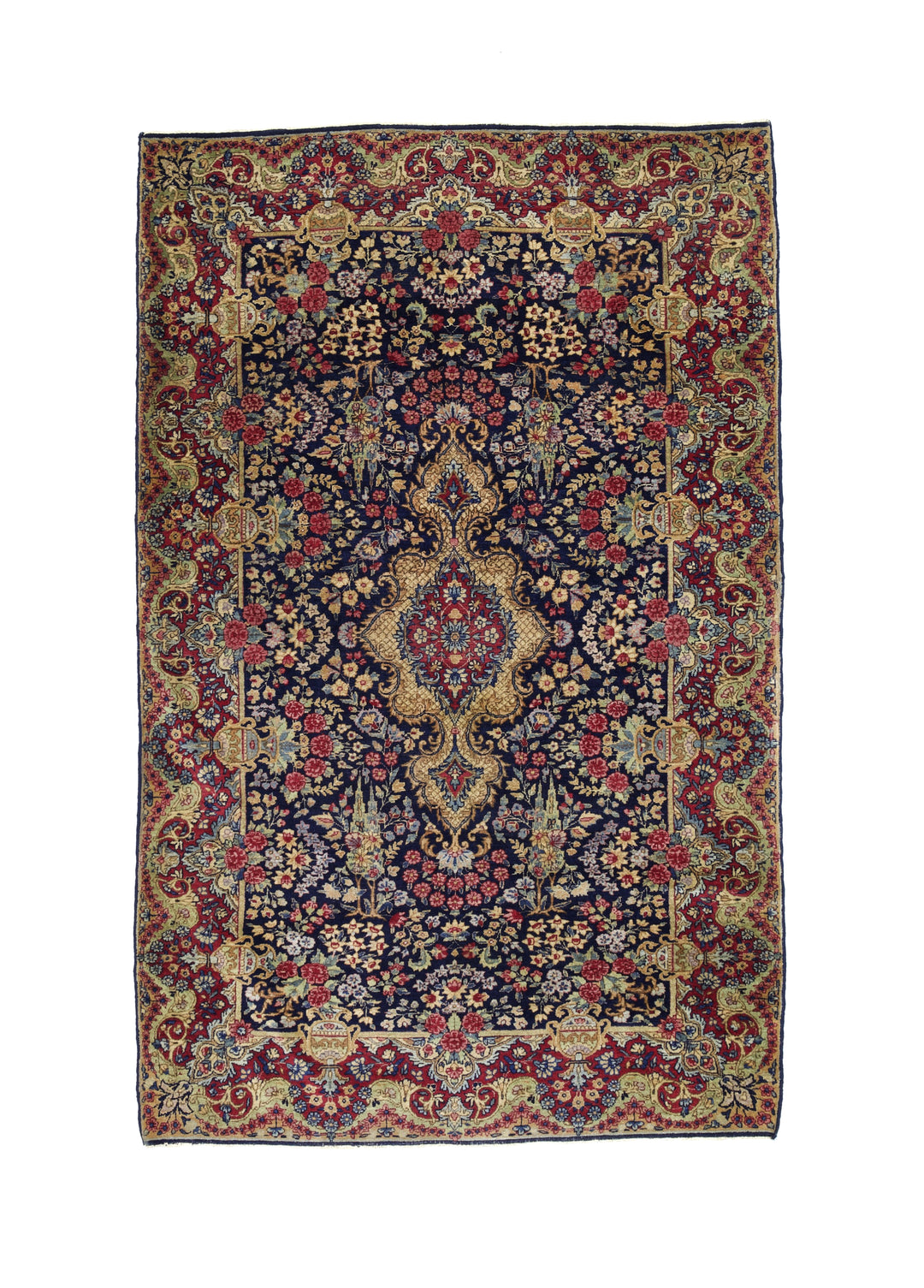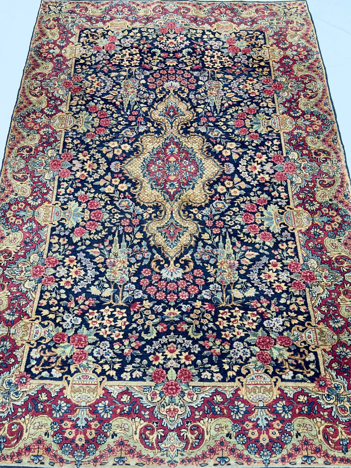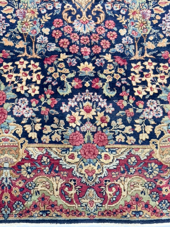 SE Persian city, famous since 17th century for an artistic variety of scatter rugs and large carpets in medallion and allover styles, changing with export tastes. In the 20th century, more popular in America. Antiques are brighter, but vintage carpets are softer. Complex, broad palettes in natural dyes. Fine to very fine weave. Recent pieces are undervalued.
