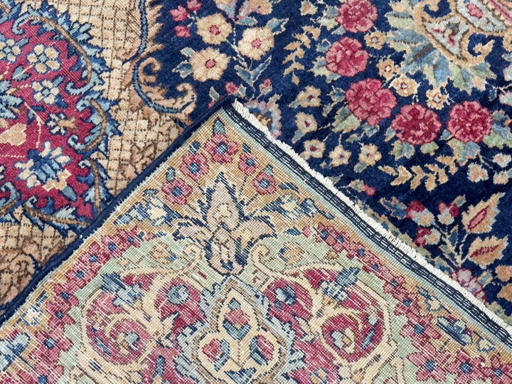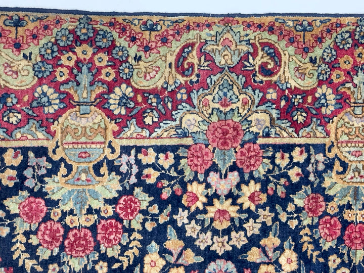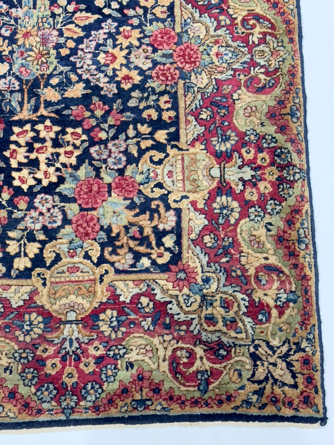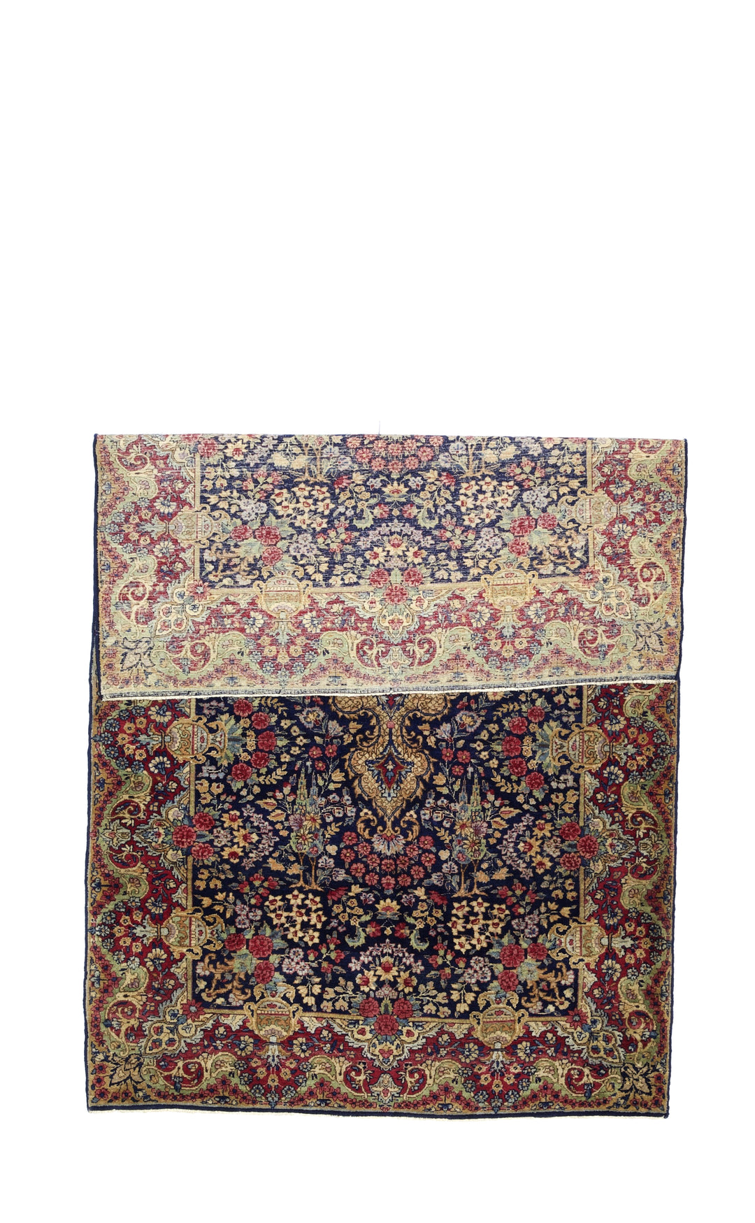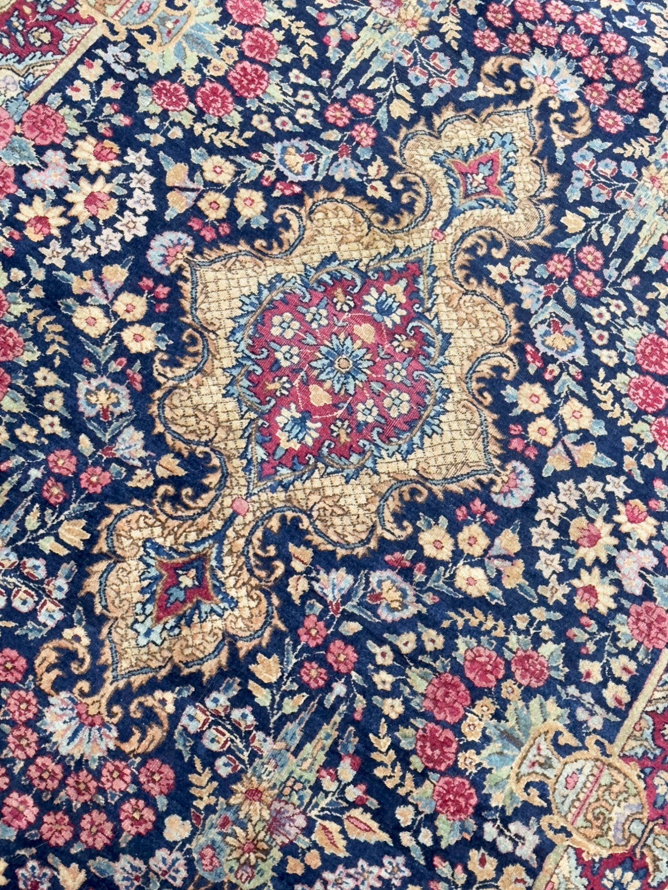 SE Persian city, famous since 17th century for an artistic variety of scatter rugs and large carpets in medallion and allover styles, changing with export tastes. In the 20th century, more popular in America. Antiques are brighter, but vintage carpets are softer. Complex, broad palettes in natural dyes. Fine to very fine weave. Recent pieces are undervalued.