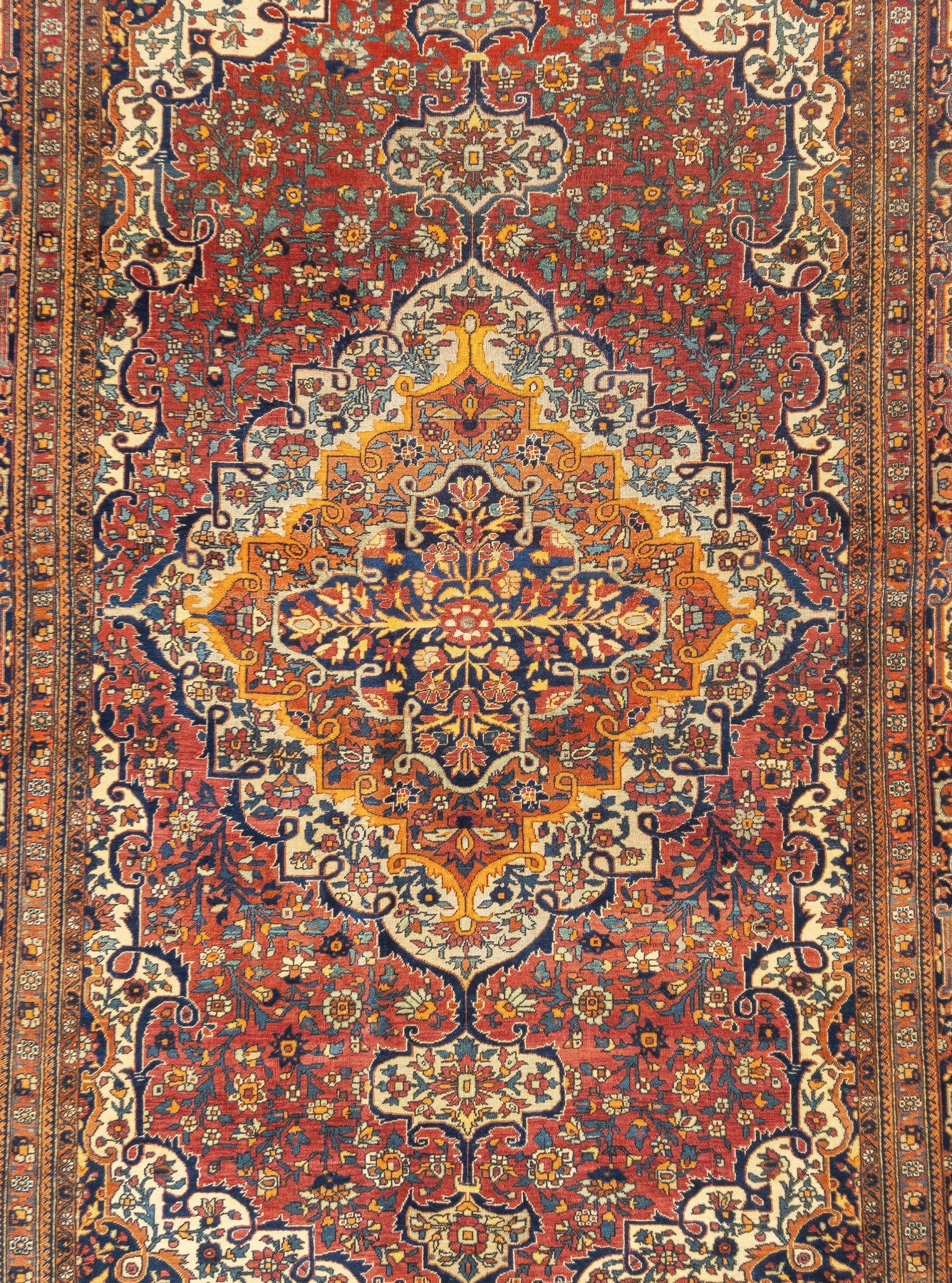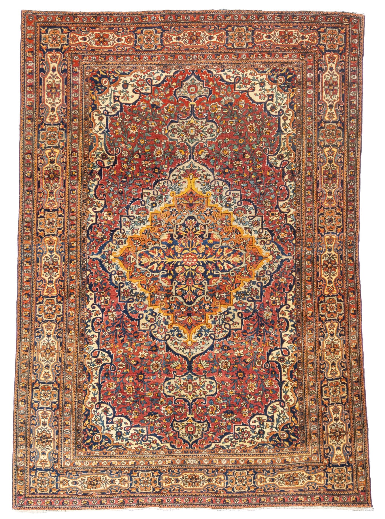 The Revival Period rugs woven by two generations of Mohtashams, from 1880 to WWI, with imported Manchester-spun, Australian merino wool. Velvety texture. Fine to very fine. Mostly medallion designs. Some directional/niche, allovers and pictorials. Scatters to large carpets.
