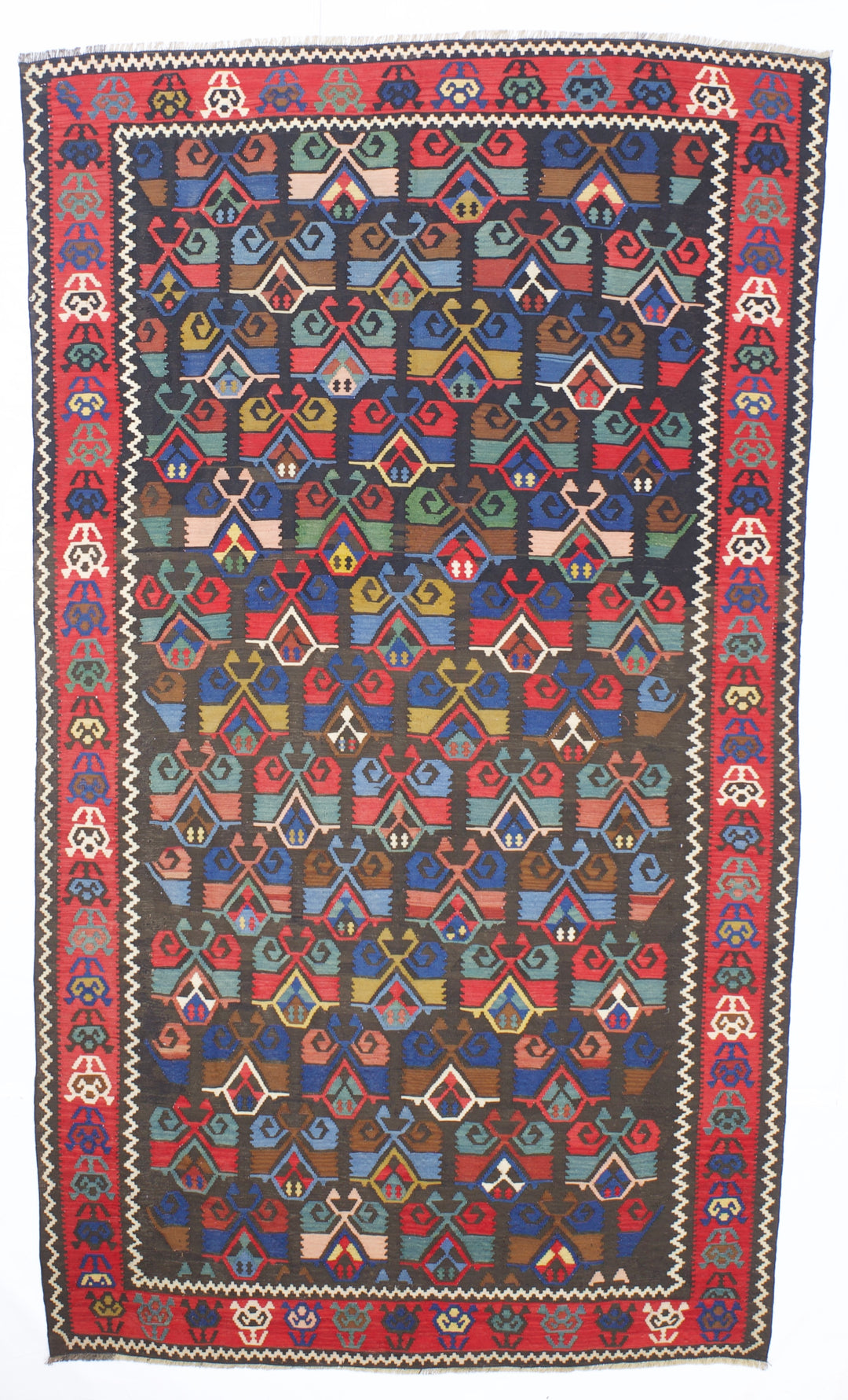 A technique rather than a type of rug. Technique is: slit tapestry, warp shared wefting, single or double weft interlocking. Also refers to plain weave bands at end finishes.Kilims are light weight, generally made by villagers and nomads originally for household use. Senna kilims are extremely fine and are more like wall tapestries than floor rugs. Dhurries are Indian all- cotton kilims.