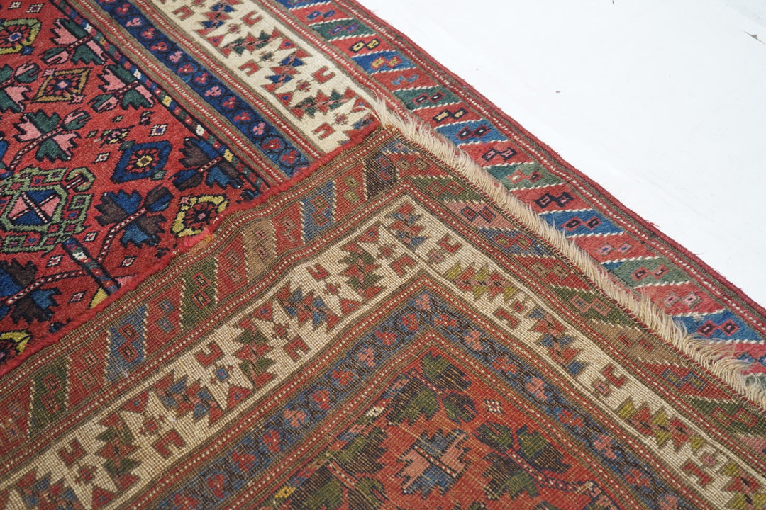 The town and surrounding Kurdish carpets of the eponym city, often in room or larger sizes. All wool before 1920, cotton warp afterward. Medallion and allover patterns. Heavy and compact. City weavers work from samplers (wagirehs). Village Bidjars are in scatter sizes, with more geometric patterns. Bidjar weaves range from moderate to very fine. Scatters yes, runners very few. Expensive, but incredibly long-wearing.