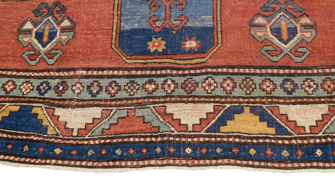 SW Caucasus/Armenia. Boldly patterned, strongly colored, totally geometric, all wool, coarse to moderate weave, medium to long pile, scatter format pieces, in medallion, allover and prayer (directional) layouts, with numerous identified source villages: Karachof, Bordshaly, Sewan, Shulaver and Lori Pambak. Natural dyes, decorative to highly collectible. Often dated.