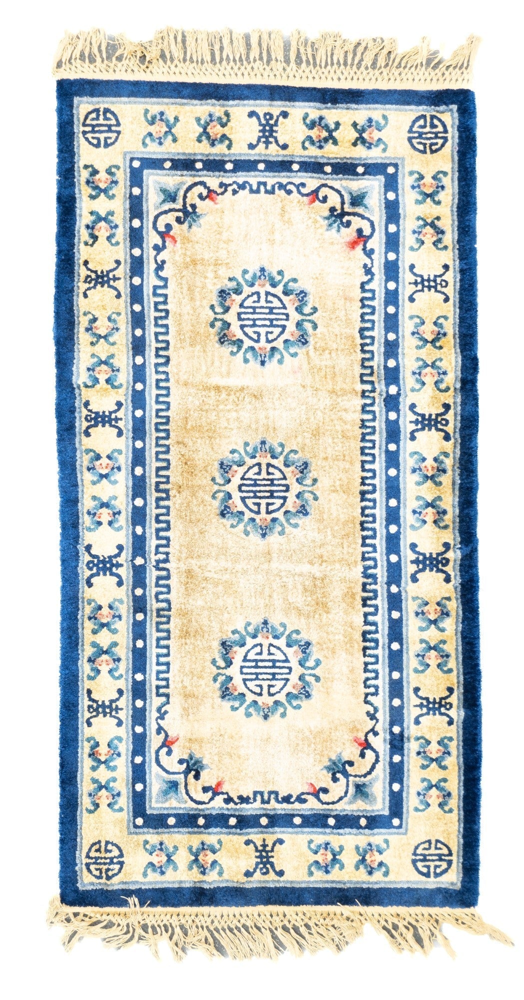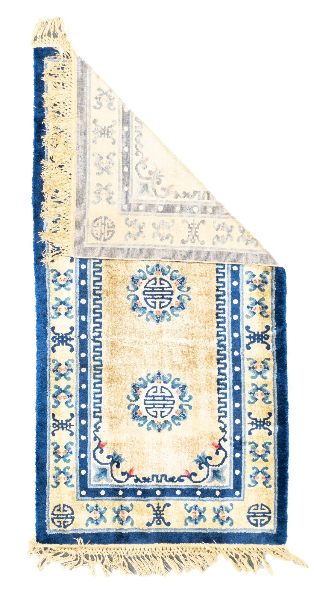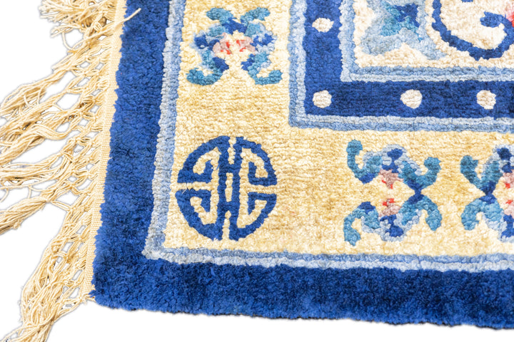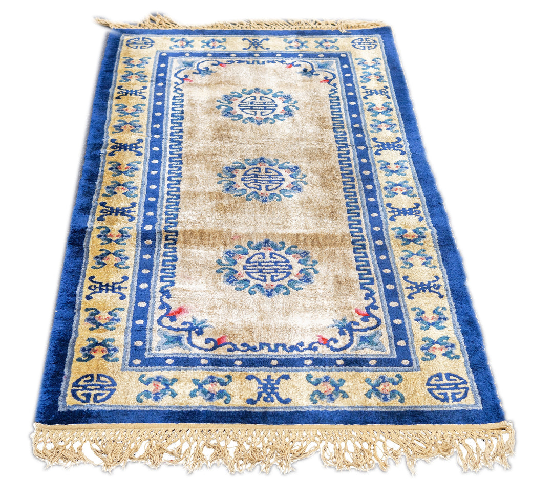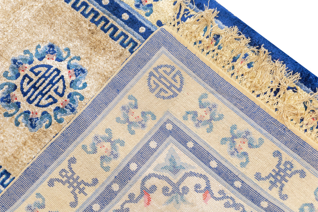 A generic term referring to any carpets made within the confines of the Middle Kingdom including: Ningxia (north central China), Peking (woven in the capital city), Tientsin (Tianjian, primarily Art Deco and from NE China, Xinjiang Province, (western China), Tibetan and Mongolian, from the 16th century onward, in sizes ranging from small ruglets to enormous palace sized creations, and generally with wool pile. Round and oval rugs.
