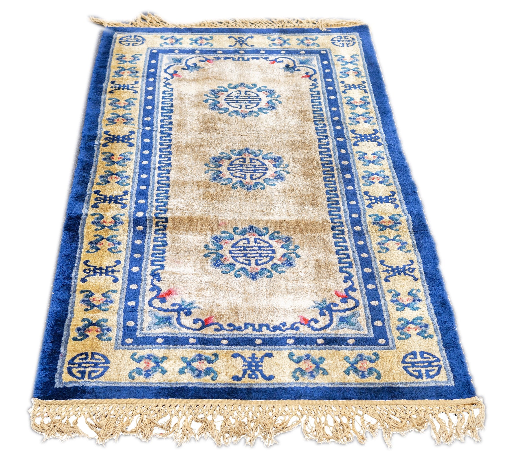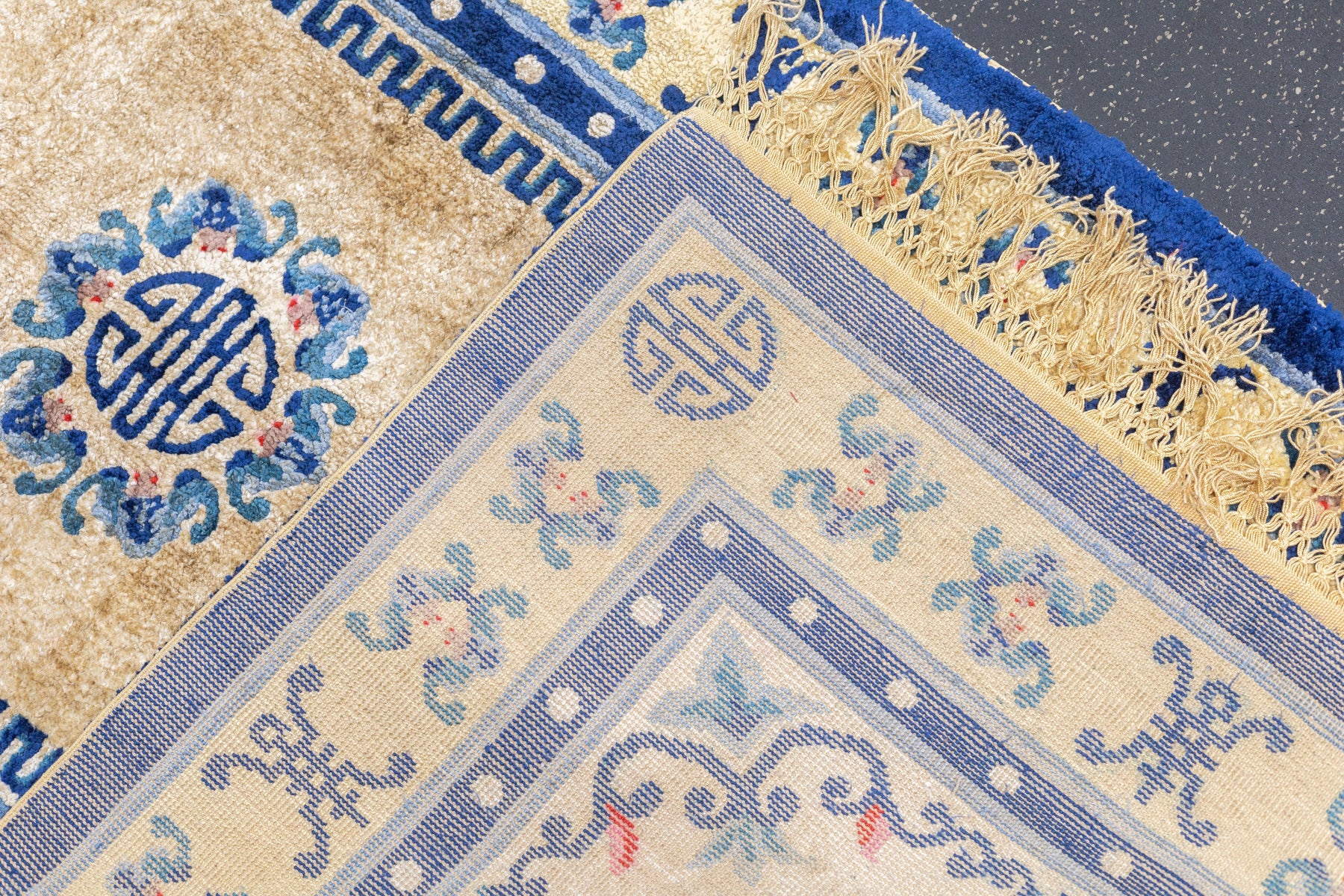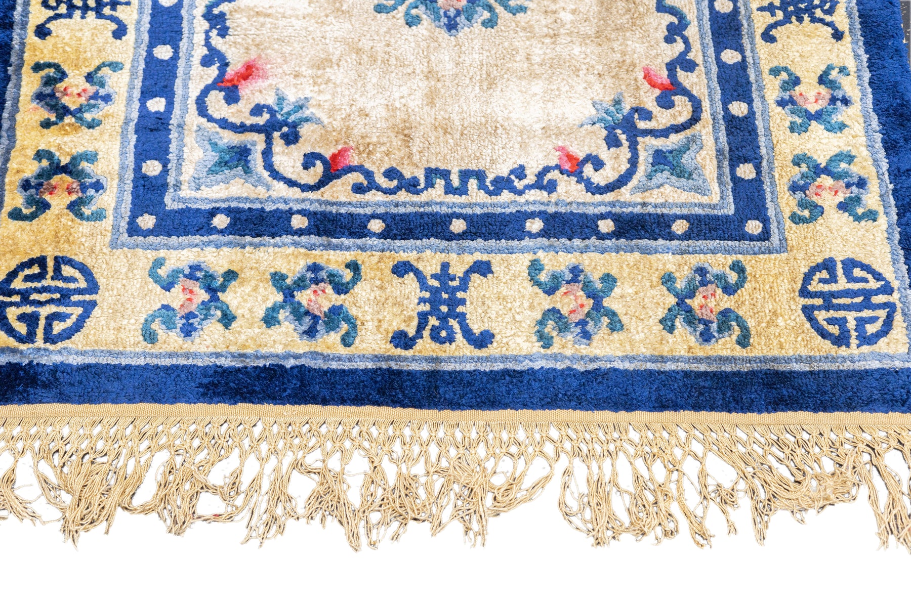 A generic term referring to any carpets made within the confines of the Middle Kingdom including: Ningxia (north central China), Peking (woven in the capital city), Tientsin (Tianjian, primarily Art Deco and from NE China, Xinjiang Province, (western China), Tibetan and Mongolian, from the 16th century onward, in sizes ranging from small ruglets to enormous palace sized creations, and generally with wool pile. Round and oval rugs.
