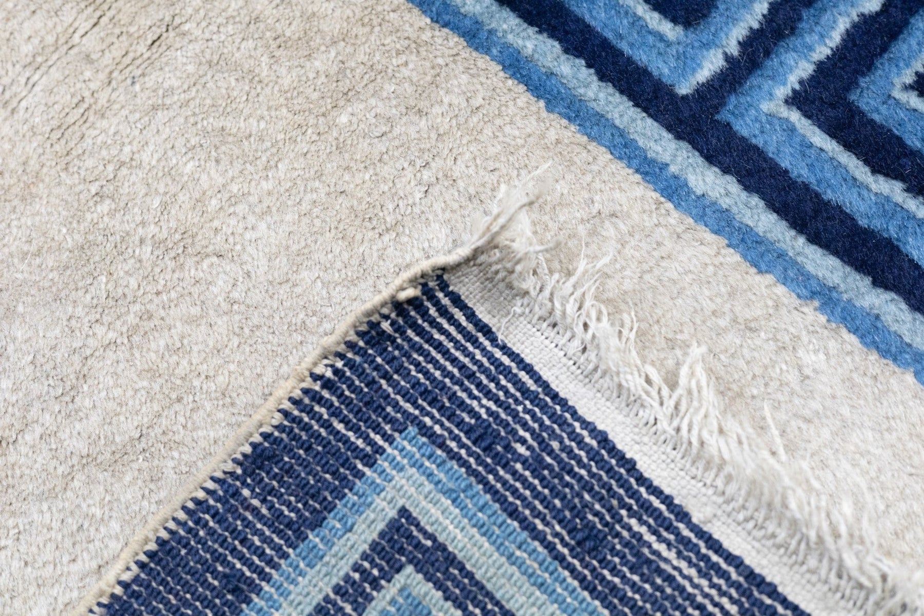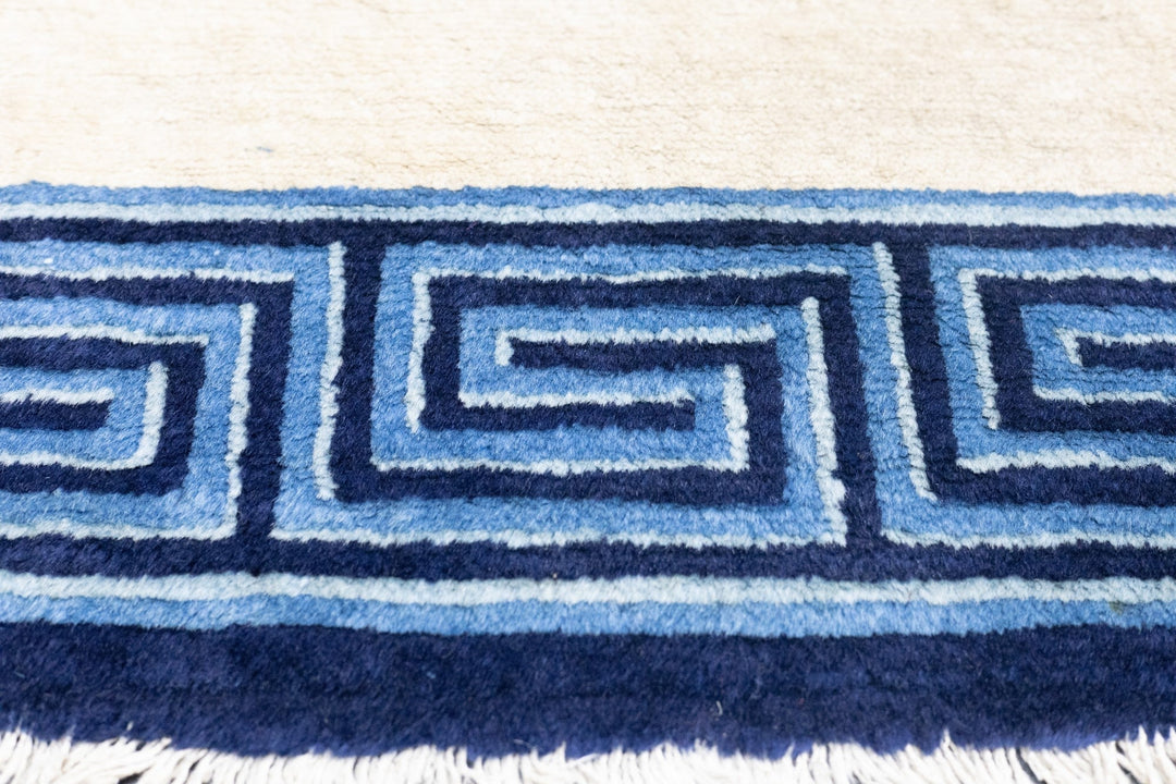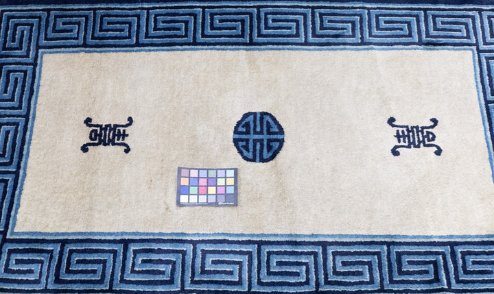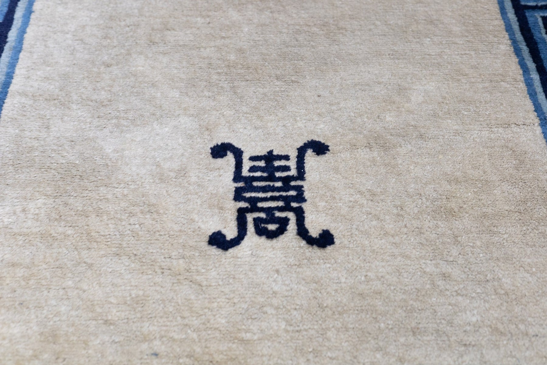 The Chinese carpets from the 19th century onward, in traditional patterns, often blue-and-white, in room sizes, scatters, and runners. A few pictorials. Moderate to medium weaves, cotton foundations. Medallions primarily.