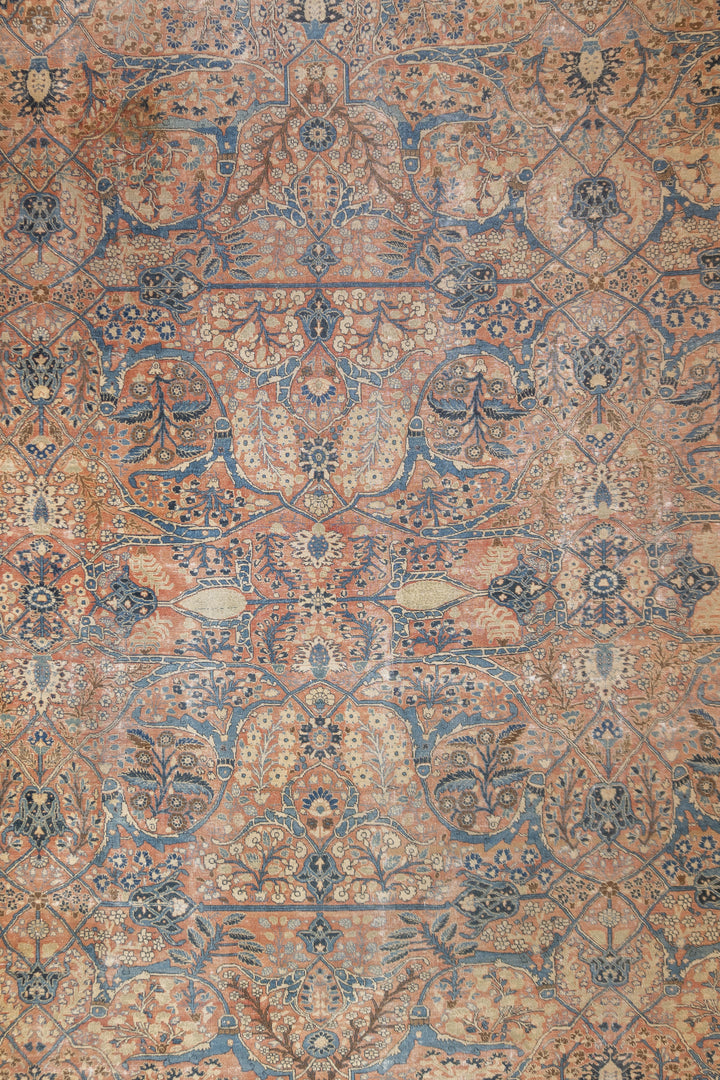 The well-woven to finely knotted 1890 to 1910 pieces woven in the eponymous workshop or its copyists, in Tabriz, in formats ranging from mats to giant carpets, with prayer (niche), allover and medallion layouts, with filled or open fields, often with a characteristic rust-red field tone. Prices are usually unsigned and undated. Cotton foundations, brisk pile. Expensive and up.