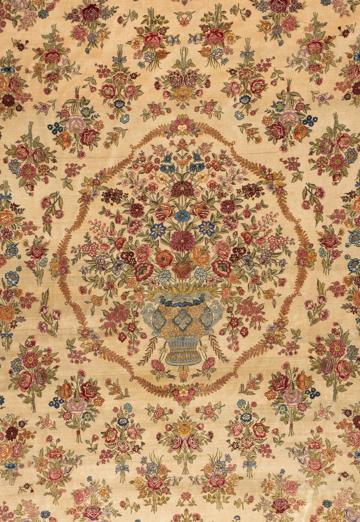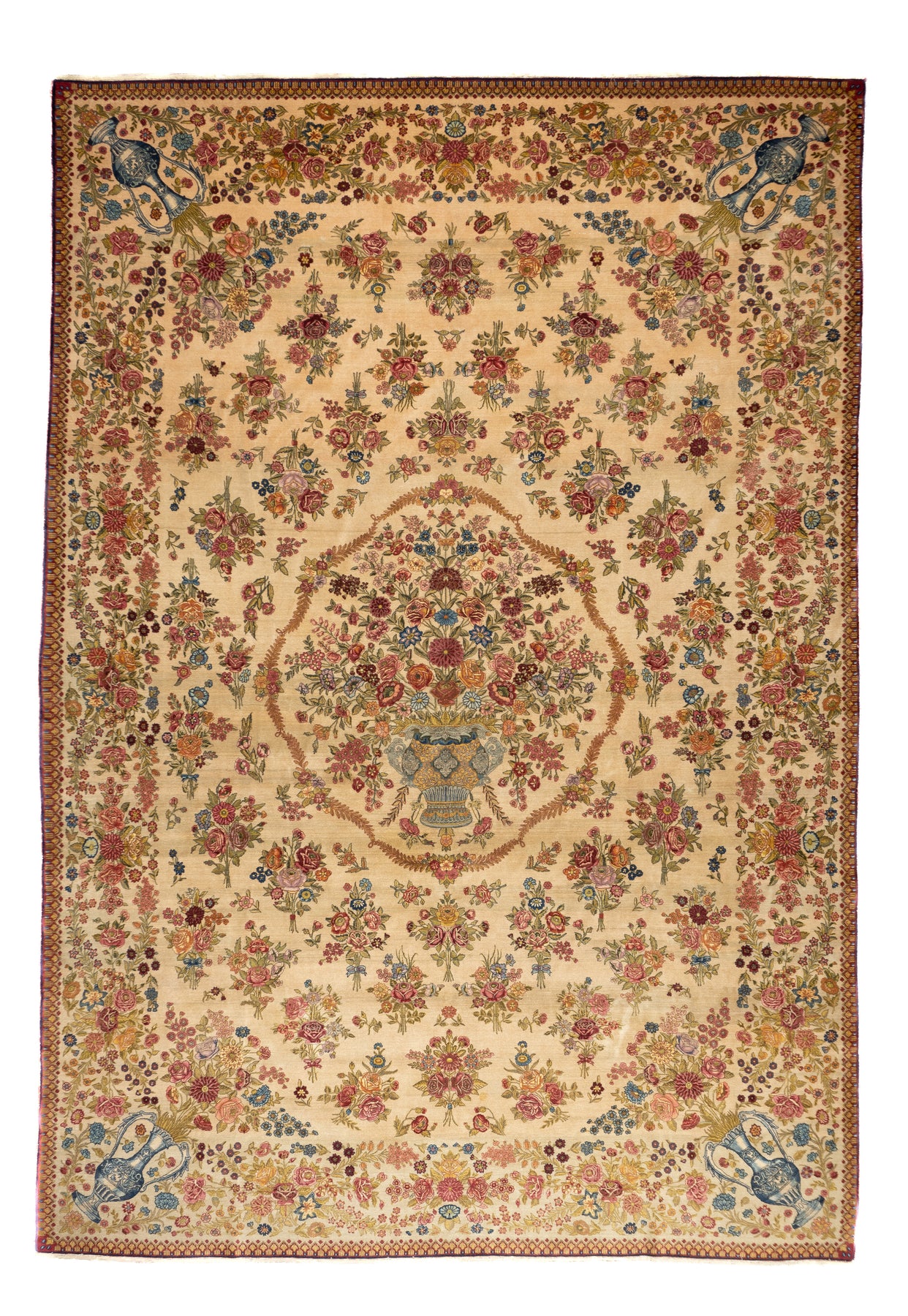 The picturesque, old Persian capital, which since the early 20th century has woven fine or extremely fine scatters to large carpets, often in complex medallion or allover layouts, with crisp colours, and generally ivory fields and red borders. Weaving began with Ahmad in the 1920’s. Serafian is one of the better known recent weavers. Isfahans are often signed. Short, velvety pile. A Persian’s Persian rug.