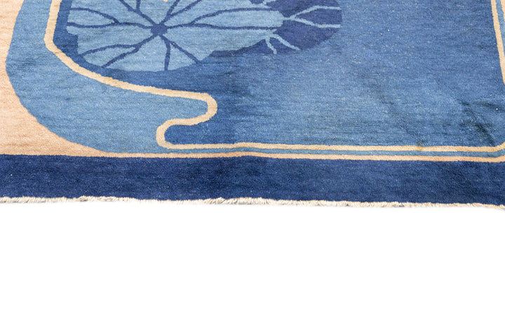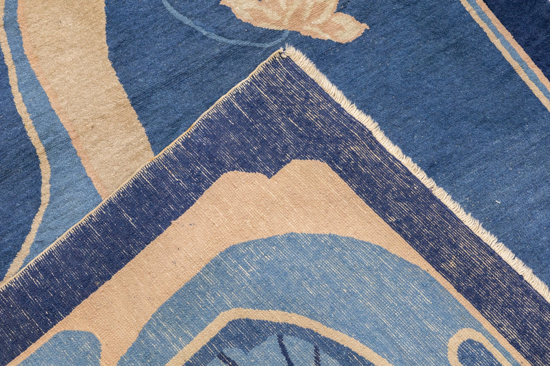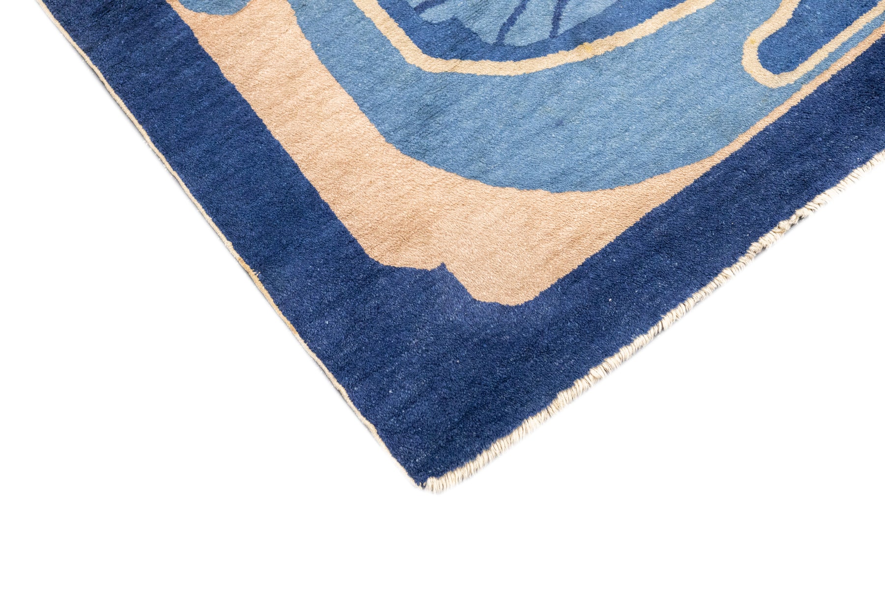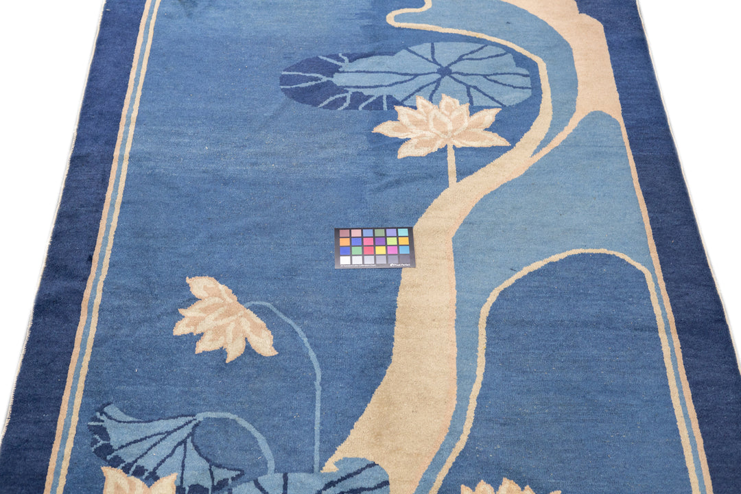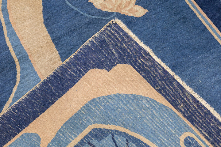 The Chinese carpets from the 19th century onward, in traditional patterns, often blue-and-white, in room sizes, scatters, and runners. A few pictorials. Moderate to medium weaves, cotton foundations. Medallions primarily.