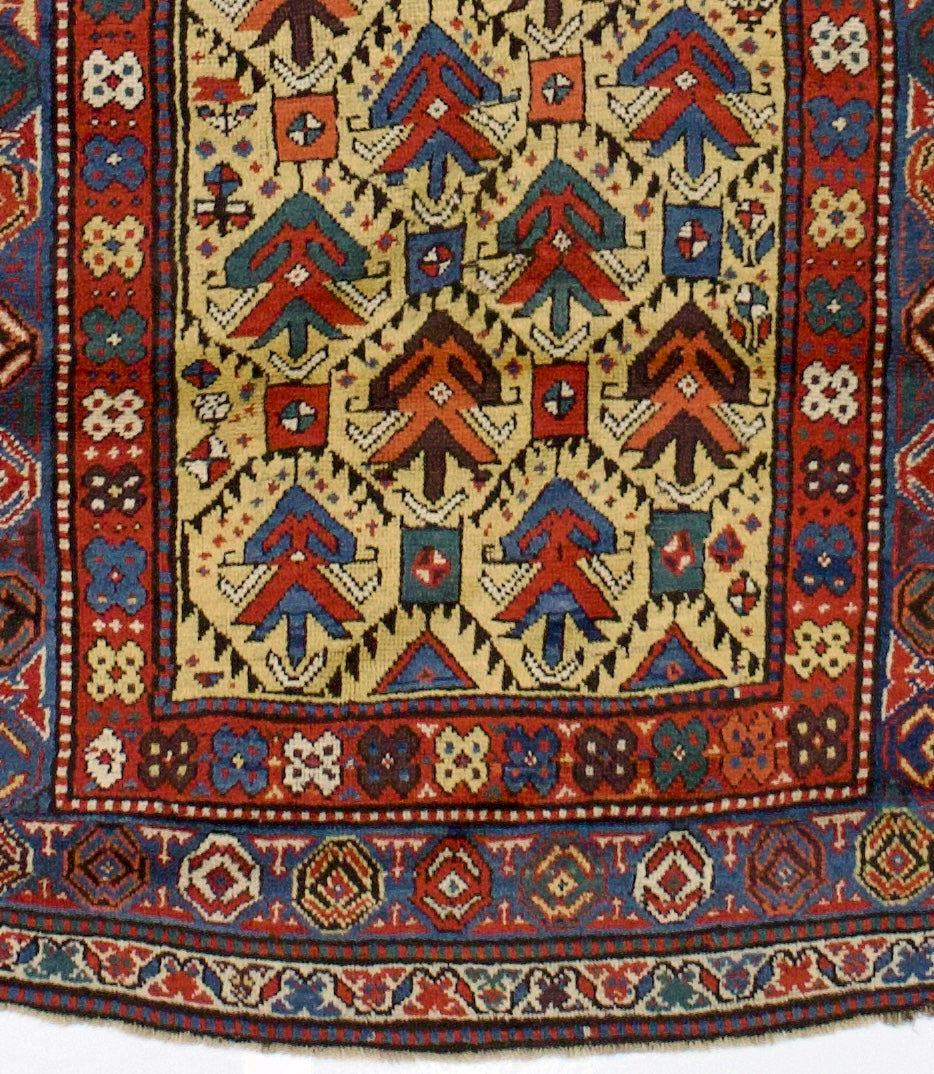 SW Caucasus/Armenia. Boldly patterned, strongly colored, totally geometric, all wool, coarse to moderate weave, medium to long pile, scatter format pieces, in medallion, allover and prayer (directional) layouts, with numerous identified source villages: Karachof, Bordshaly, Sewan, Shulaver and Lori Pambak.  Natural dyes, decorative to highly collectible. Often dated. Moderate to very expensive.