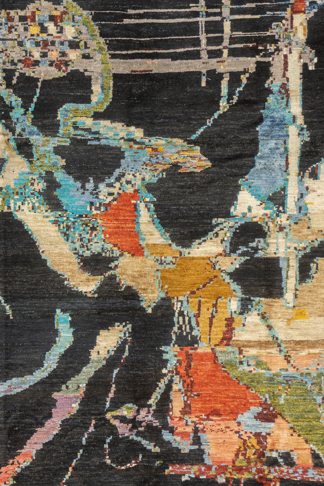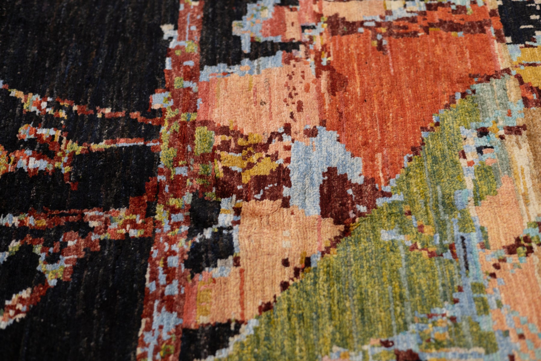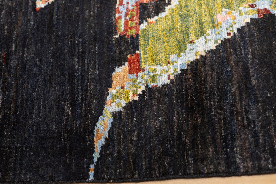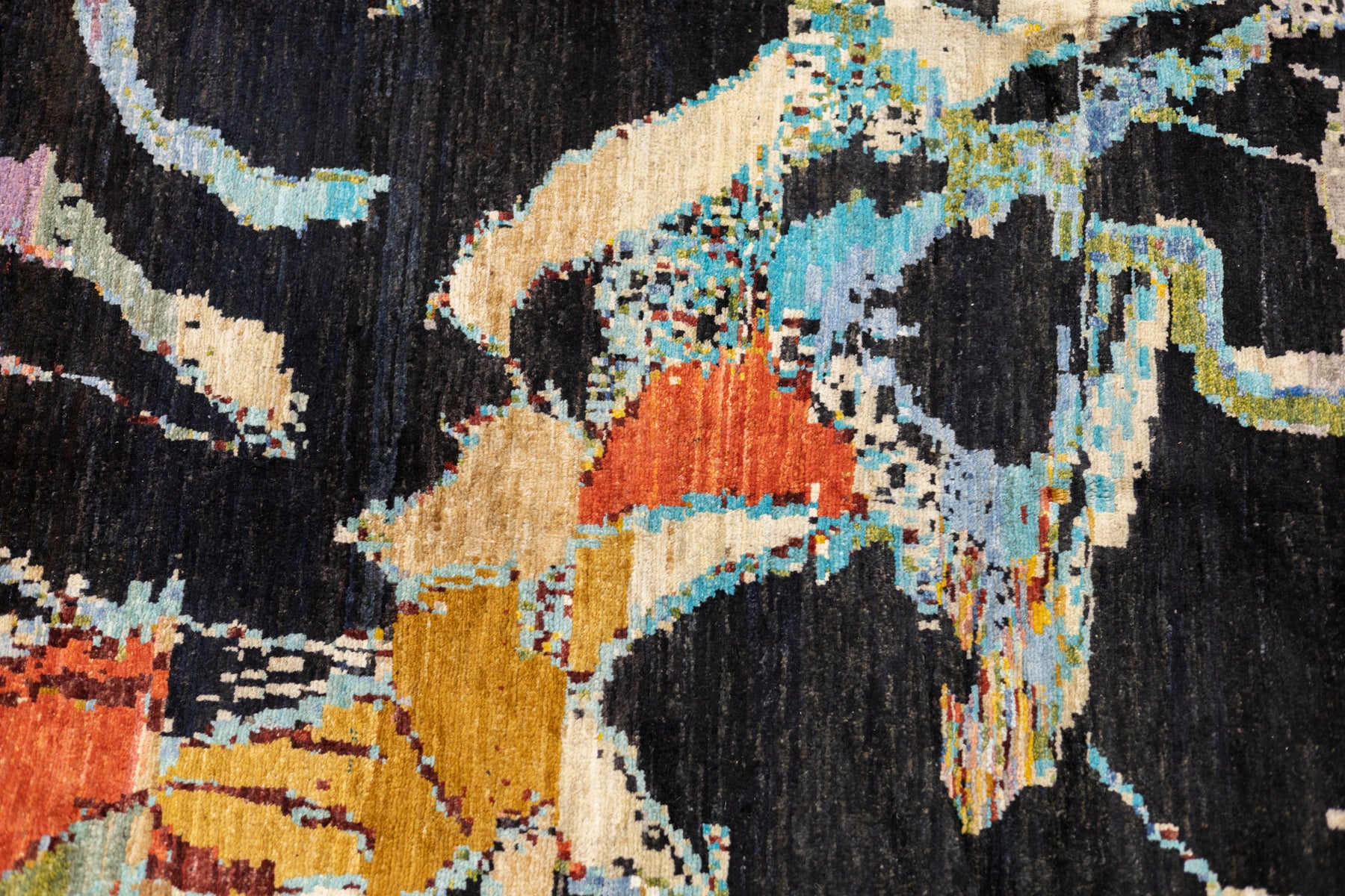 Recent trends including borderless, abstract, painterly, geometric, non-objective, non-traditional, restricted palette and textural variation (e.g., high and low pile). The contempo carpet generally eschews the traditional layouts, although fragments of classic designs may be used in a collage or montage manner. Often custom. Prices range from moderate to relatively expensive, depending on material, fineness and vendor.