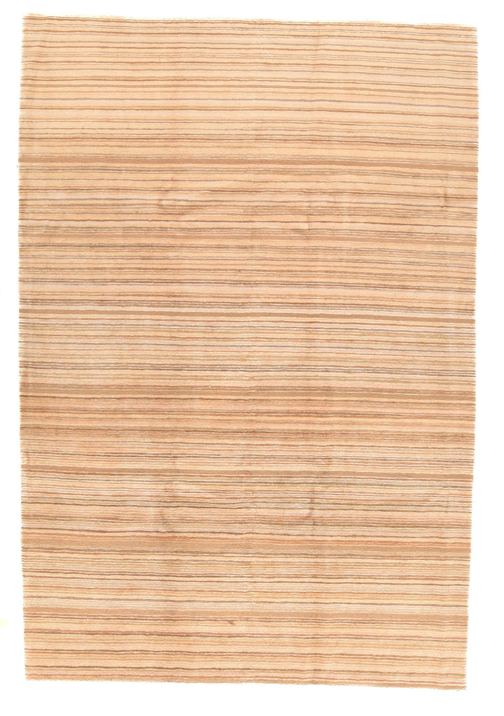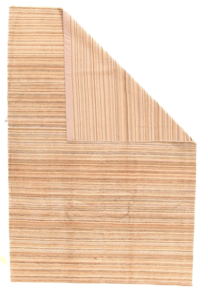 The small carpet/large scatter shows a minimalist borderless composition of horizontal lines in browns, rusts, tans and beiges, bending, diminishing or stretching at the weavers whims. Adjustable dimensions. Moderate tribal weave. Recent. As new condition.