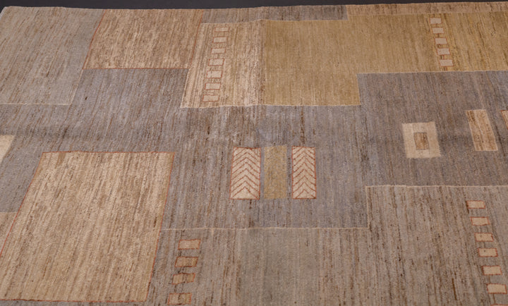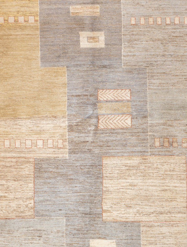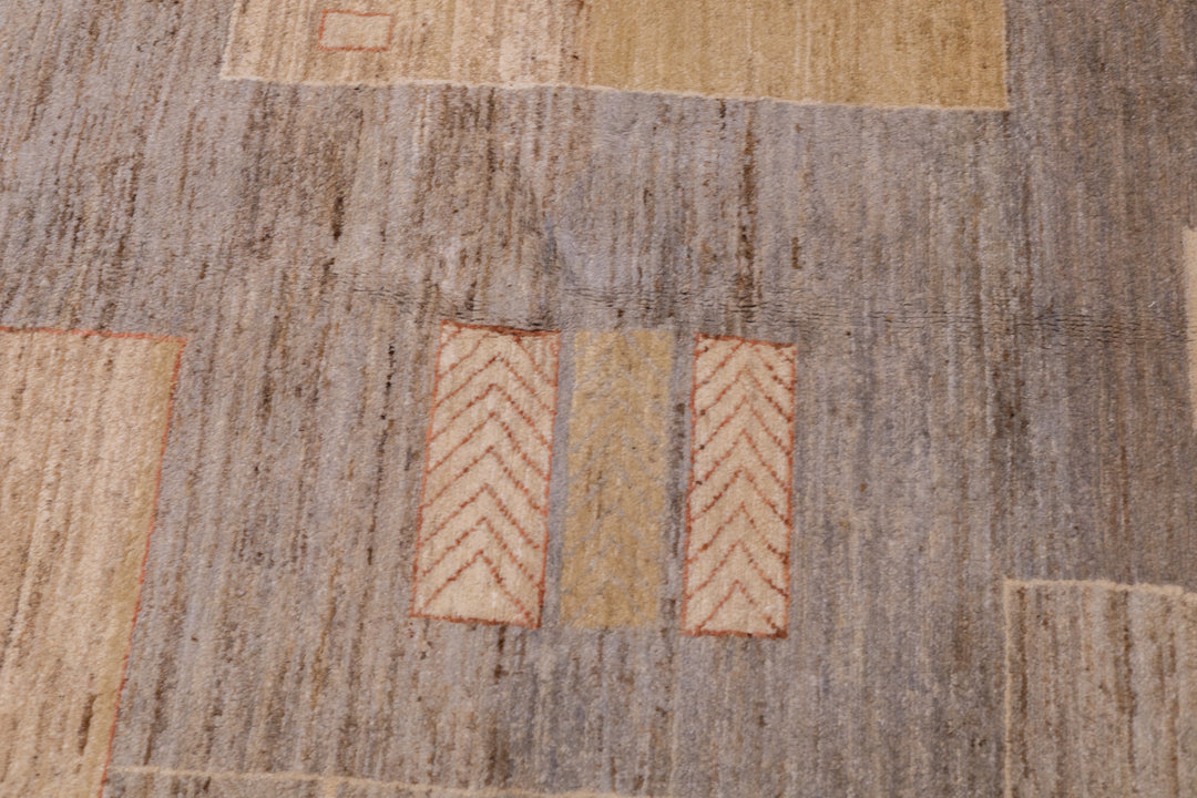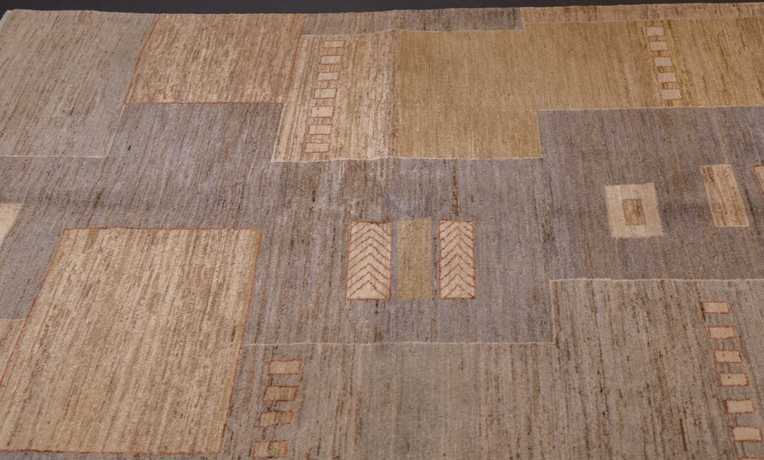 Wool pile rugs, usually scatter formats, woven by the Qashghai tribes of SW Persia (Fars Province), in moderate weave, uncluttered geometries and unshaded colours. From about 1900 onwards. Now copied by other weavers while retaining informal tribal character.