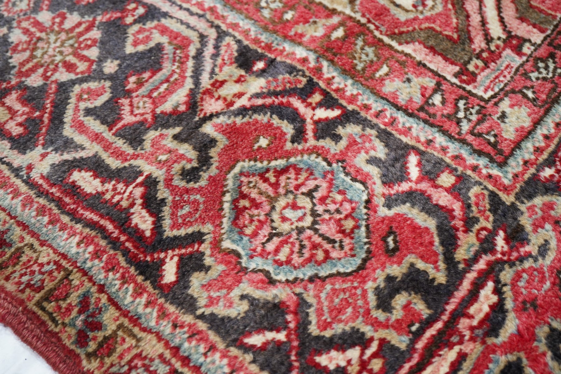 The numerous rugs of the famous NW Persian weaving district, from small scatters to giant carpets and a few runners, in semi-geometric medallion, centralized and strictly allover patterns, on cotton foundations, with crisp natural dye palettes including a warm madder red. Coarse to moderate weave. Works with any décor, always popular. Moderate to medium price.