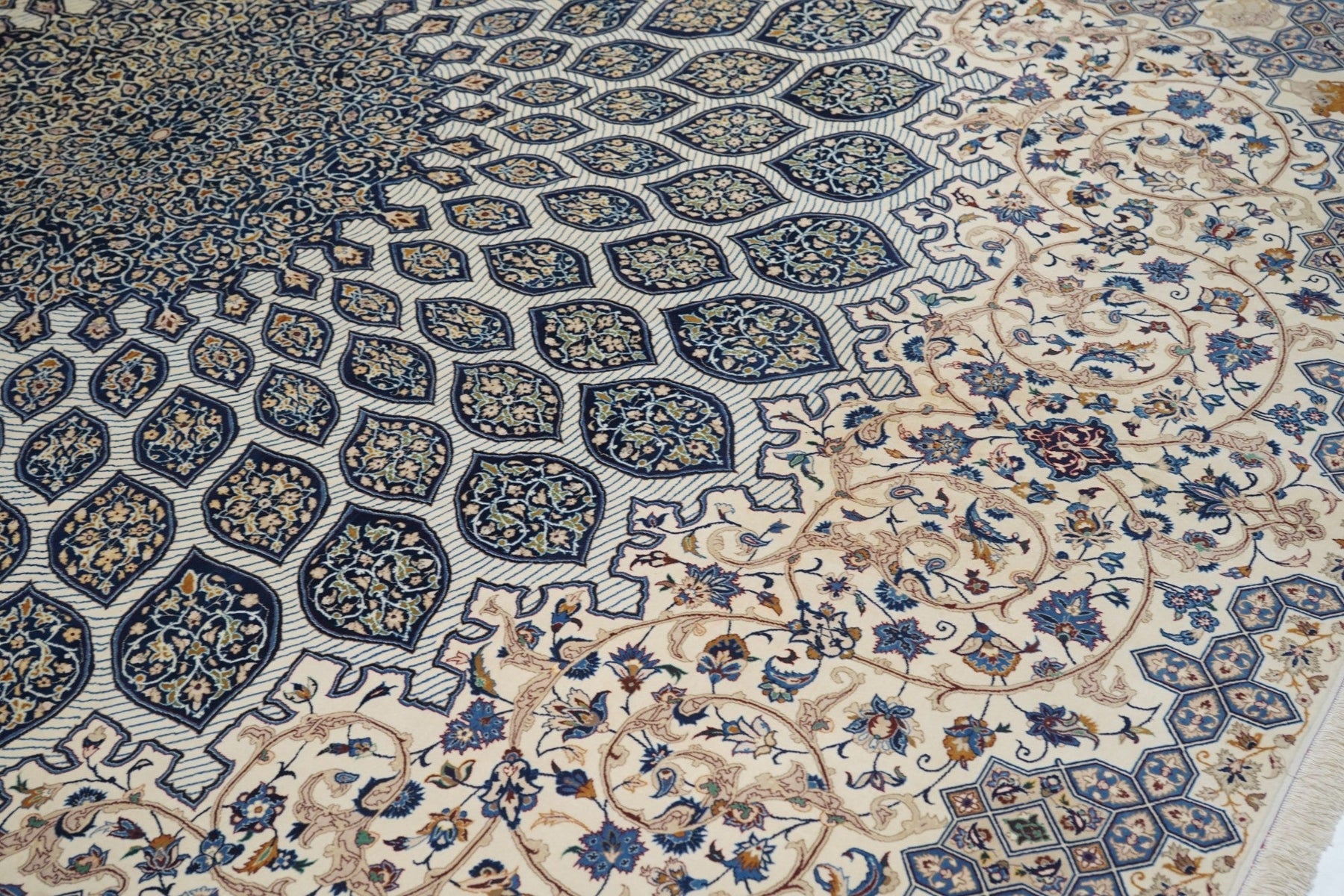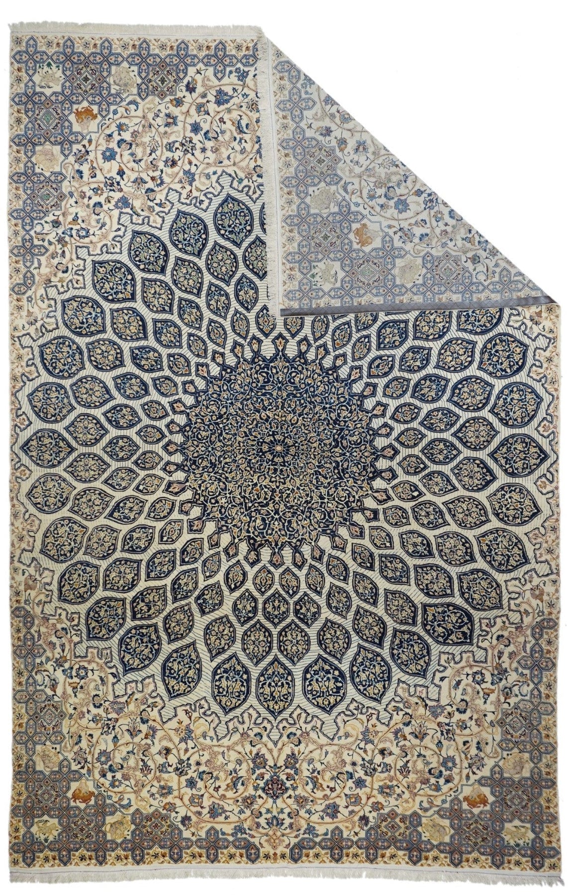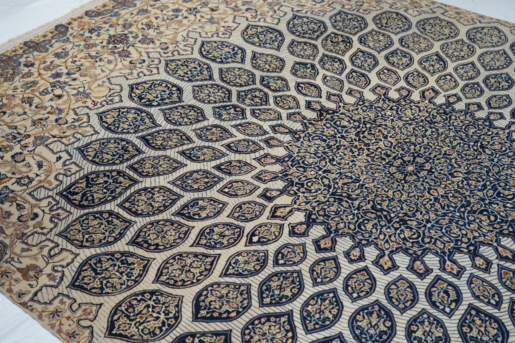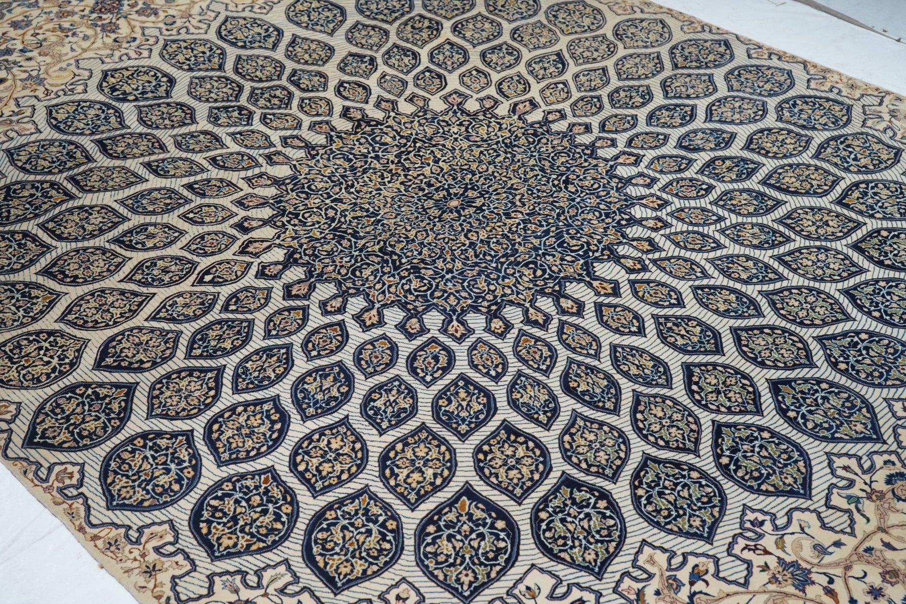 Extremely Fine Persian Isfahan Wool and Silk Rug 7'4'' x 11'4''. Gombad design.