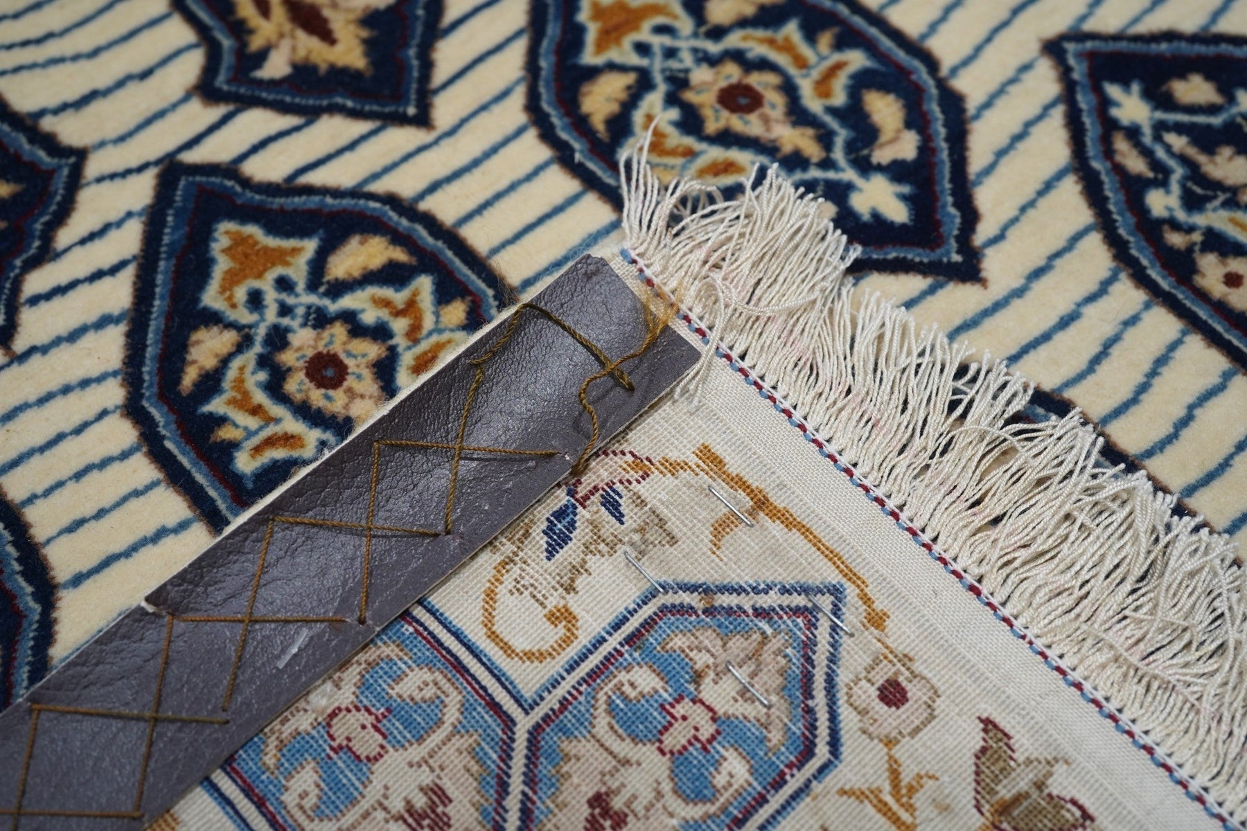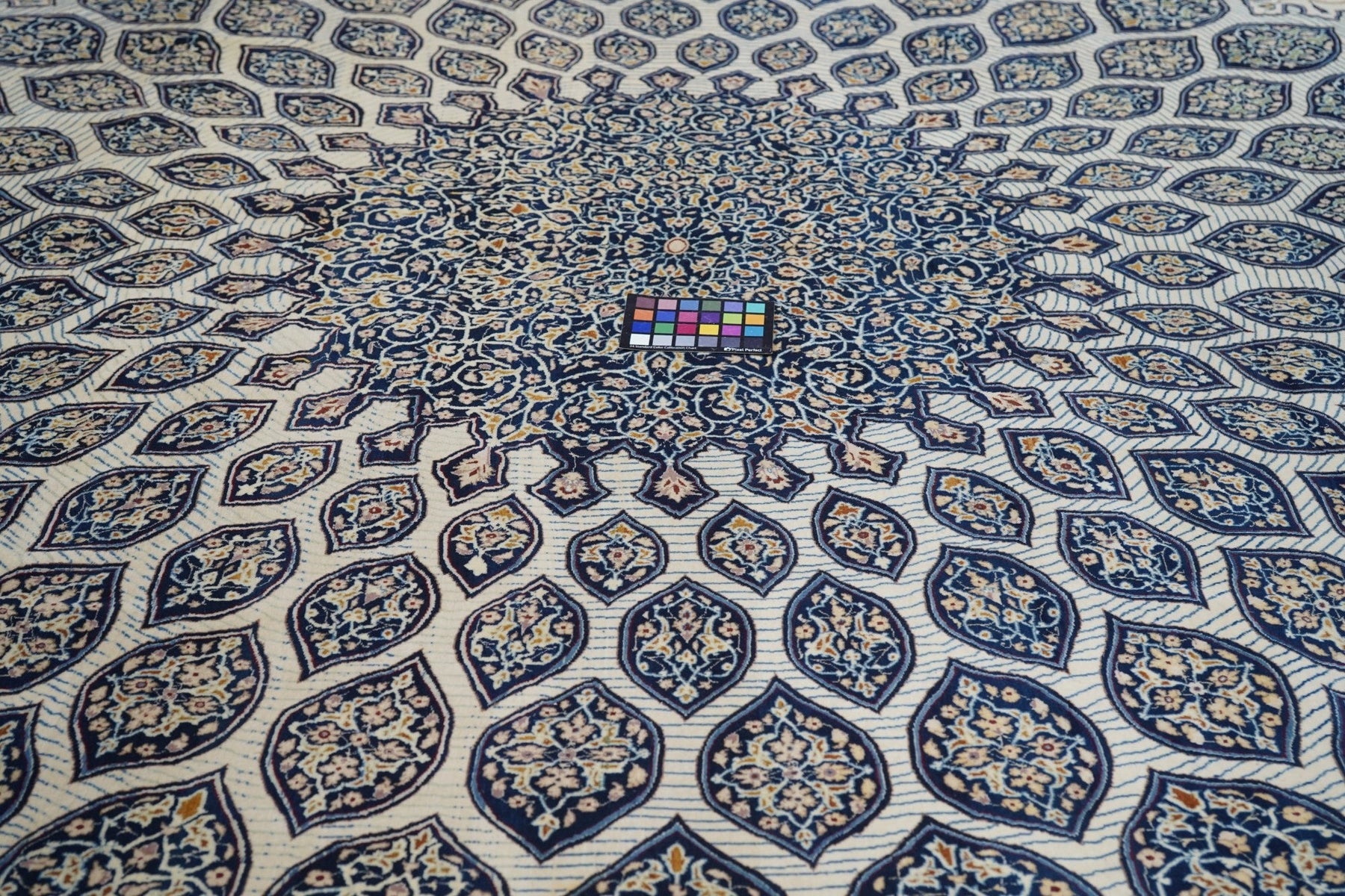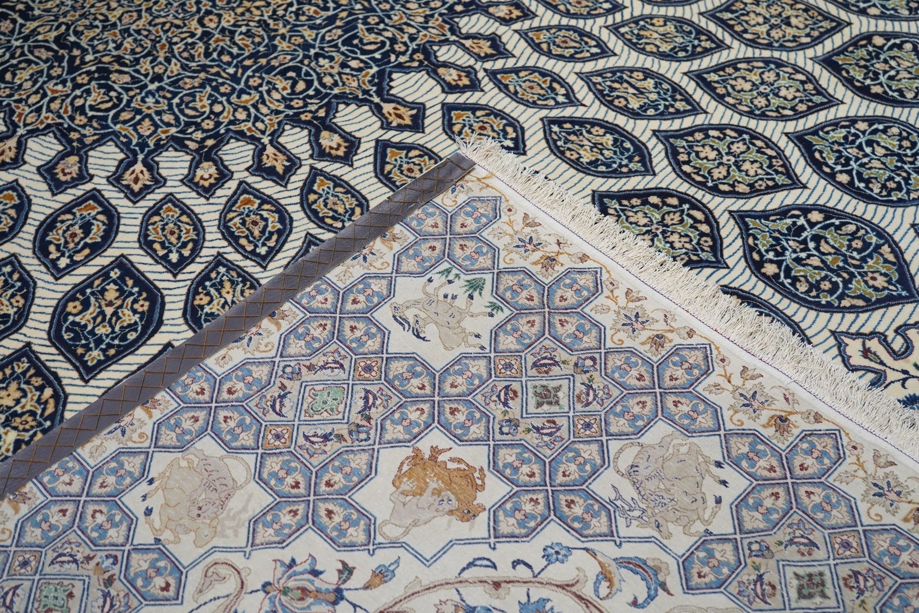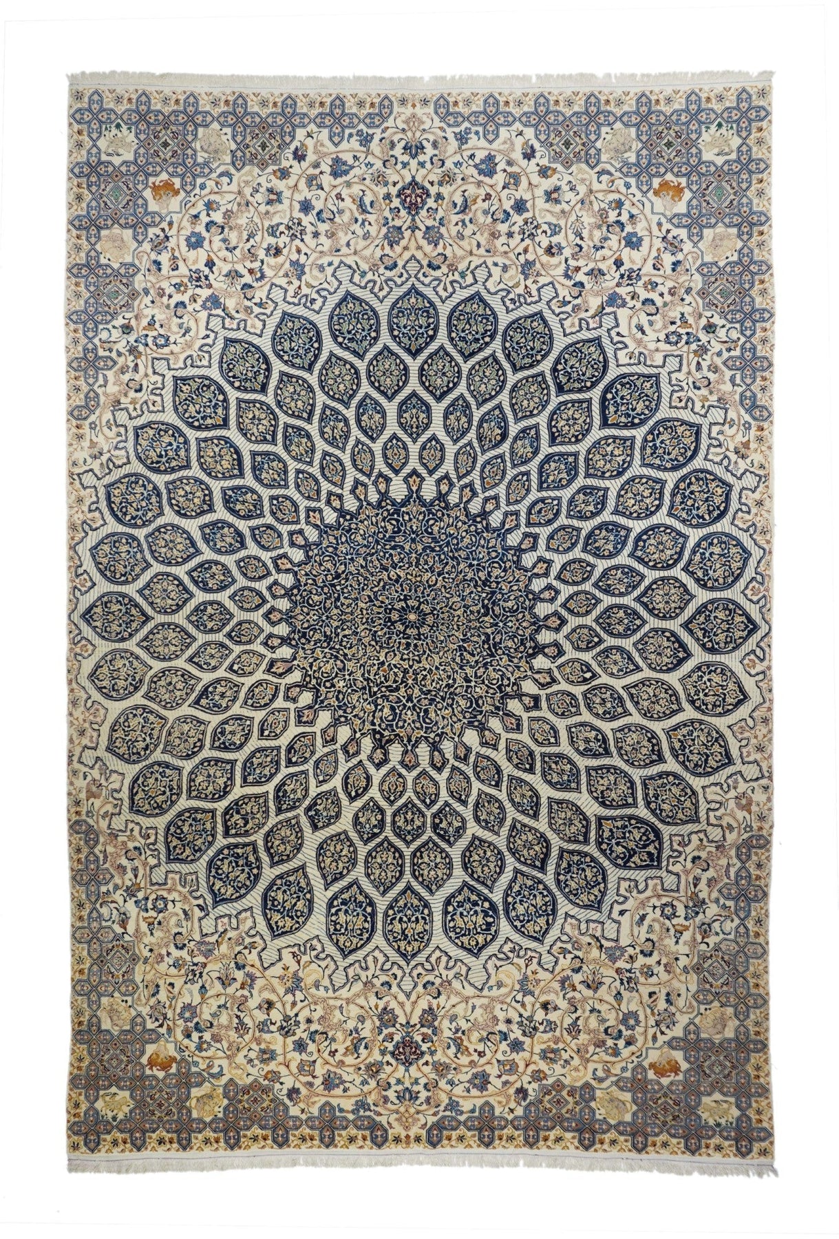 Extremely Fine Persian Isfahan Wool and Silk Rug 7'4'' x 11'4''. Gombad design.