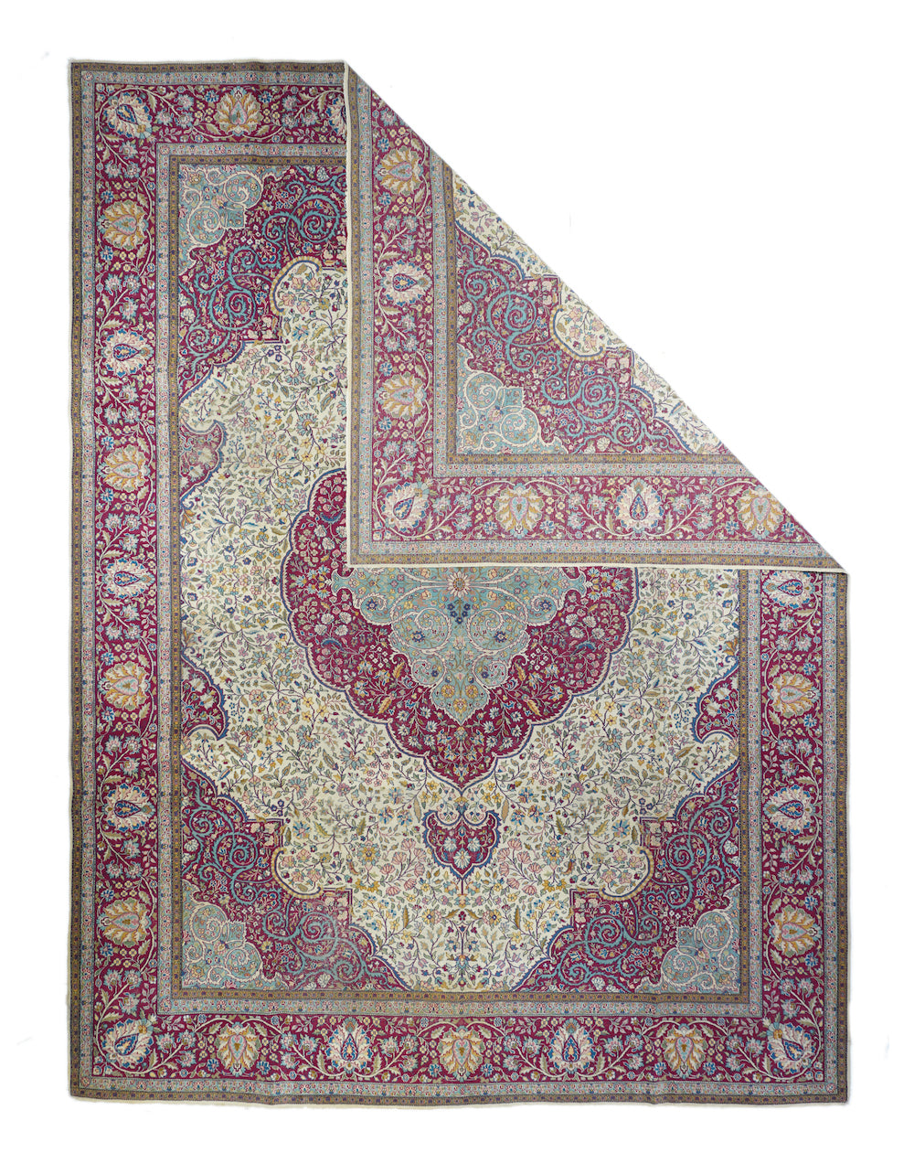 SE Persian city, famous since 17th century for an artistic variety of scatter rugs and large carpets in medallion and allover styles, changing with export tastes. In the 20th century, more popular in America. Antiques are brighter, but vintage carpets are softer. Complex, broad palettes in natural dyes. Fine to very fine weave. Medium price to expensive. Recent pieces are undervalued.