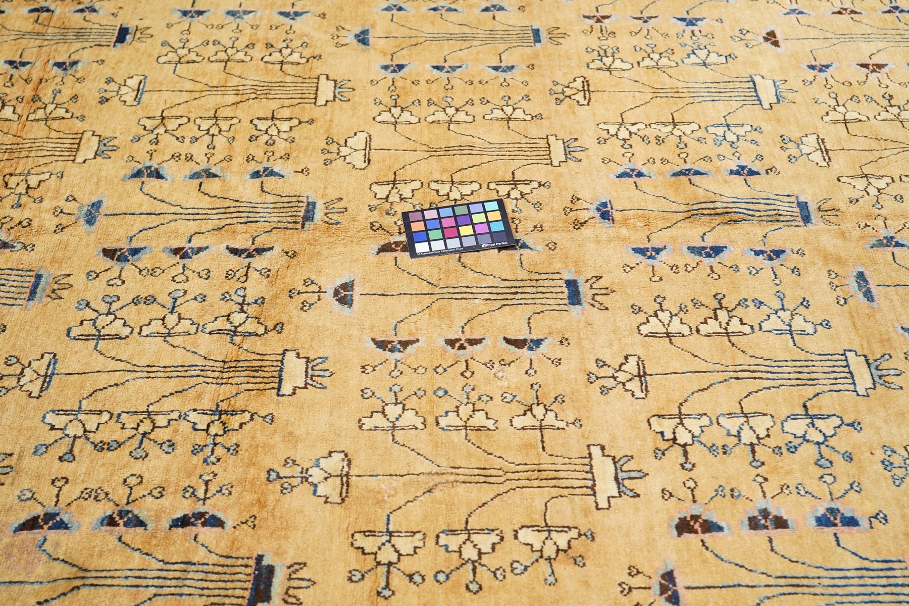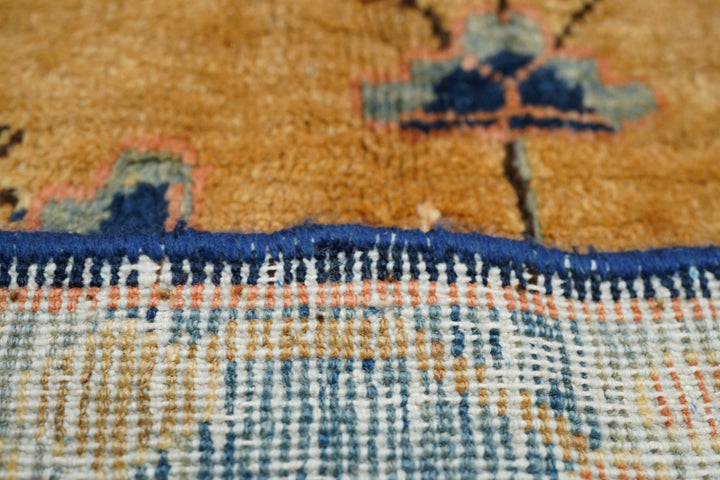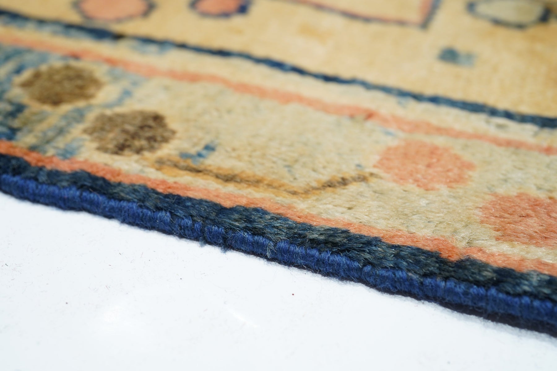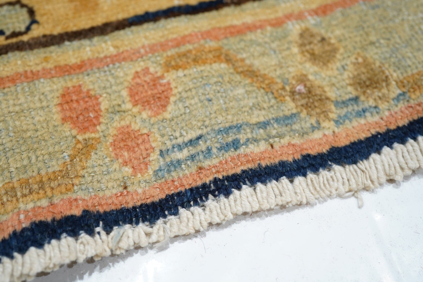 City in western China (Xinjiang Province), active since the 18th century. Moderate weave on cotton. Long rugs (k’ang formats) and more recently room sizes, in semi-geometric patterns featuring pomegranates, vases, medallions, palmettes. Somewhat subdued palettes. A few still-life pictorials. Moderate to medium prices.