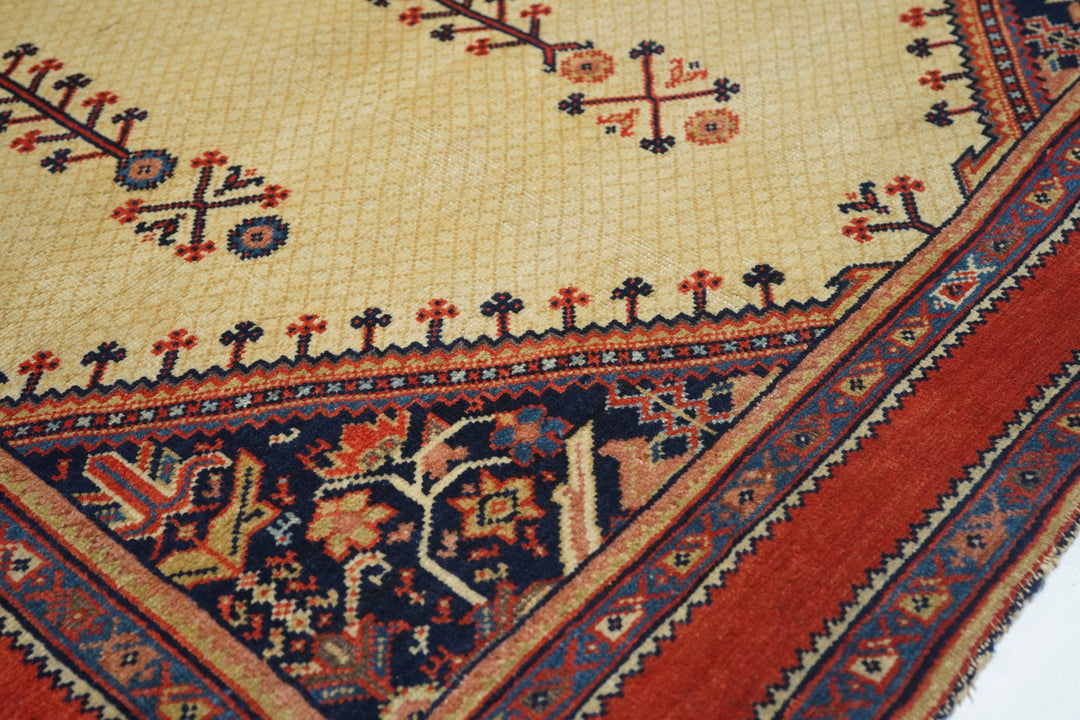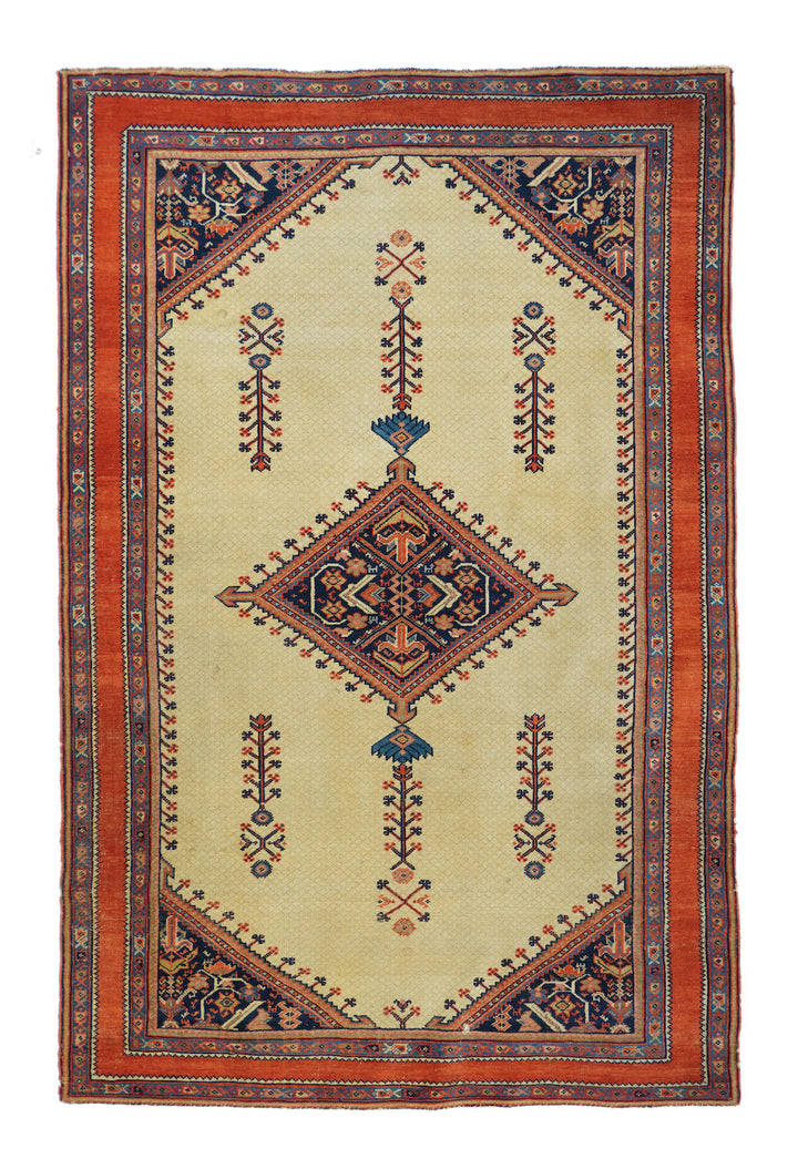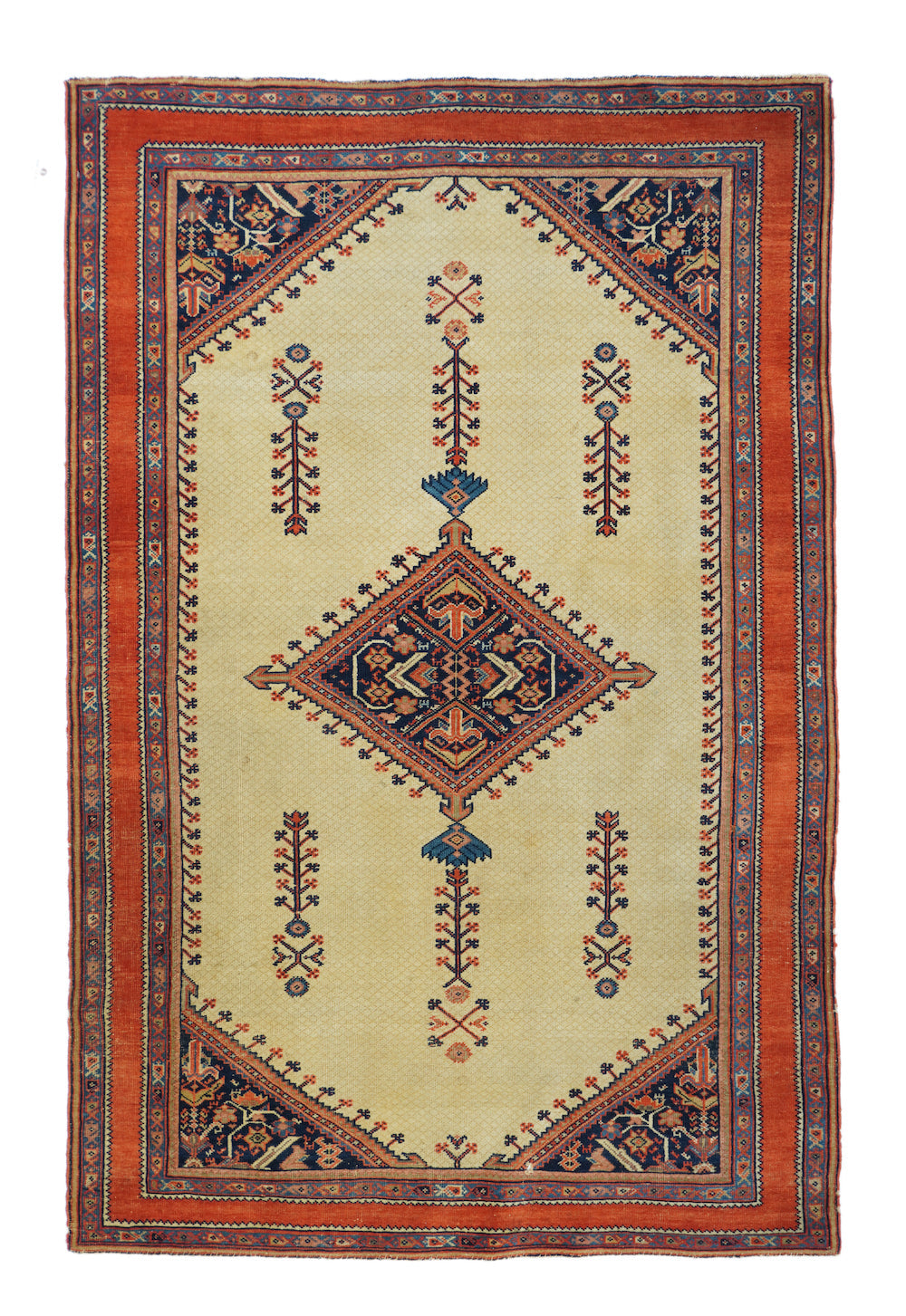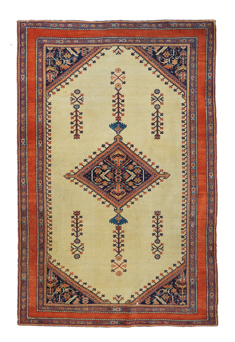 A large town in the Greater Hamadan Weaving Area, specializing in single-wefted scatters, room sizes, gallery carpets, long rugs and occasional runners. Numerous satellite villages. Wide range of characteristic medallion, centralized and allover patterns, some curvilinear. Moderate to medium weave. Moderate to medium prices.