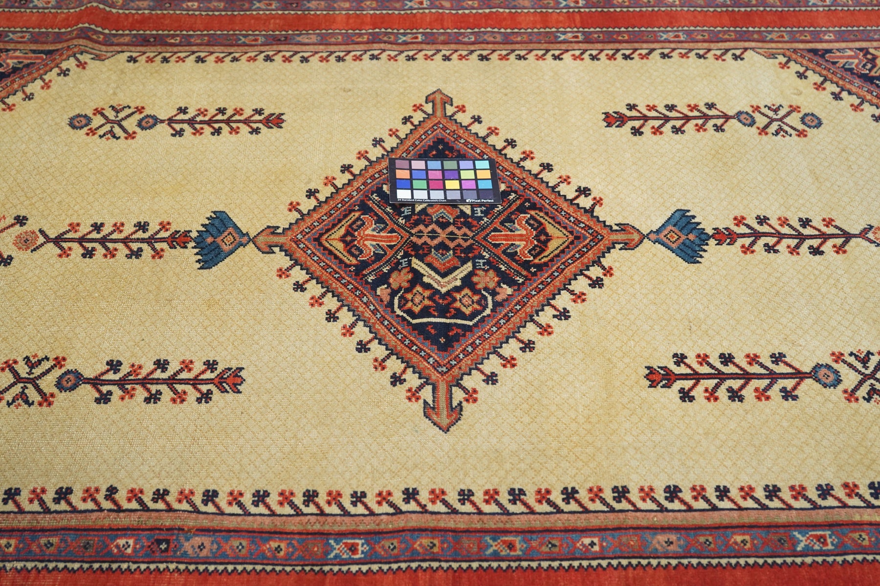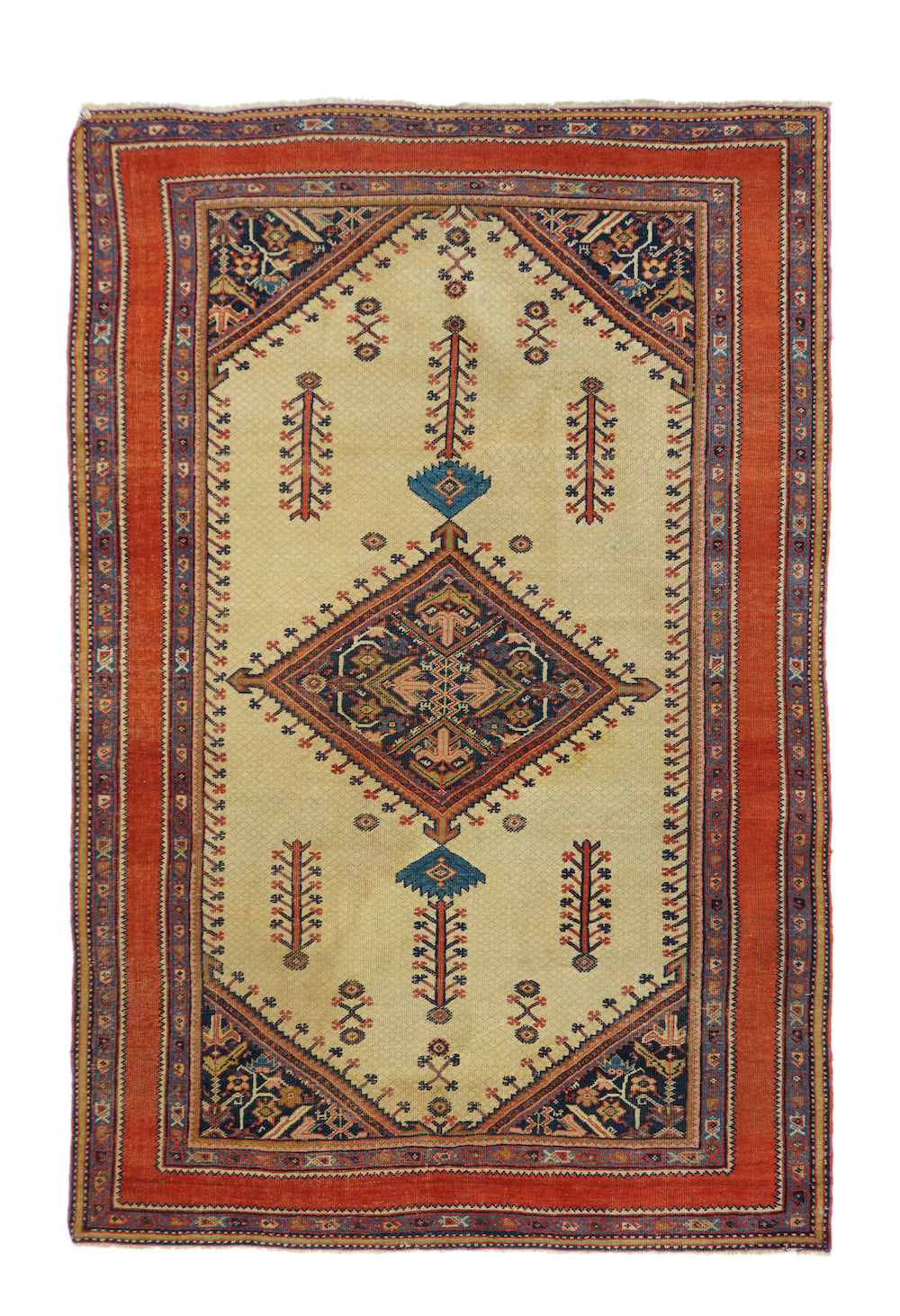 A large town in the Greater Hamadan Weaving Area, specializing in single-wefted scatters, room sizes, gallery carpets, long rugs and occasional runners. Numerous satellite villages. Wide range of characteristic medallion, centralized and allover patterns, some curvilinear. Moderate to medium weave. Moderate to medium prices.