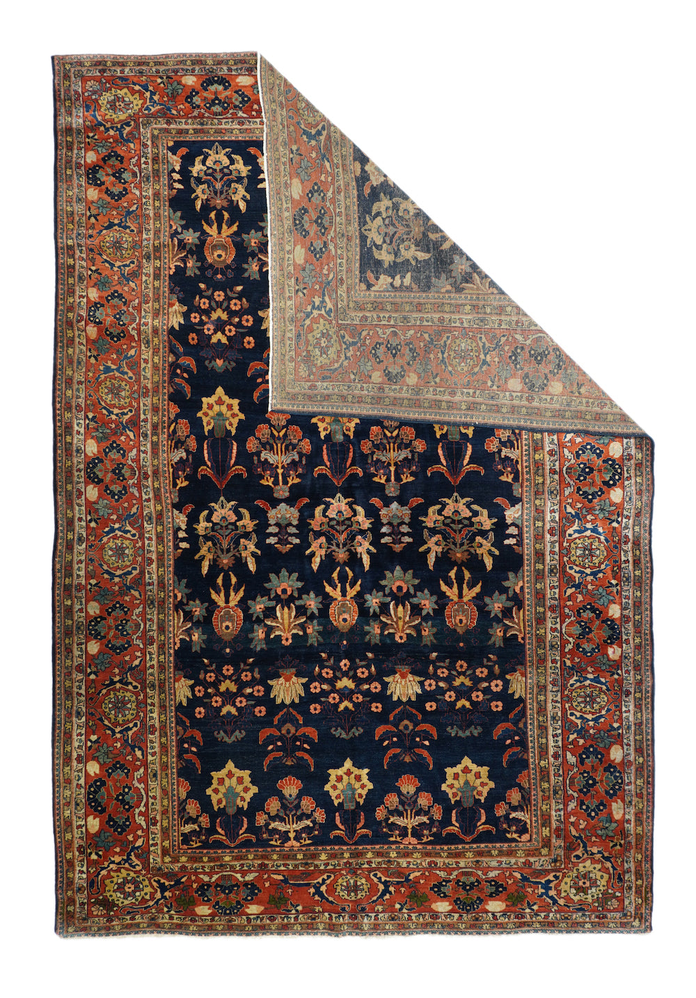 Mohajeran is a village in the larger Sarouk district, reputed, especially in the pre-WWII period, to have woven the best quality Sarouks, often on blue grounds. Term has generally been extended to any vintage/antique Sarouk on blue.Well-woven to very fine. Expensive. Scatters to room sizes, few, if any, mansion – size carpets. Relatively small production.