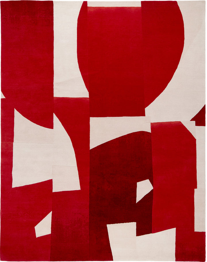 Warm light neutrals create the perfect background for red, simple-yet-elegant shapes with their unexpected shifts and angles.