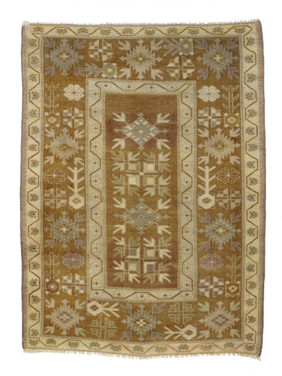 Town in Western Anatolia, weaving mostly room sizes, in coarse to moderate weave, high pile. Antiques are all wool, changing to cotton foundations in the 1920’s. Geometric or Persian-derived patterns, soft or strong palettes; allover or medallion. Informal execution. Carpets change with interior design fashions. Mostly carpets, some very large, also a few runners and scatters. No prayer rugs. Moderate to expensive.