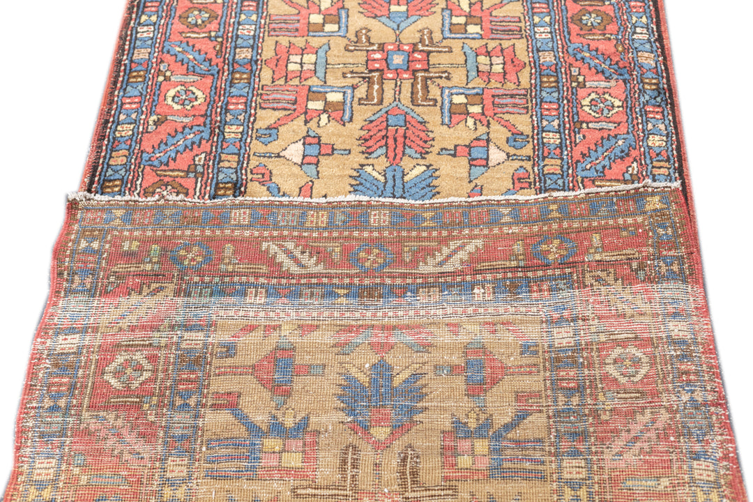 Generally in squarish sizes, allover patterns and coarse to moderate weaves, wool or mixed constructions; woven before 1900. Term is often extended to early medallion, later 19th century. Earlier pieces often have slightly more muted palettes employing rust, straw and lighter blues. Generally in carpet sizes, some scatters.