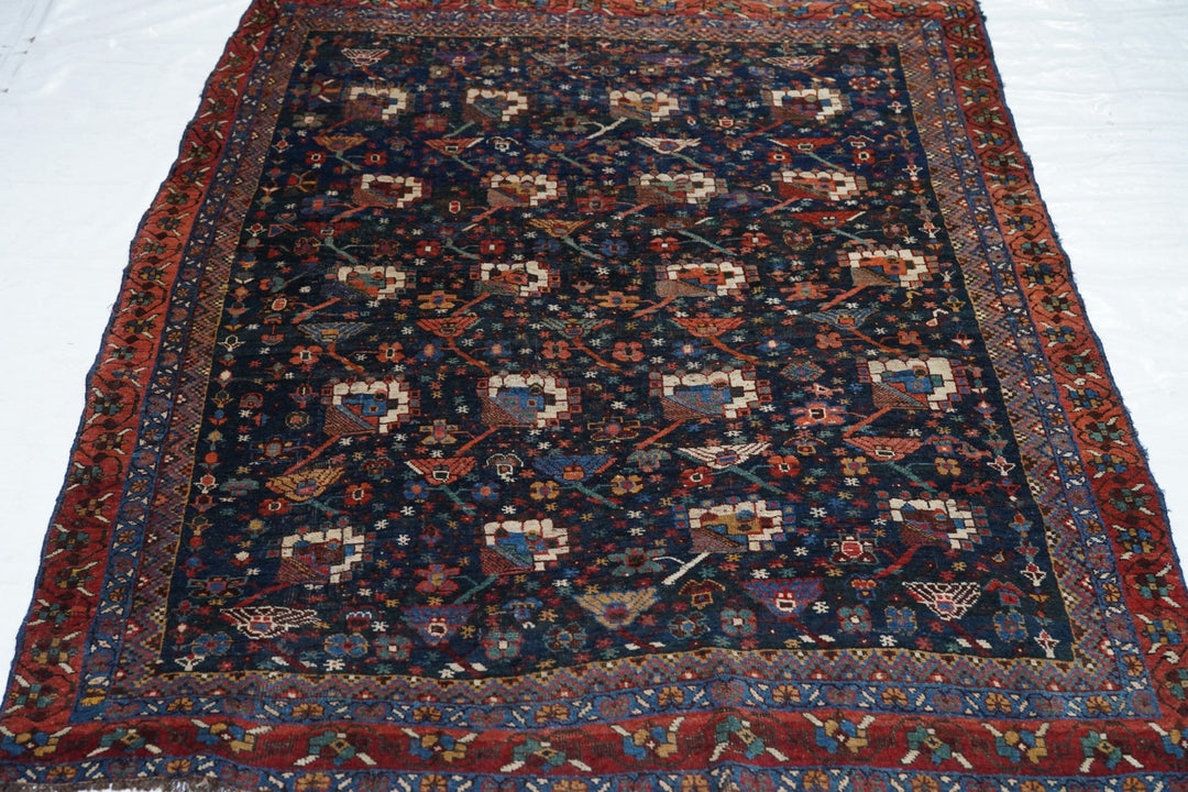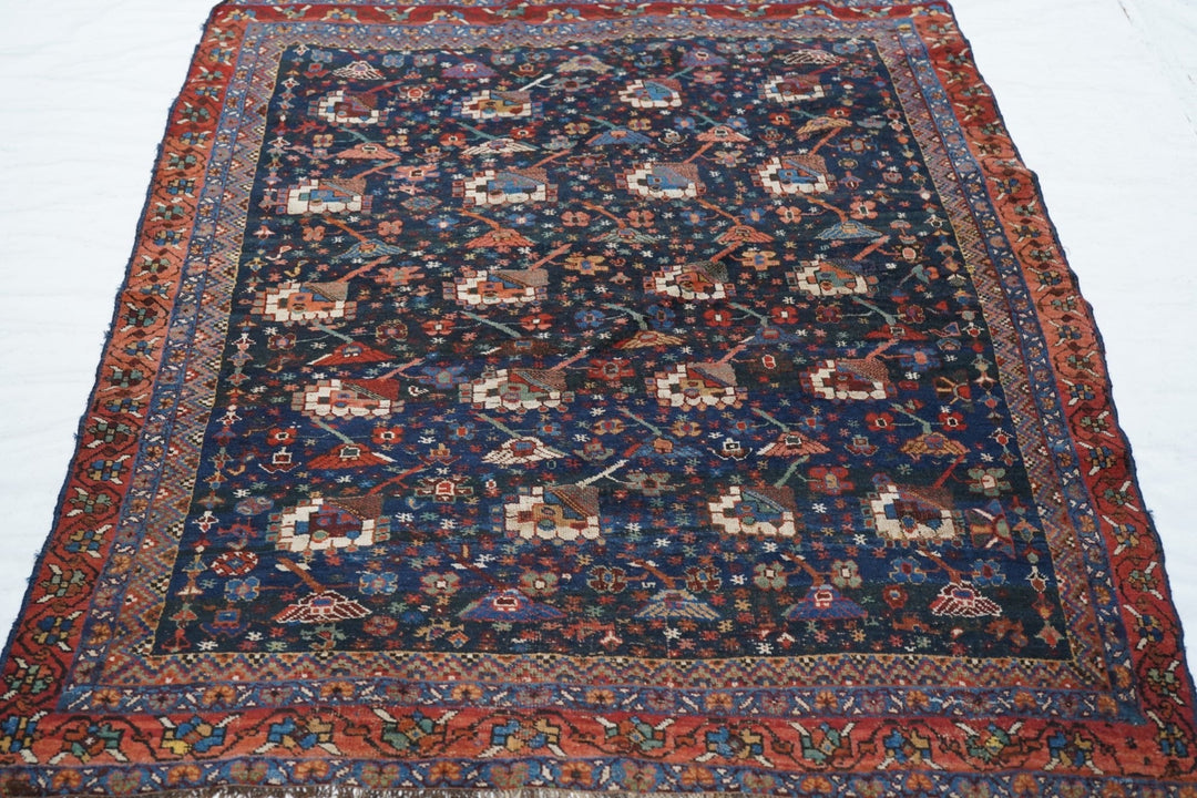 The town and surrounding Kurdish carpets of the eponym city, often in room or larger sizes. All wool before 1920, cotton warp afterward. Medallion and allover patterns. Heavy and compact. City weavers work from samplers (wagirehs). Village Bidjars are in scatter sizes, with more geometric patterns. Bidjar weaves range from moderate to very fine.