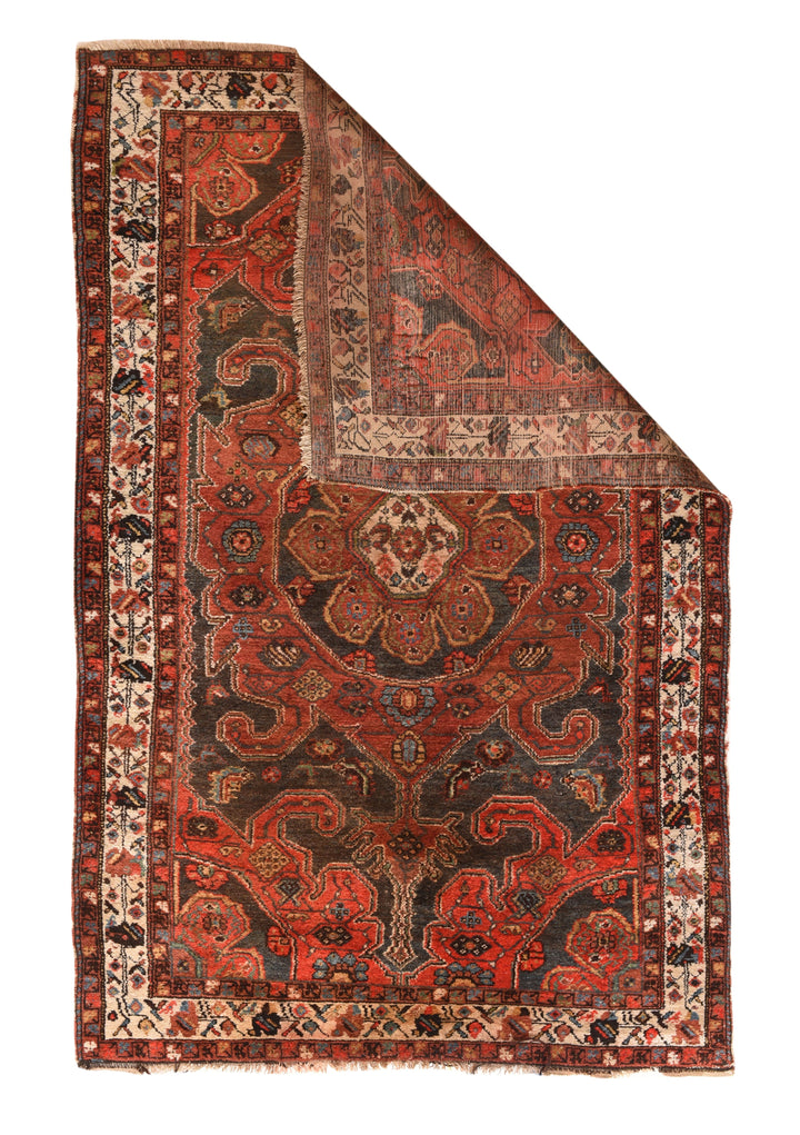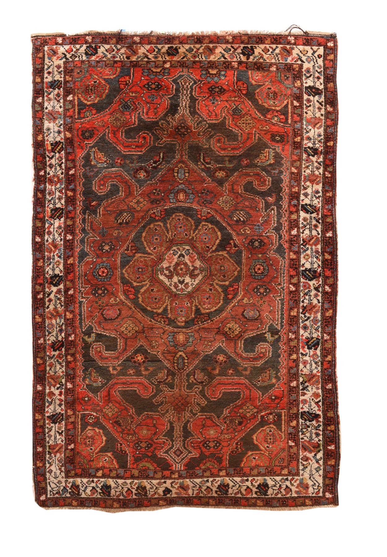 The village rugs from around the ancient west Persian city of Hamadan, in mat, scatter, runner, long rug, and room-size. Lilihan, Bibikabad, Malayer, Mazlagan and other towns display local characters. Turkish and Kurdish villagers, mostly cotton, some wool foundations. Single wefted, coarse to moderate weaves. Semi-geometric. Very prolific weaving area. Low to moderate prices.