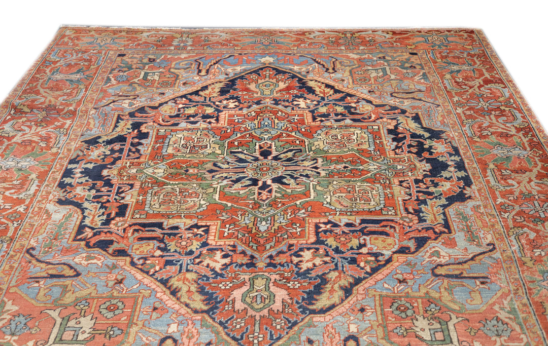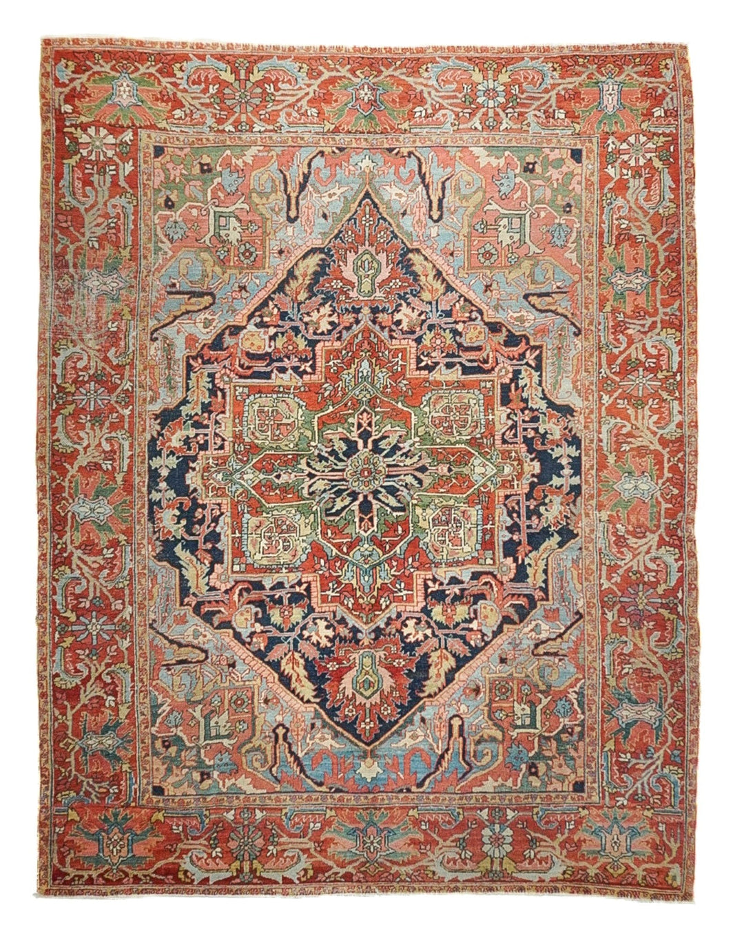 The numerous rugs of the famous NW Persian weaving district, from small scatters to giant carpets and a few runners, in semi-geometric medallion, centralized and strictly allover patterns, on cotton foundations, with crisp natural dye palettes including a warm madder red. Coarse to moderate weave. Works with any décor, always popular.