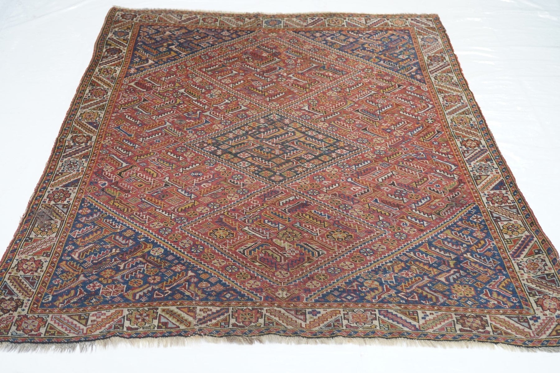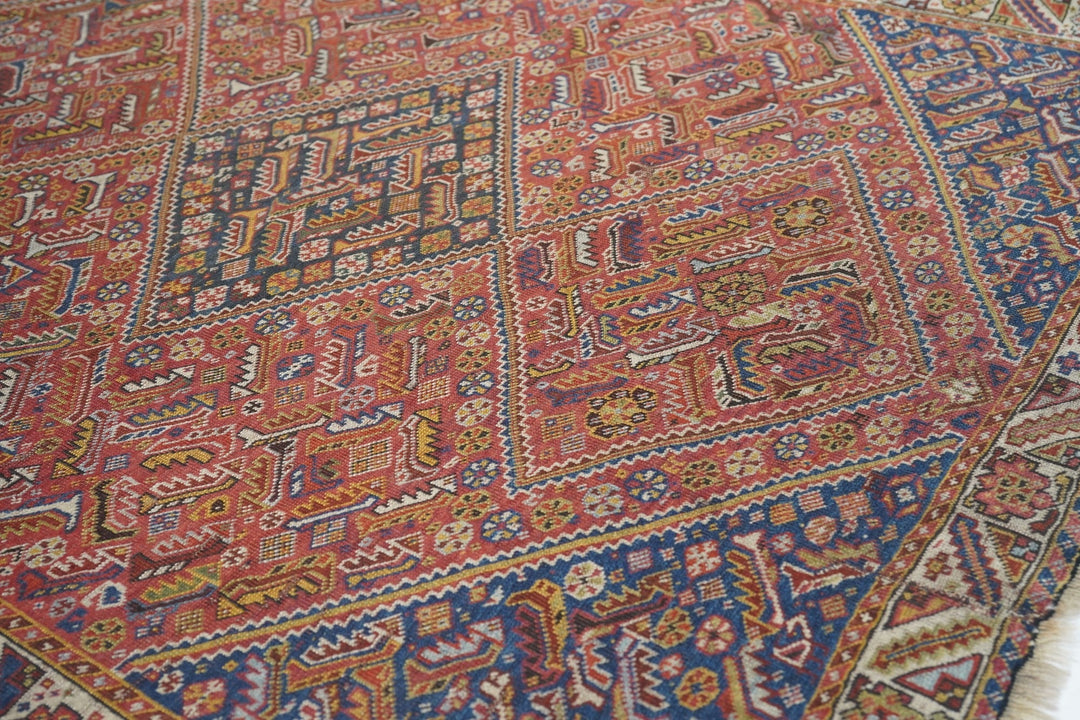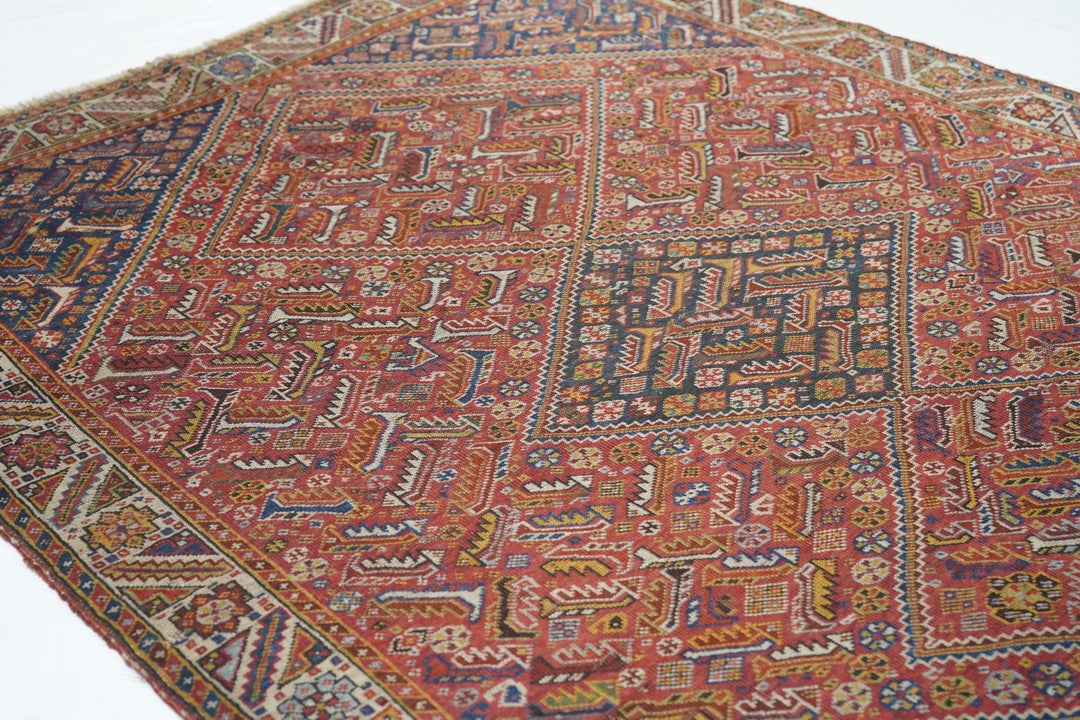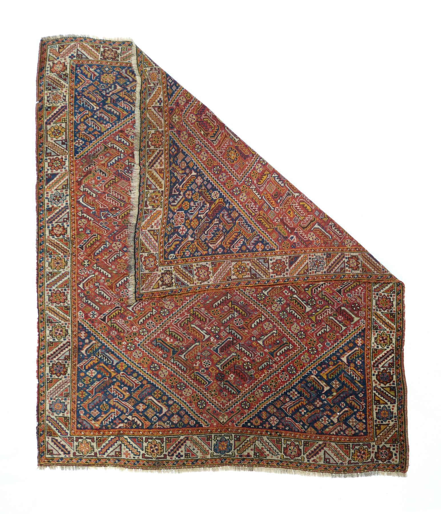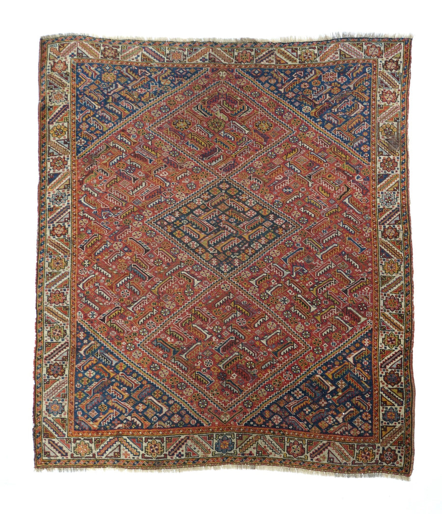 The best SW Persian, Fars Province nomadic rugs, mostly in scatter formats. Geometric Gabbehs, lion rugs, adapted Persian curvilinear styles. Some well-woven prayer rugs. All-wool constructions. Pictorial rugs. Weaving goes back to at least the mid-19th century. Excellent wool quality.