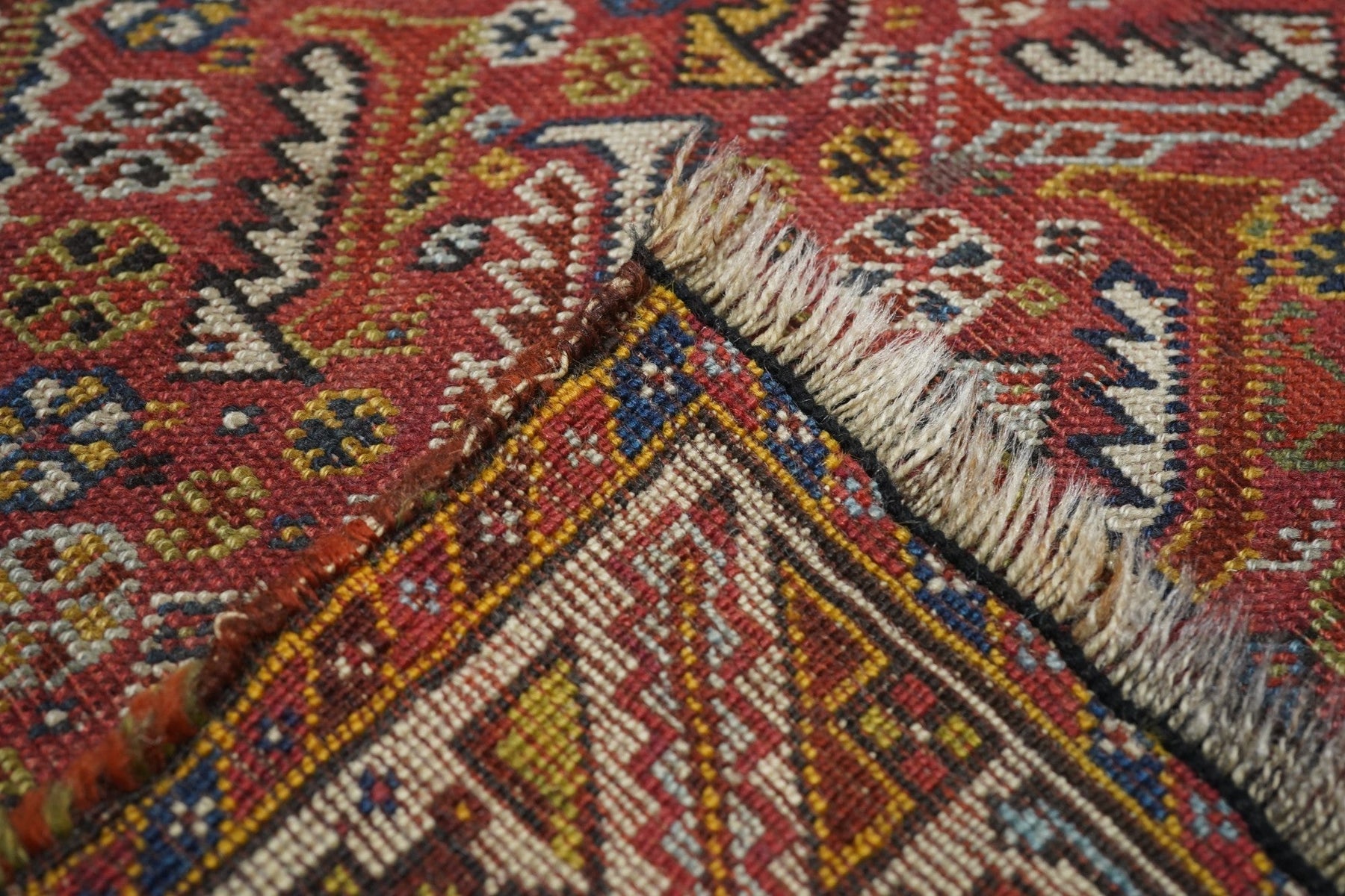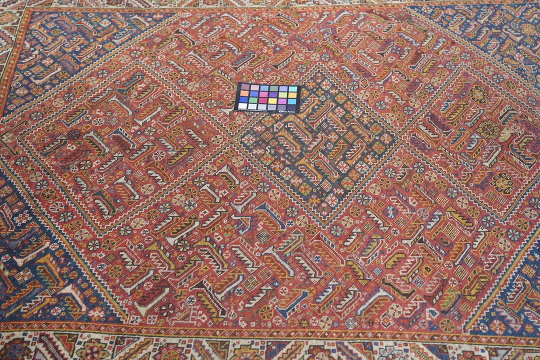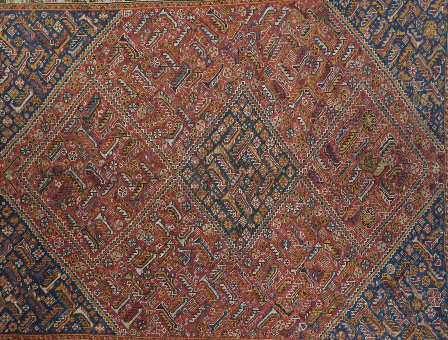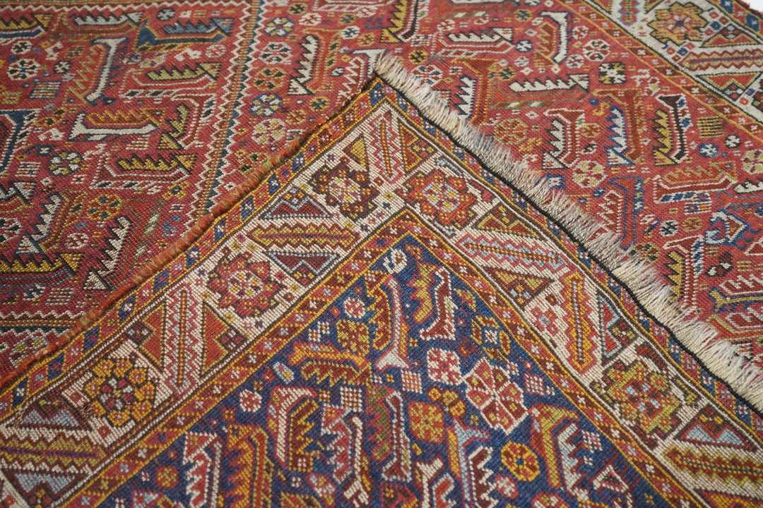 The best SW Persian, Fars Province nomadic rugs, mostly in scatter formats. Geometric Gabbehs, lion rugs, adapted Persian curvilinear styles. Some well-woven prayer rugs. All-wool constructions. Pictorial rugs. Weaving goes back to at least the mid-19th century. Excellent wool quality.