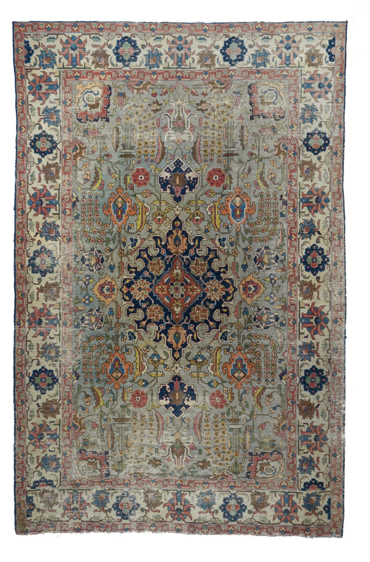 The enormous output of carpets and scatters in virtually every style: medallion, centralized, directional or allover, trein a variety of densities from moderate to extremely fine, in wool combined, with primarily curvilinear drawing, adaptedoften from classical or local styles. Prayer rugs, pictorials and mansion-sized pieces. See also Hajji Jalilli Tabriz. Brisk pile, neat drawing, balanced compositions. More popular in Europe and America. Prices from modest to impossible.