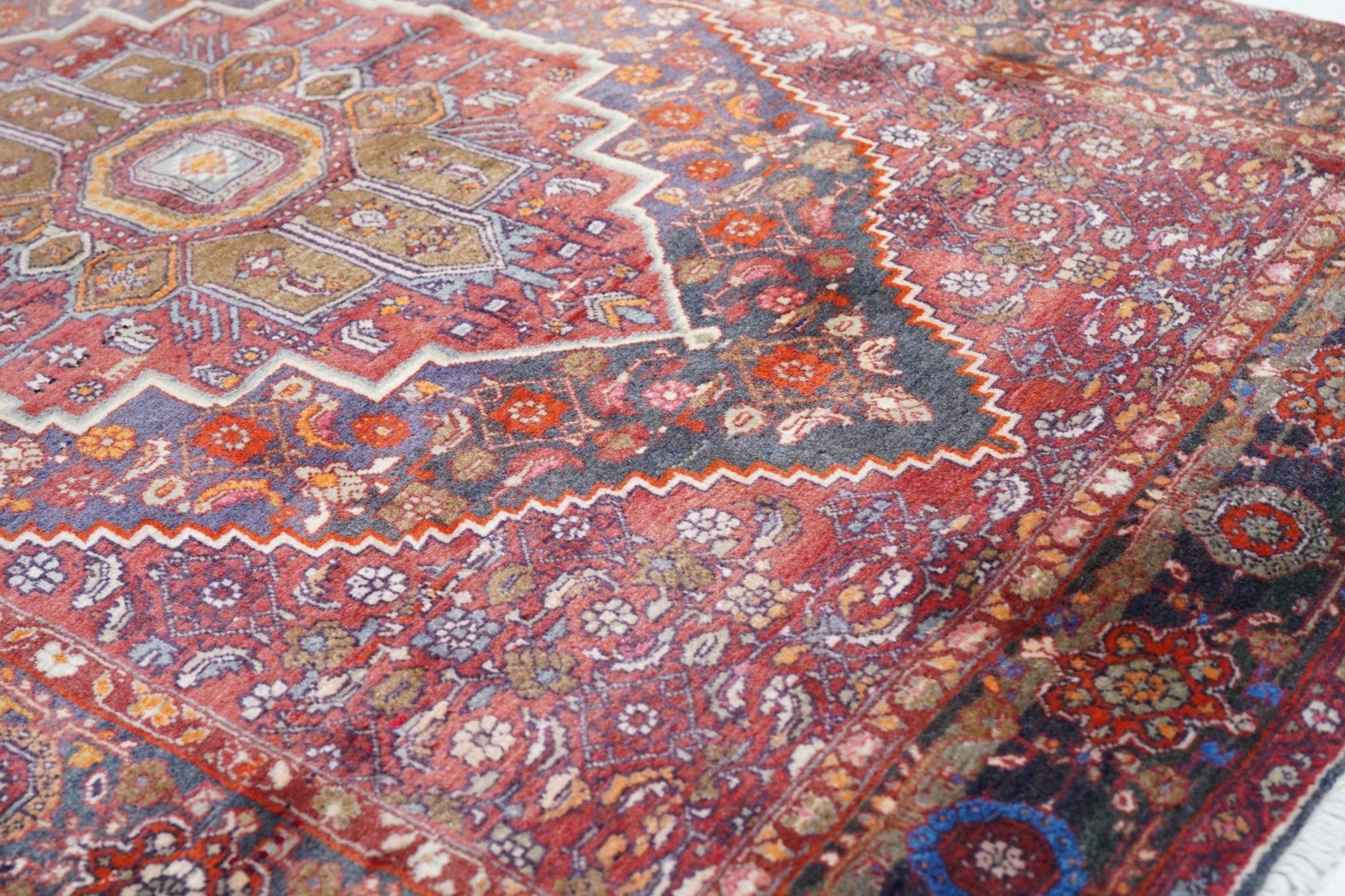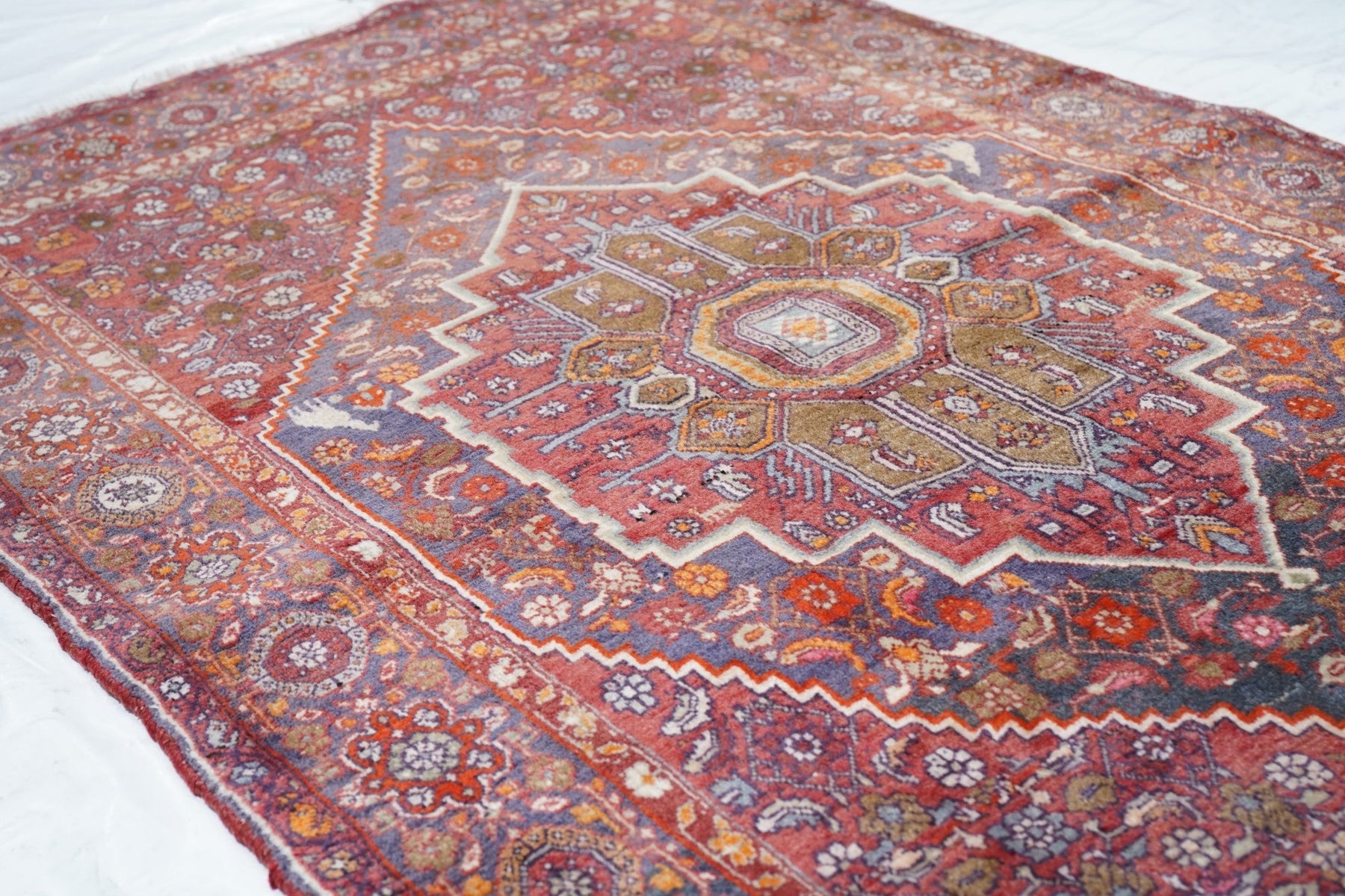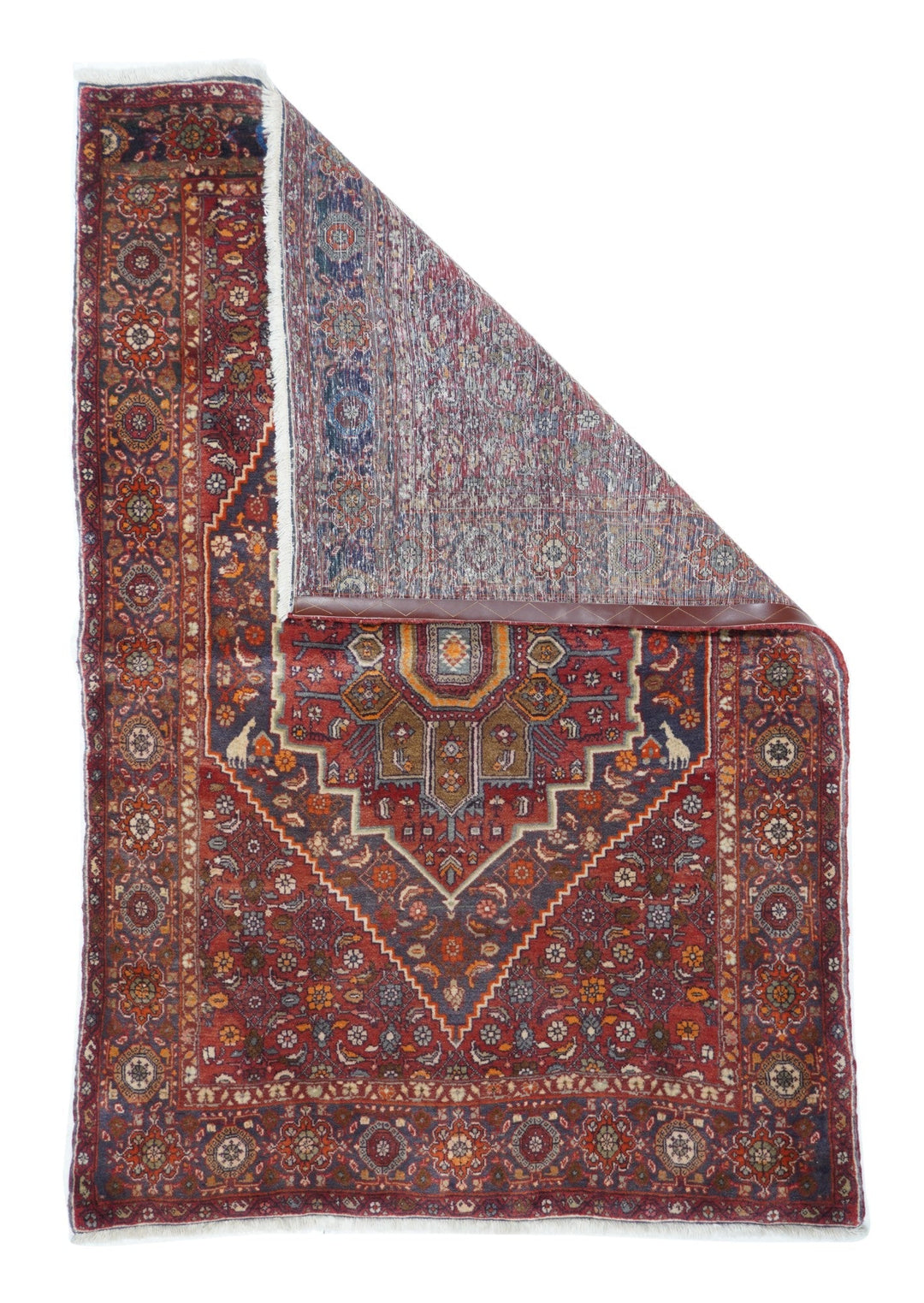 The town and surrounding Kurdish carpets of the eponym city, often in room or larger sizes. All wool before 1920, cotton warp afterward. Medallion and allover patterns. Heavy and compact. City weavers work from samplers (wagirehs). Village Bidjars are in scatter sizes, with more geometric patterns. Bidjar weaves range from moderate to very fine. Scatters yes, runners very few.