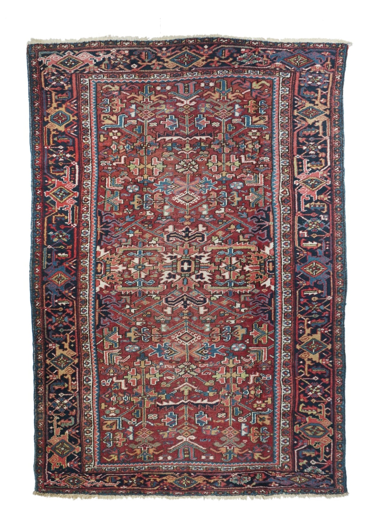 The numerous rugs of the famous NW Persian weaving district, from small scatters to giant carpets and a few runners, in semi-geometric medallion, centralized and strictly allover patterns, on cotton foundations, with crisp natural dye palettes including a warm madder red. Coarse to moderate weave. Works with any décor, always popular.