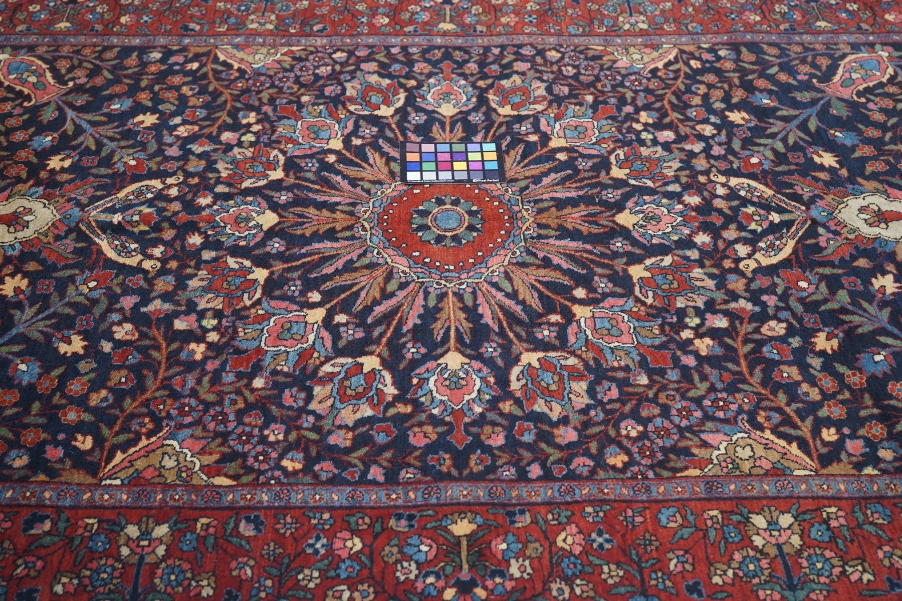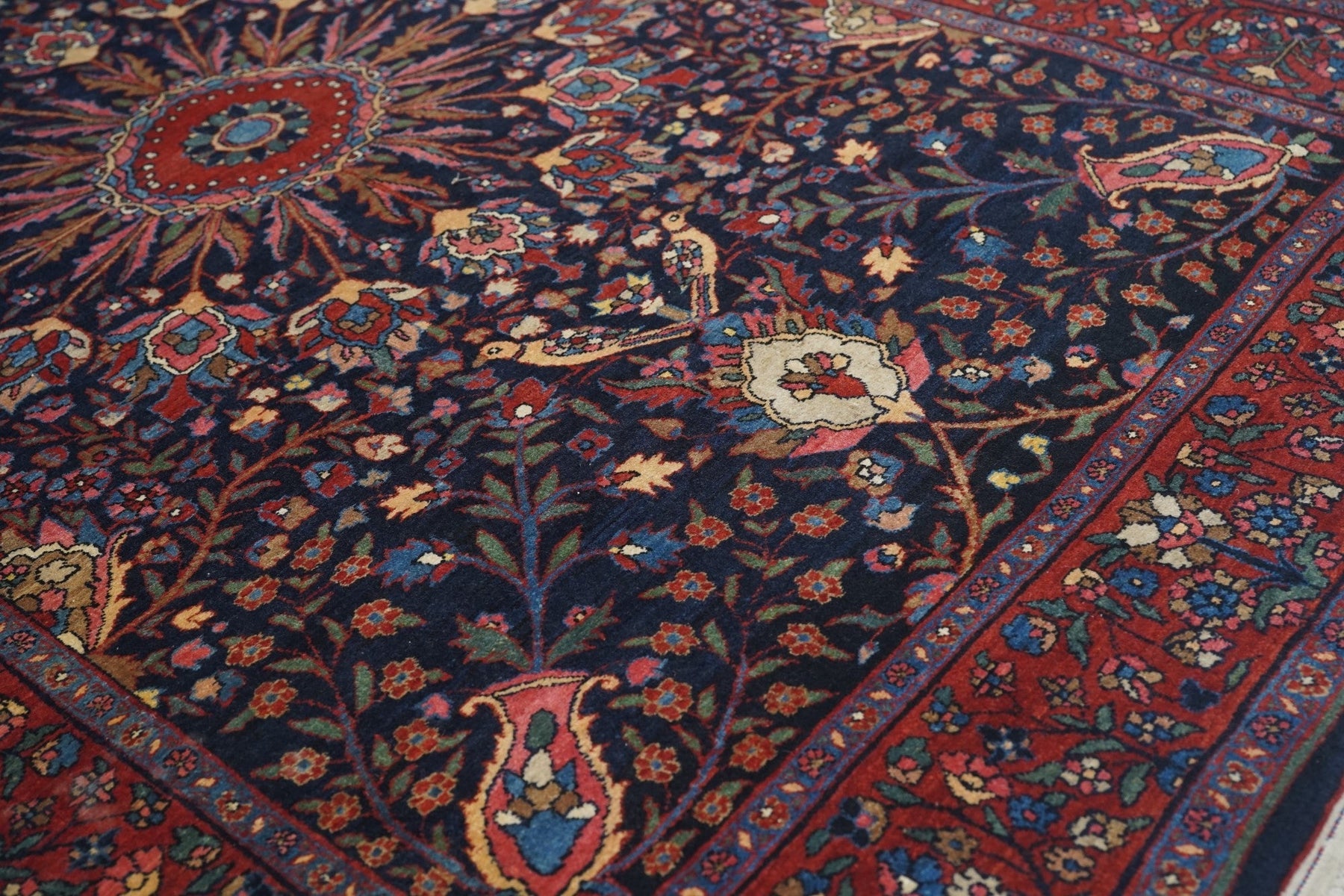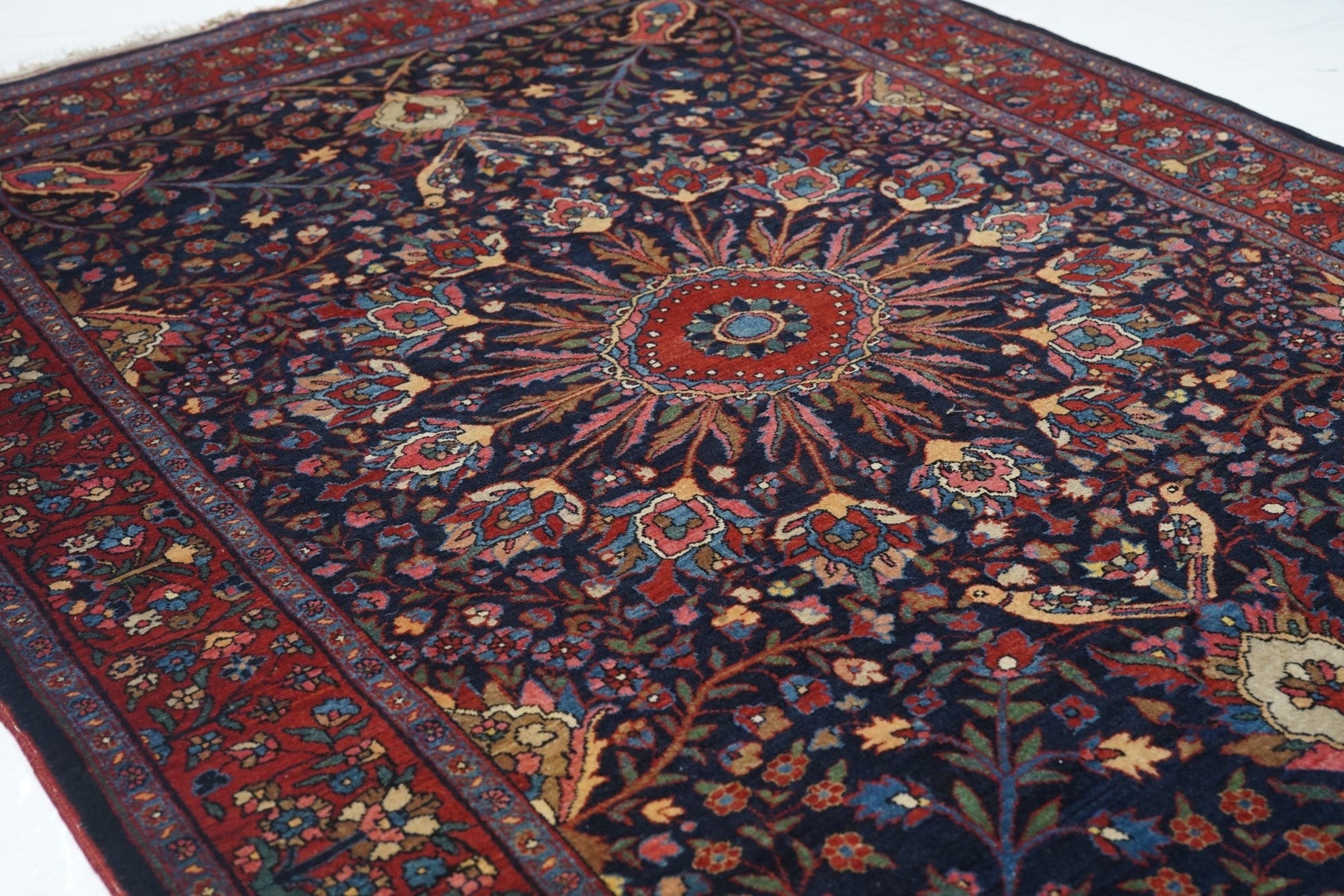 The town and surrounding Kurdish carpets of the eponym city, often in room or larger sizes. All wool before 1920, cotton warp afterward. Medallion and allover patterns. Heavy and compact. City weavers work from samplers (wagirehs). Village Bidjars are in scatter sizes, with more geometric patterns. Bidjar weaves range from moderate to very fine. Scatters yes, runners very few. Expensive, but incredibly long-wearing.