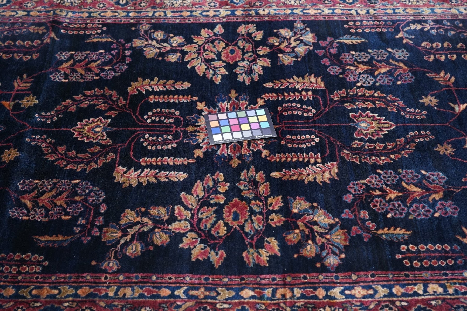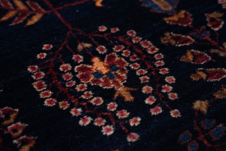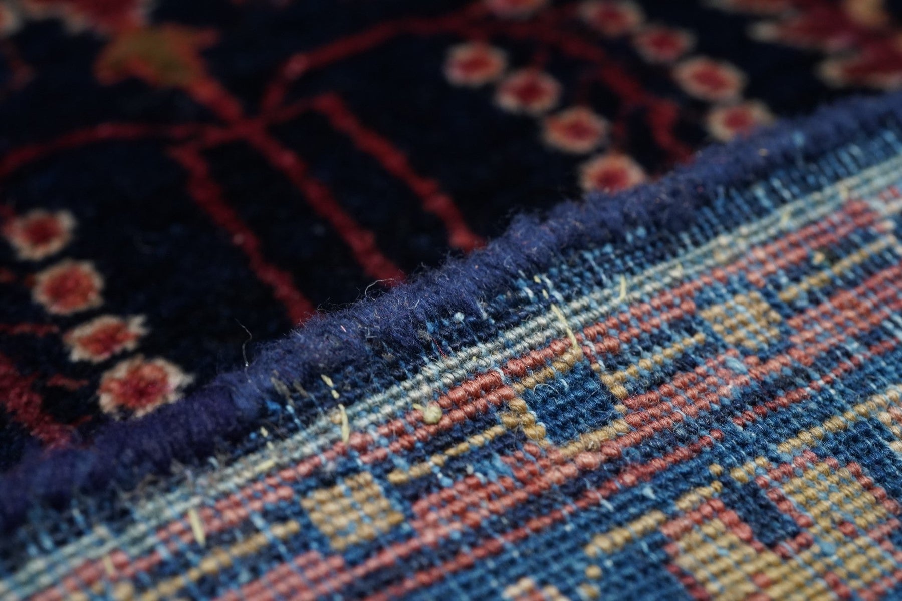 The well-woven village carpets from the Arak/Sultanabad area, especially the red field/navy border, detached floral spray pattern “American Sarouks” of the 1920-1970 period. Robust and leathery, on cotton. Recent examples show medallions and classic allover patterns. Best Sarouks are reputed to be Mohajerans. Moderate to medium priced.