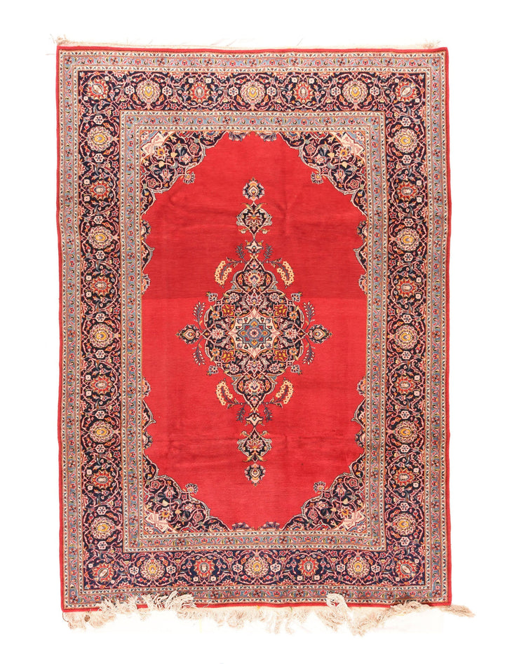 Central Persian city known for finely woven. room size and scatter rugs, with dominant reds and navy, and medallion patterns and swirling palmettes. Wool pieces. Active since the 16th century, but with breaks, Revival began with Mohtasham (see below) in the 1880’s. Generally medium-high prices.
