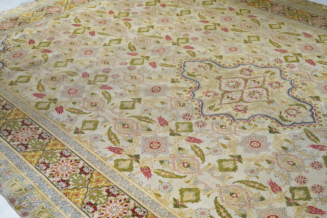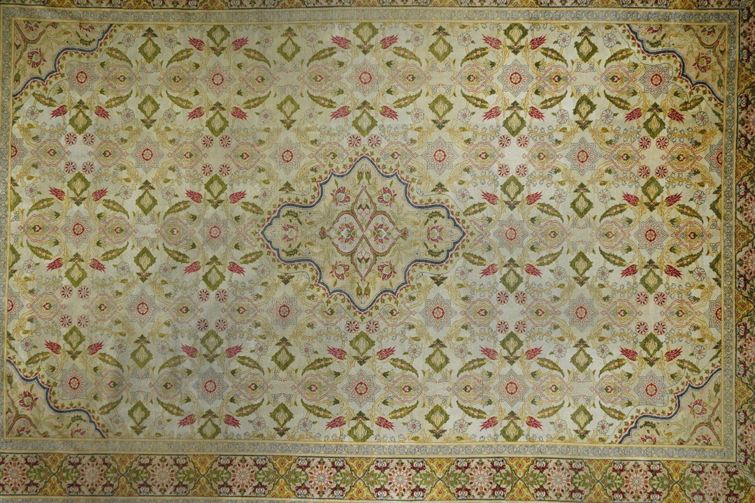Late 18th Century. The commercial room size carpets and scatter rugs of medium weave and precise drawing, from workshops in the eastern Anatolian city of Sivas. The “Turkish Tabriz”. Cotton foundations, lowish pile.Repeating and medallion layouts. Usually vintage. Moderate to medium priced.