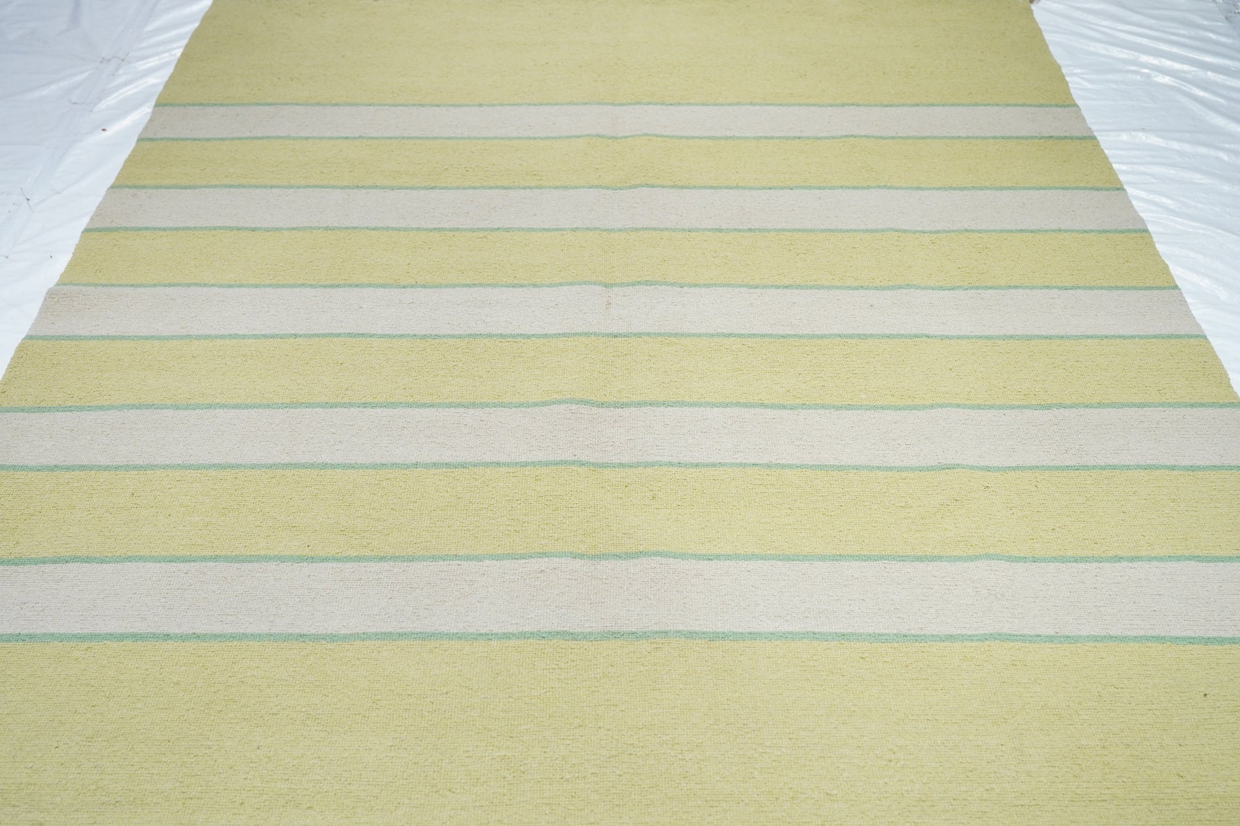 The palette of larger Herizes is retained, but the pattern of this NW Persian village ruglet is switched to a small dark blue hexagon centre with four serrated leaves, and very long pendants. The madder red ground also features more en suite leaves. Dark blue border with floating rosettes. Corners in a desirable sky blue. Moderately coarse weave, rustic work on cotton. Slight end reduction and related issues.