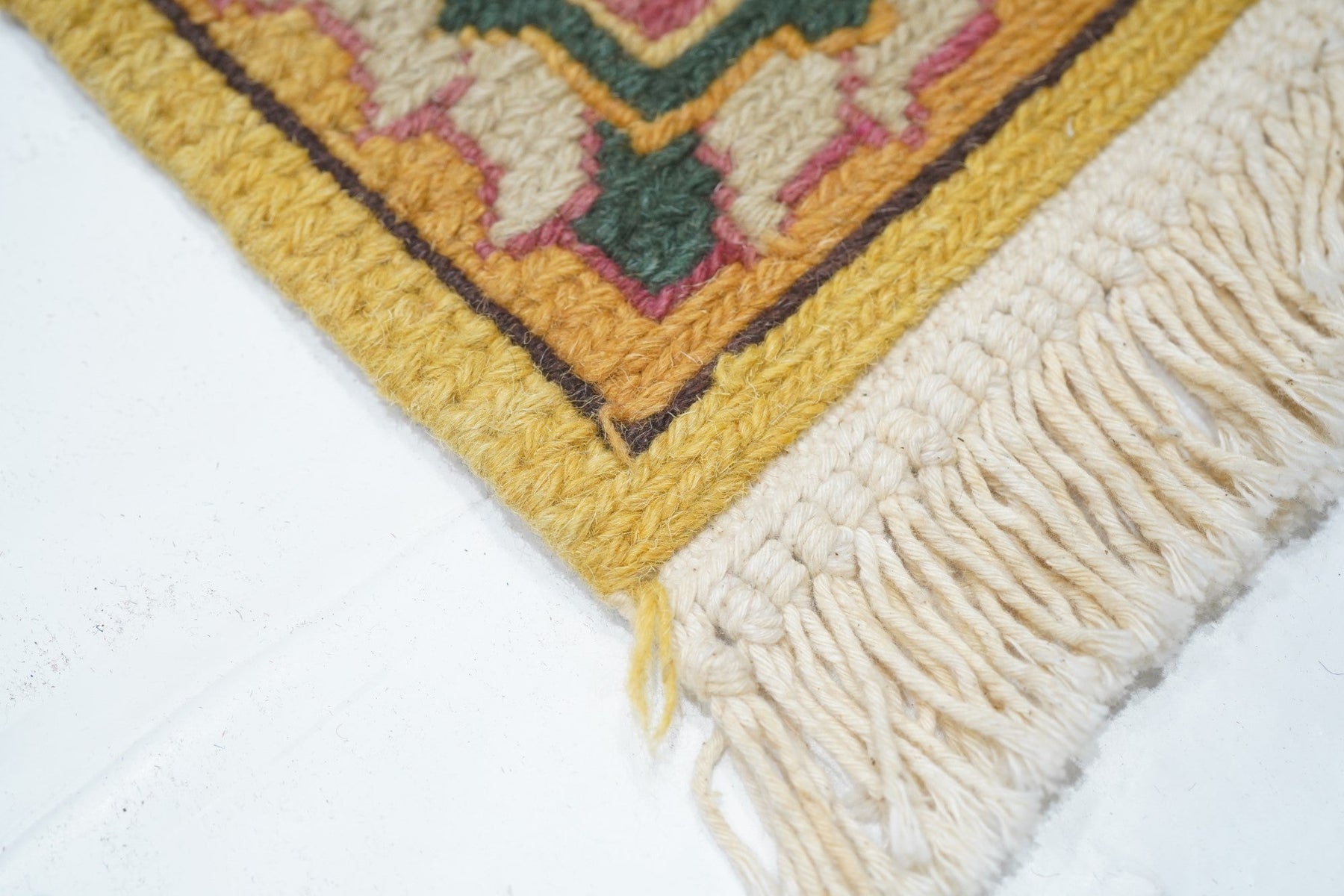 A technique rather than a specific type, in which warps are wrapped by colored wefts to create a pattern. Turkish, Persian and other types.  Produces a flat surface, pileless rug which may be turned over for extended use. Lends itself to geometric patterns. Also used on bag faces and as a partial design element on pile rugs. Prices vary.