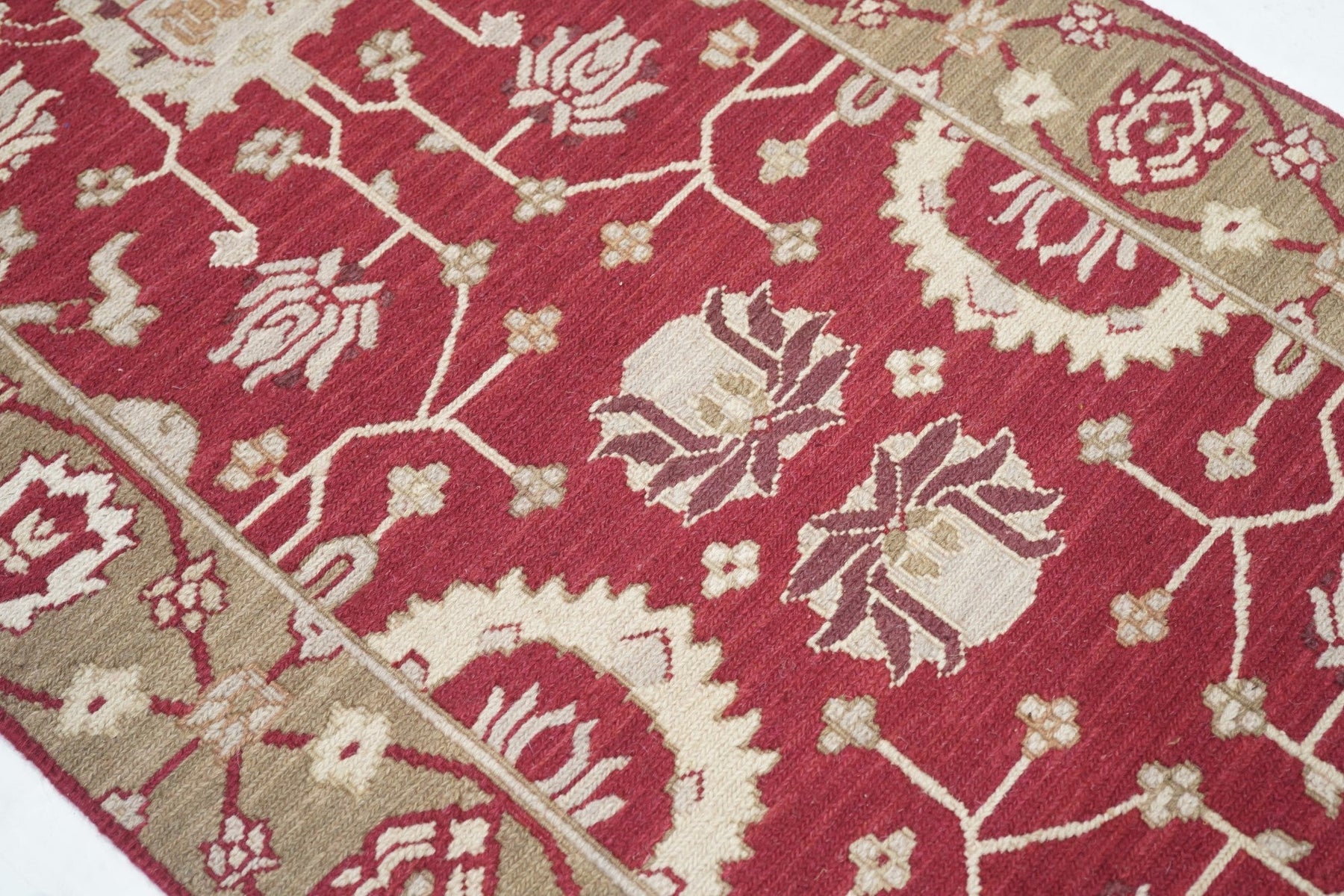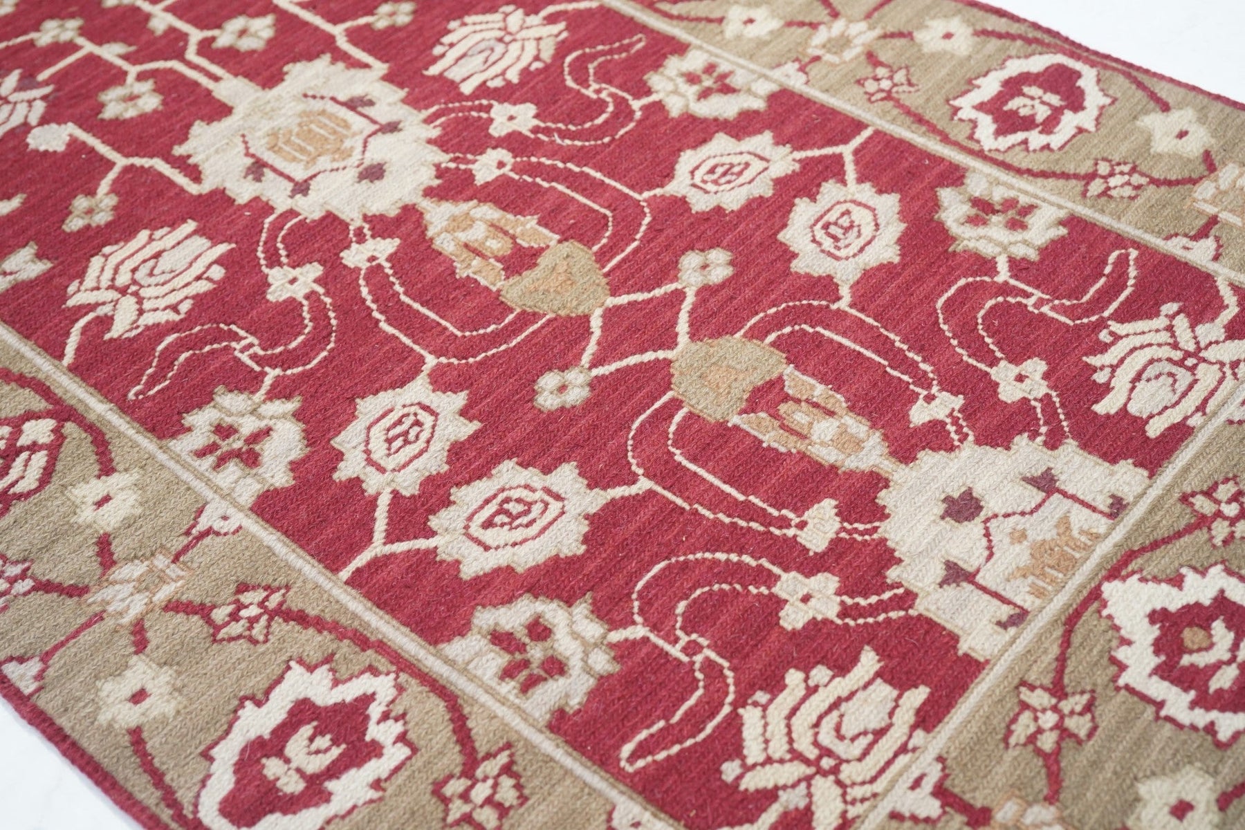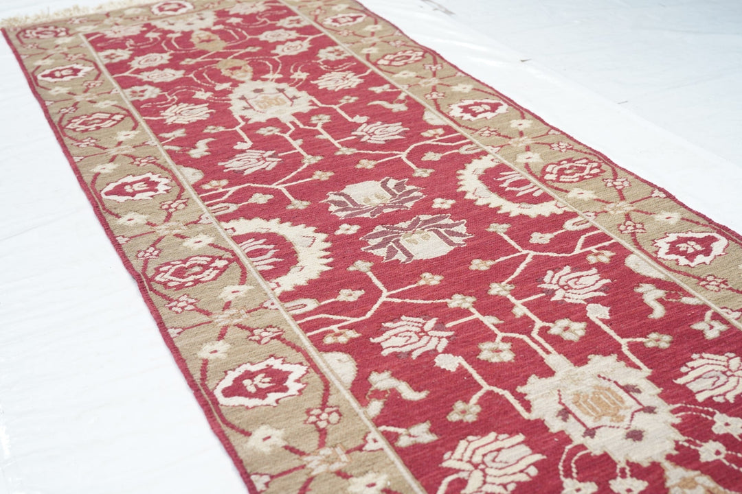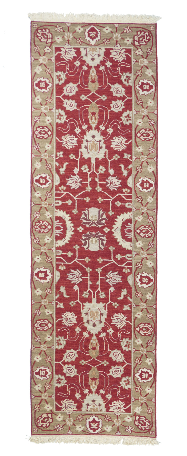 A technique rather than a specific type, in which warps are wrapped by colored wefts to create a pattern. Turkish, Persian and other types.  Produces a flat surface, pileless rug which may be turned over for extended use. Lends itself to geometric patterns. Also used on bag faces and as a partial design element on pile rugs. Prices vary.