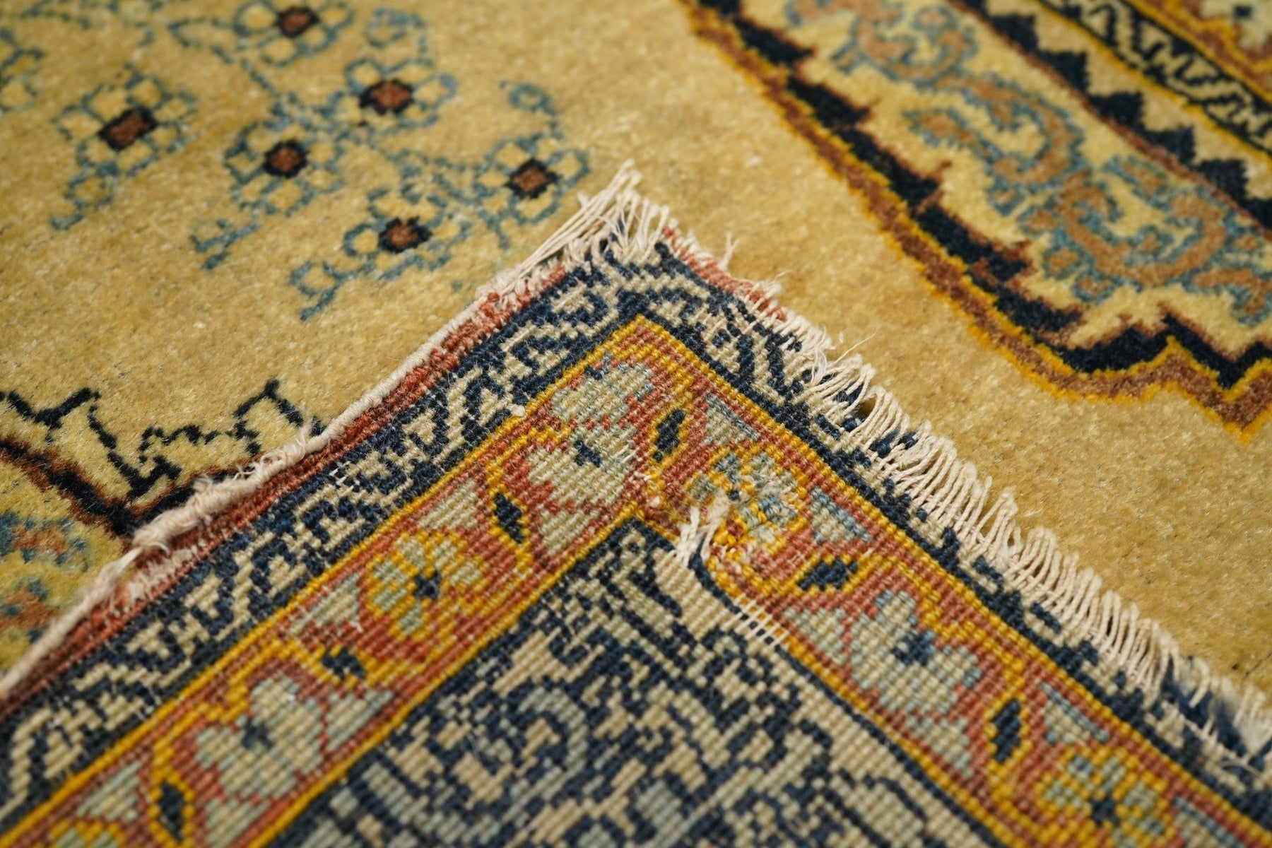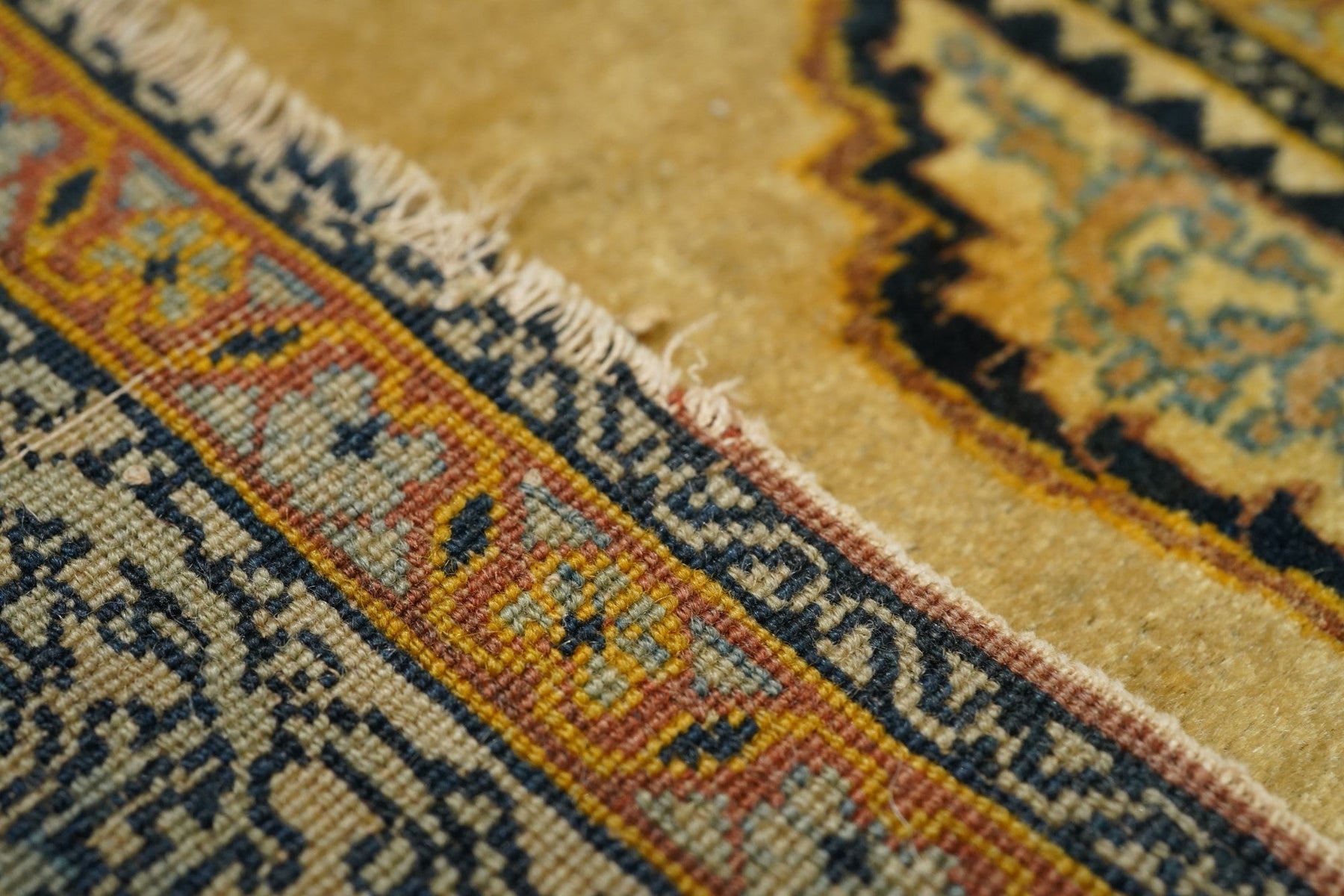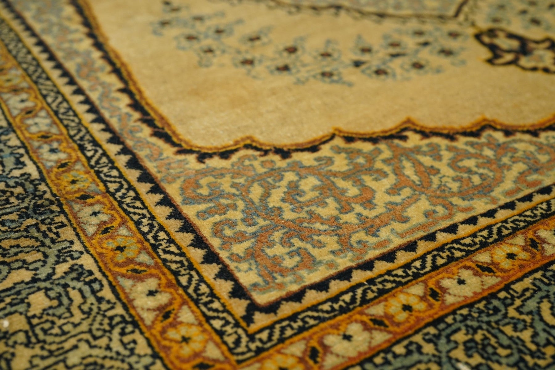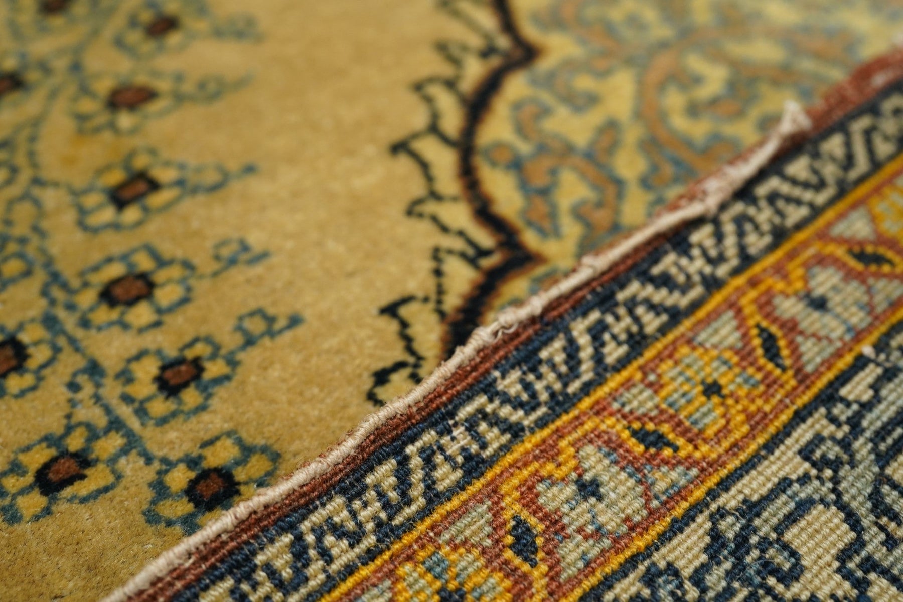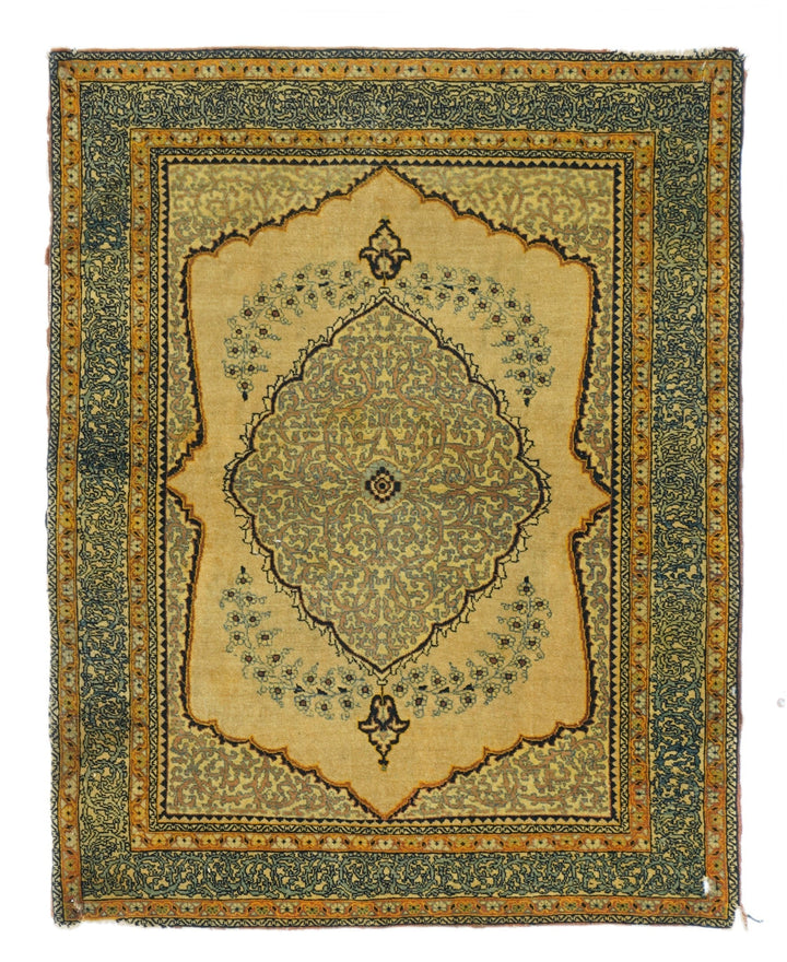 The enormous output of carpets and scatters in virtually every style: medallion, centralized, directional or allover, trein a variety of densities from moderate to extremely fine, in wool, with primarily curvilinear drawing, adaptedoften from classical or local styles. Prayer rugs, pictorials and mansion-sized pieces. See also Hajji Jalilli Tabriz. Brisk pile, neat drawing, balanced compositions. More popular in Europe and America. Prices from modest to impossible.