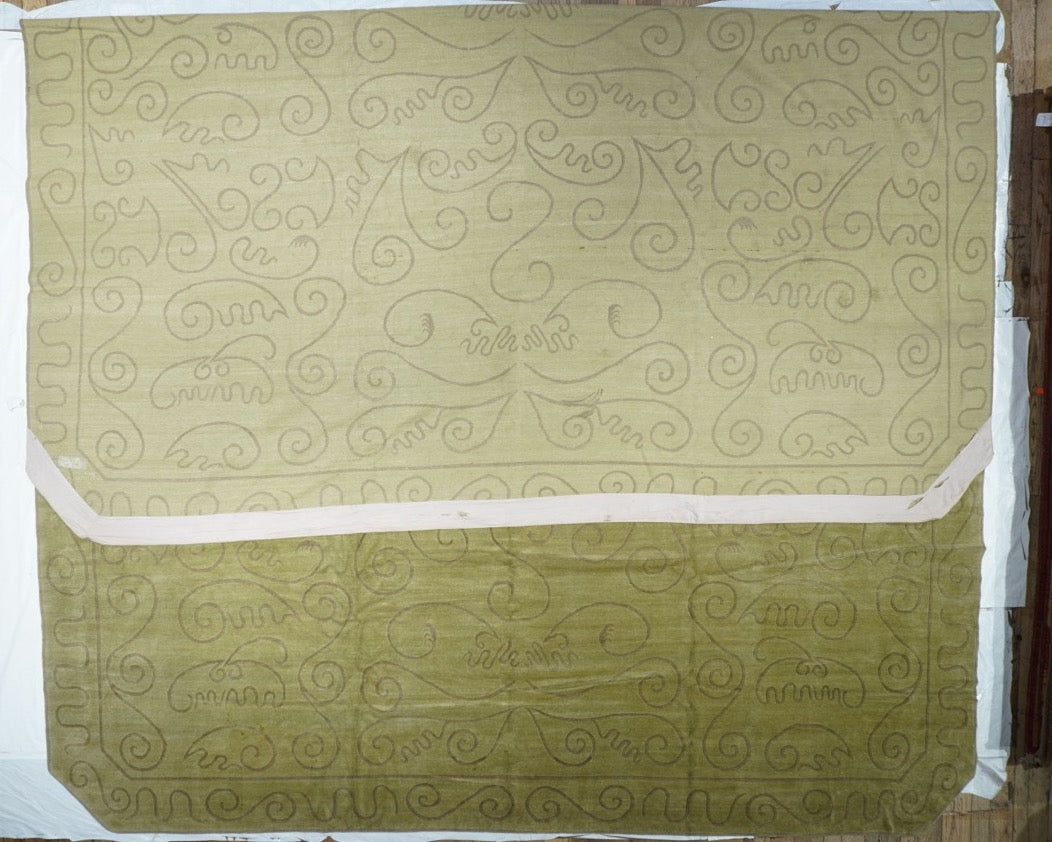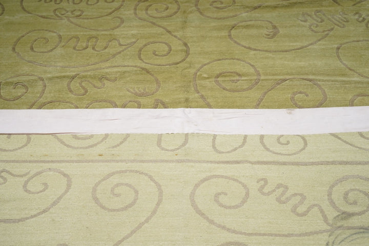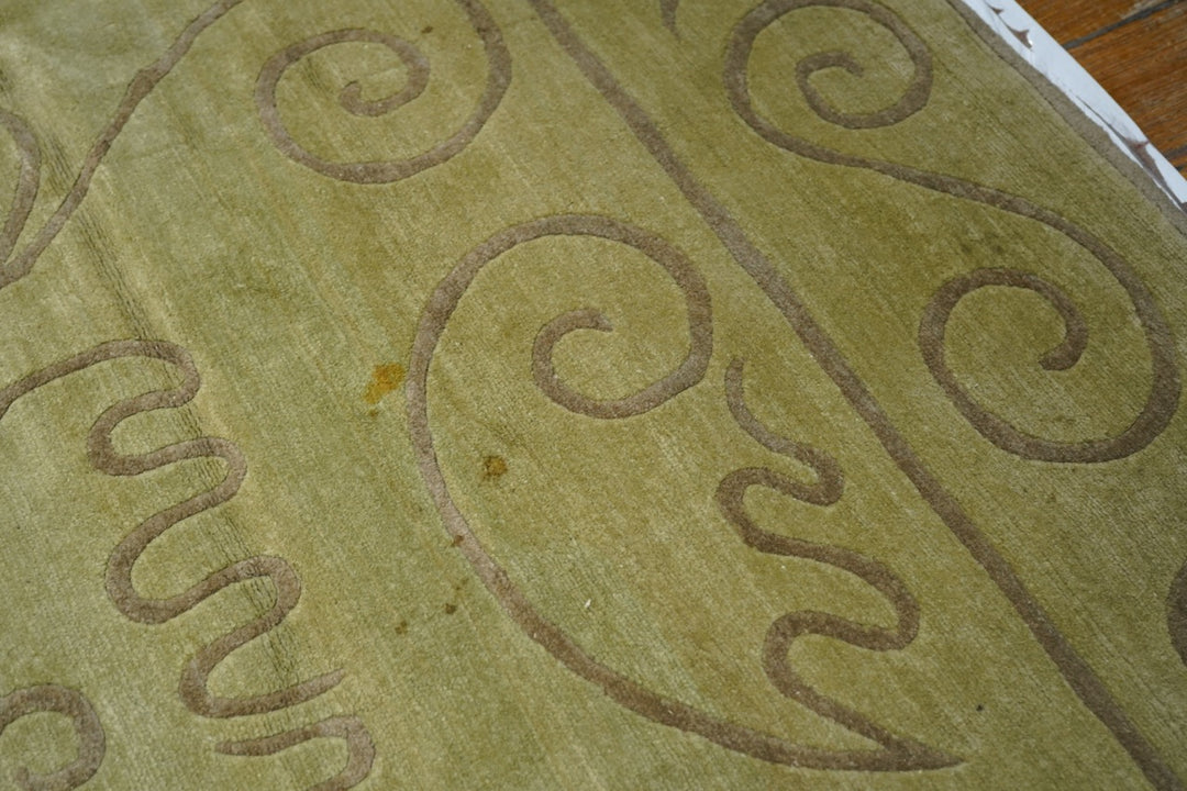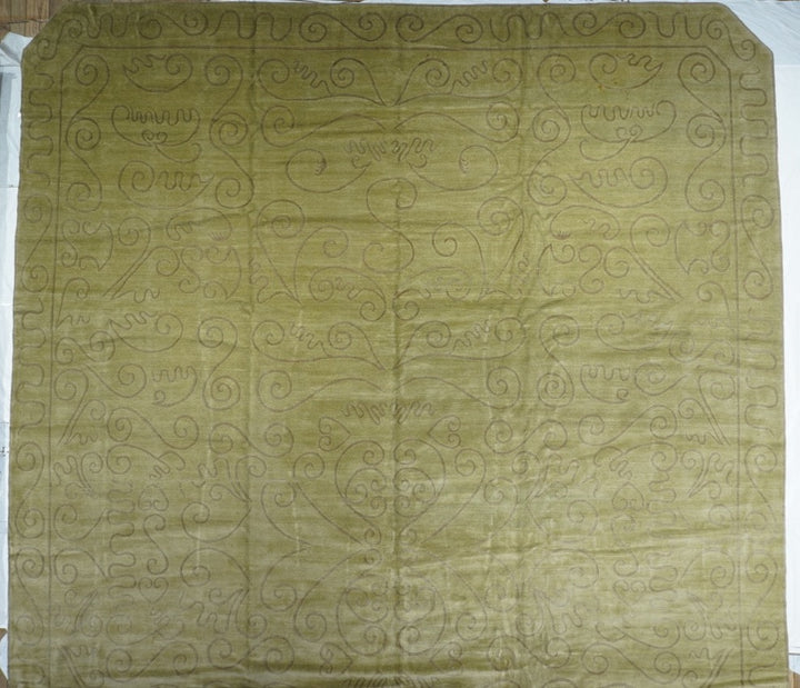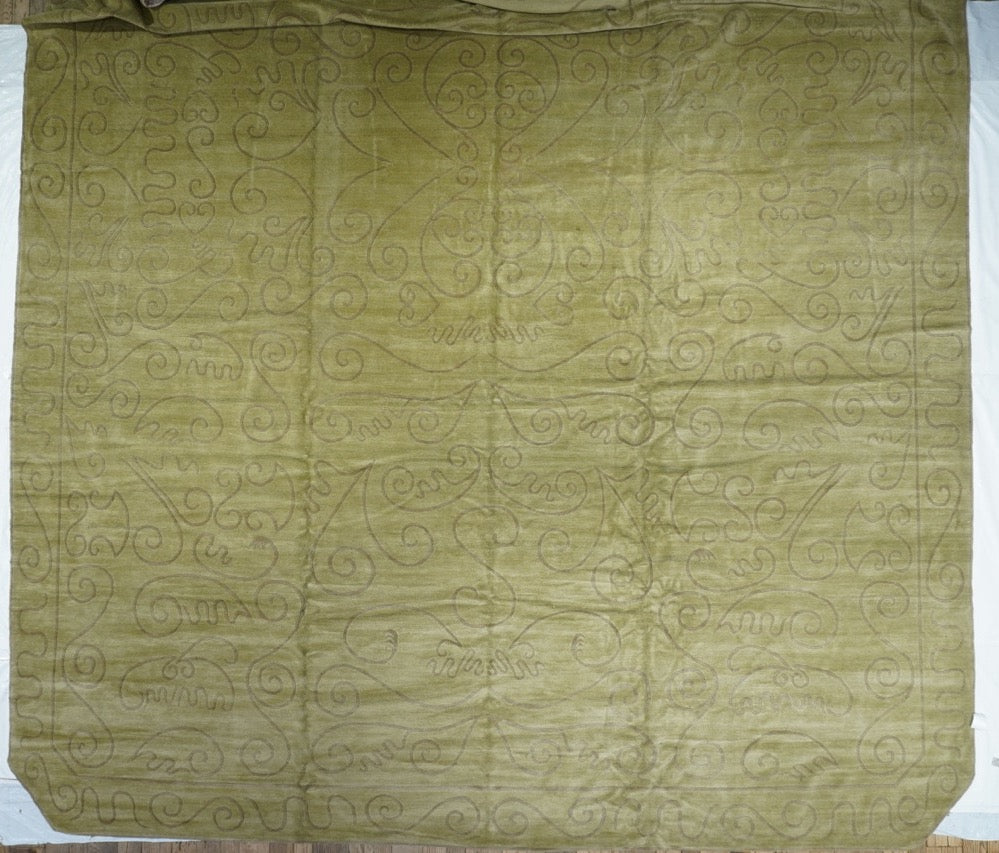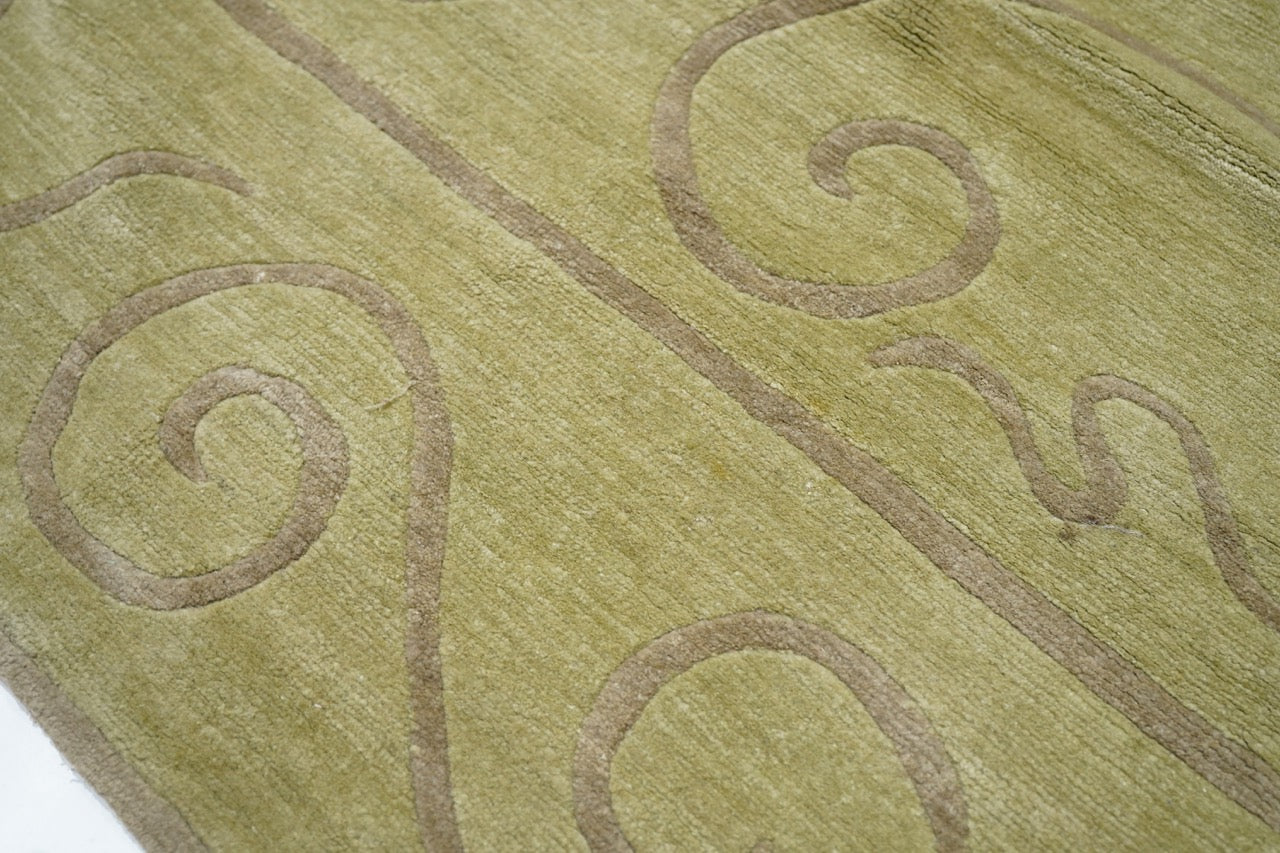 The generally small rugs of the plateau region, with dragon, tantric and allover patterns. Bright colors. Older are all wool, later with cotton wefts. A few large carpets. Shaggy runners and seating rugs.Large, often monochrome, carpets are now woven in Nepal by Tibetan refugees. Coarse to moderate weaves. Moderate to medium prices.
