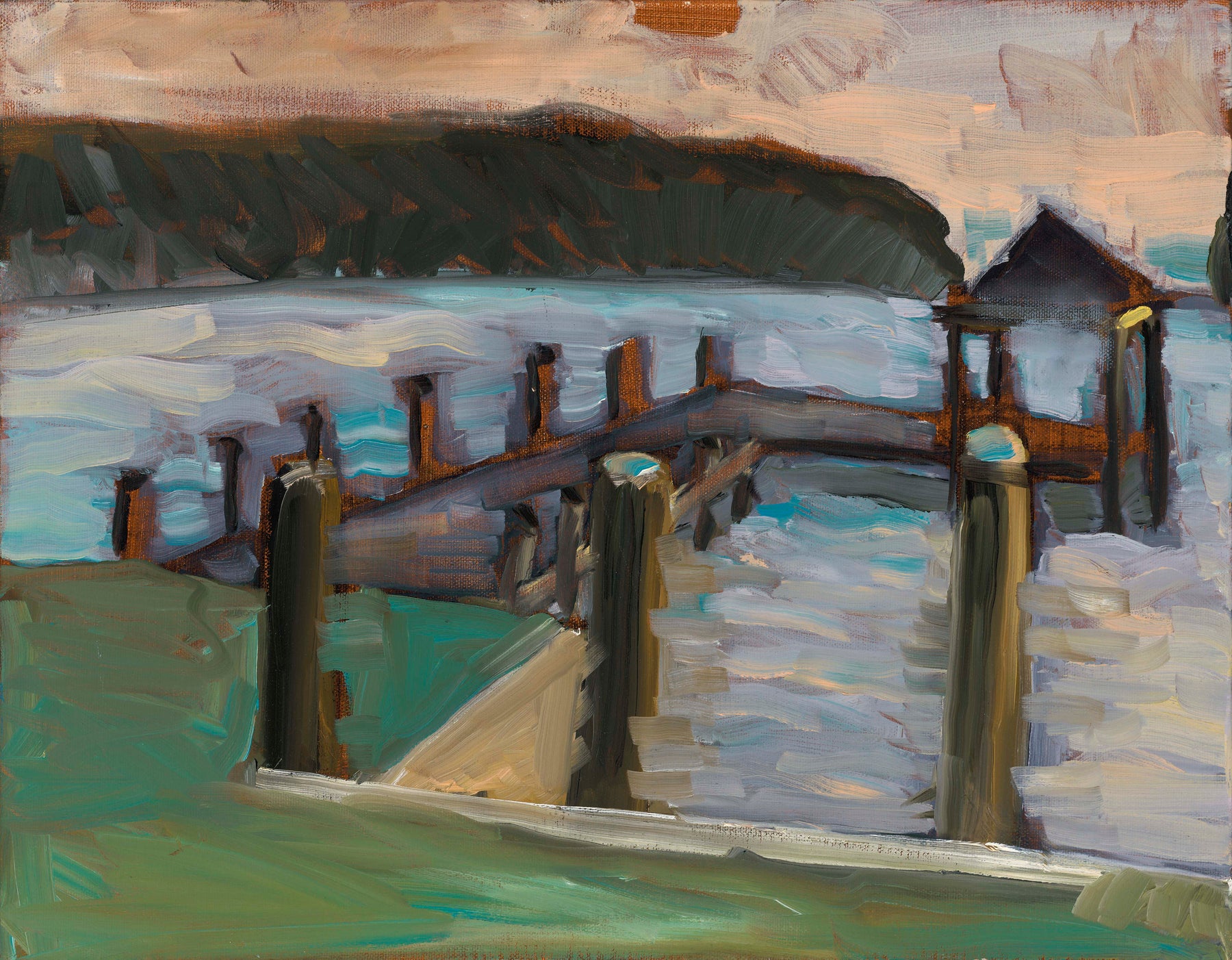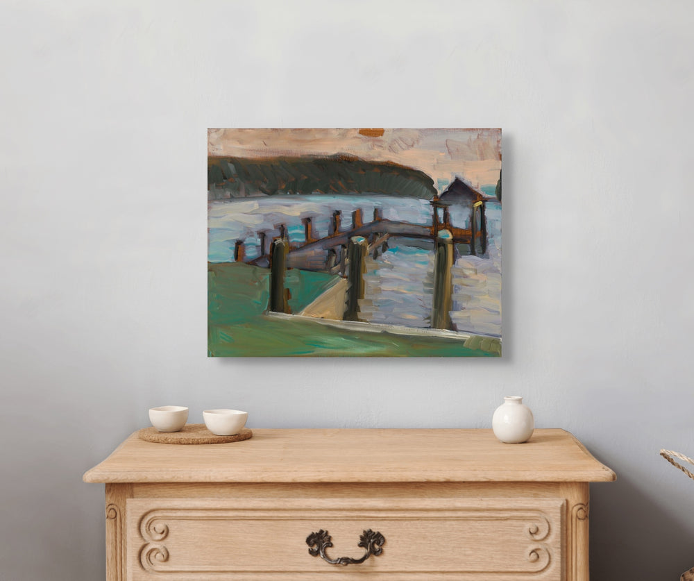 Tilghman Island Sunset. Sunset Landscape painted en plein air. Oil on canvas. 14' x 18' (35.5 x 45.5 cm)