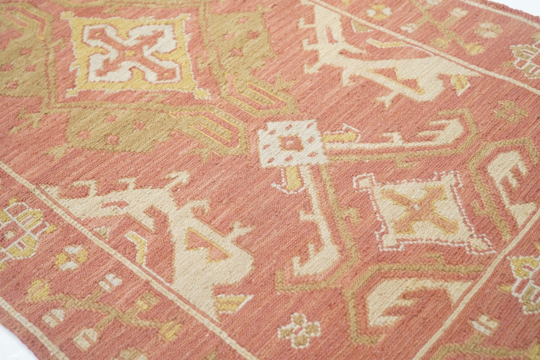 A technique rather than a specific type, in which warps are wrapped by colored wefts to create a pattern. Turkish, Persian and other types. Produces a flat surface, pileless rug which may be turned over for extended use. Lends itself to geometric patterns. Also used on bag faces and as a partial design element on pile rugs.