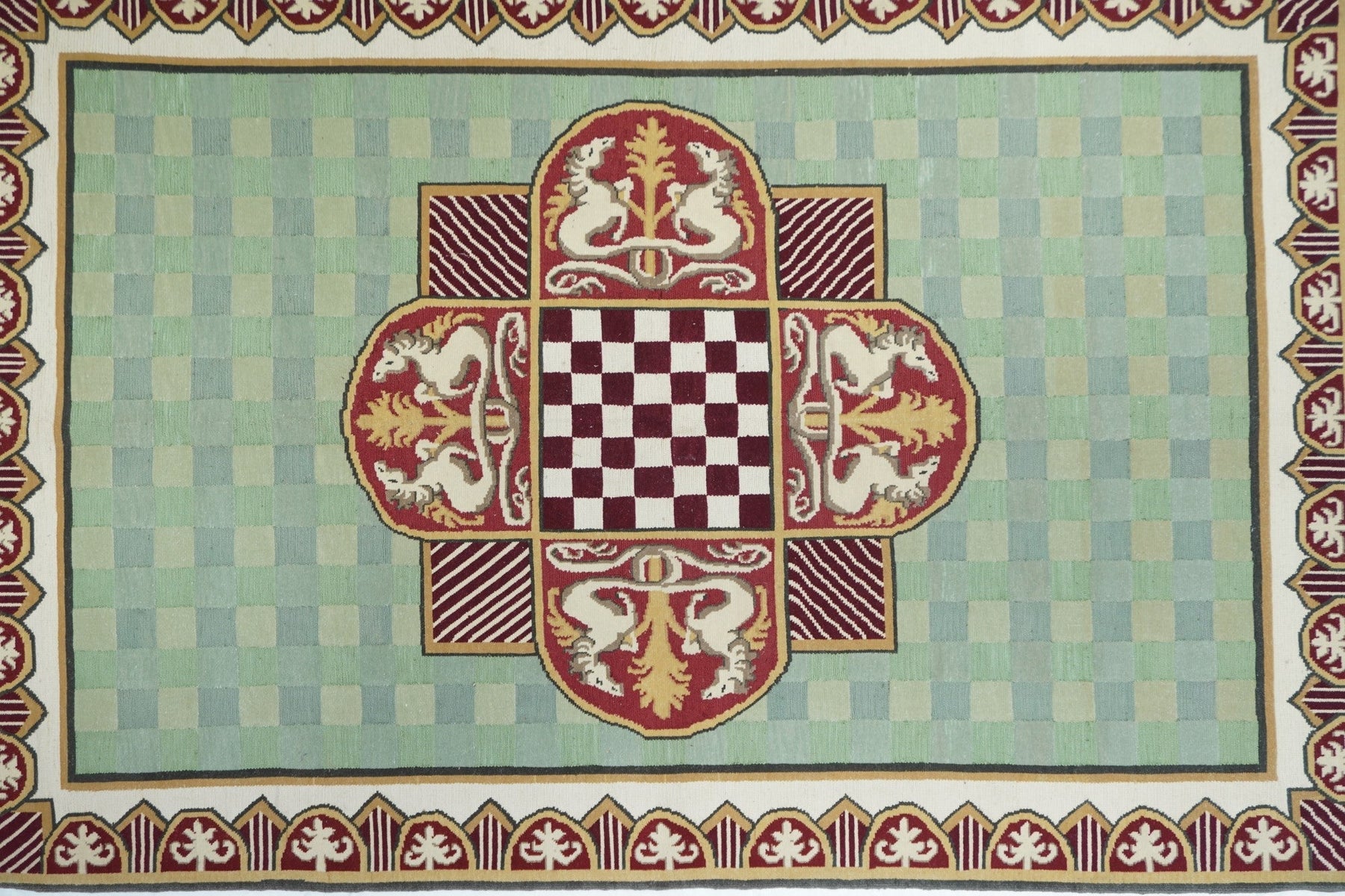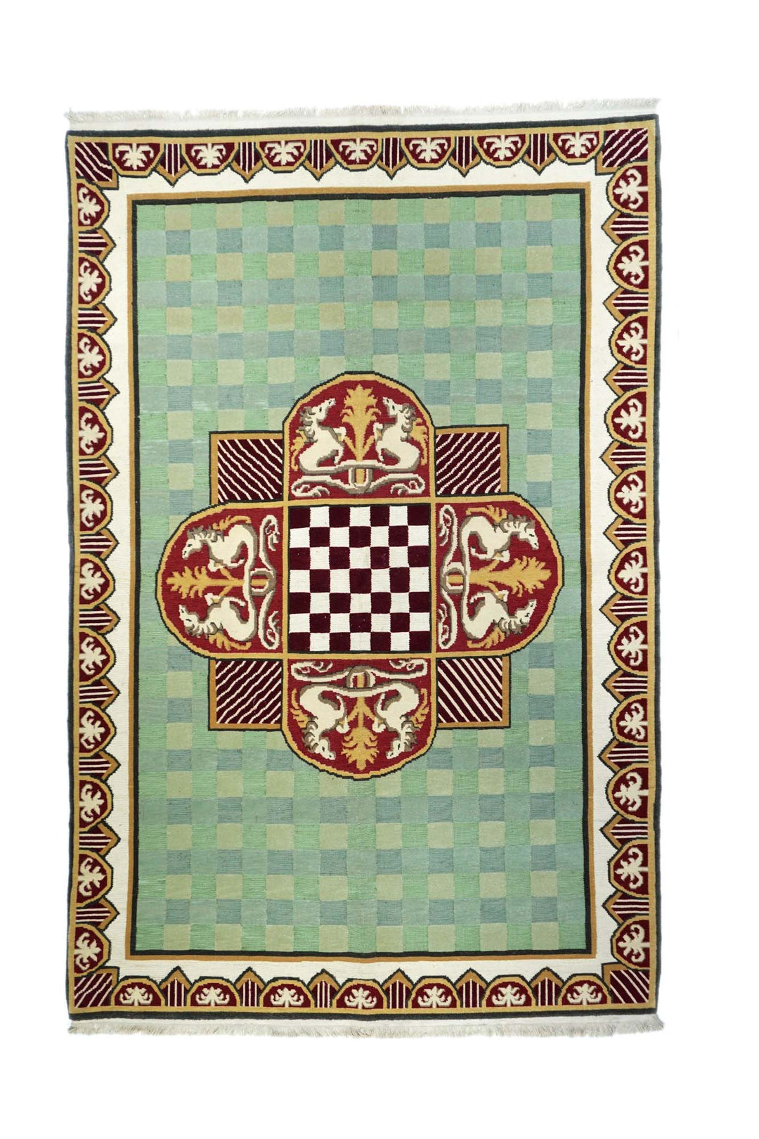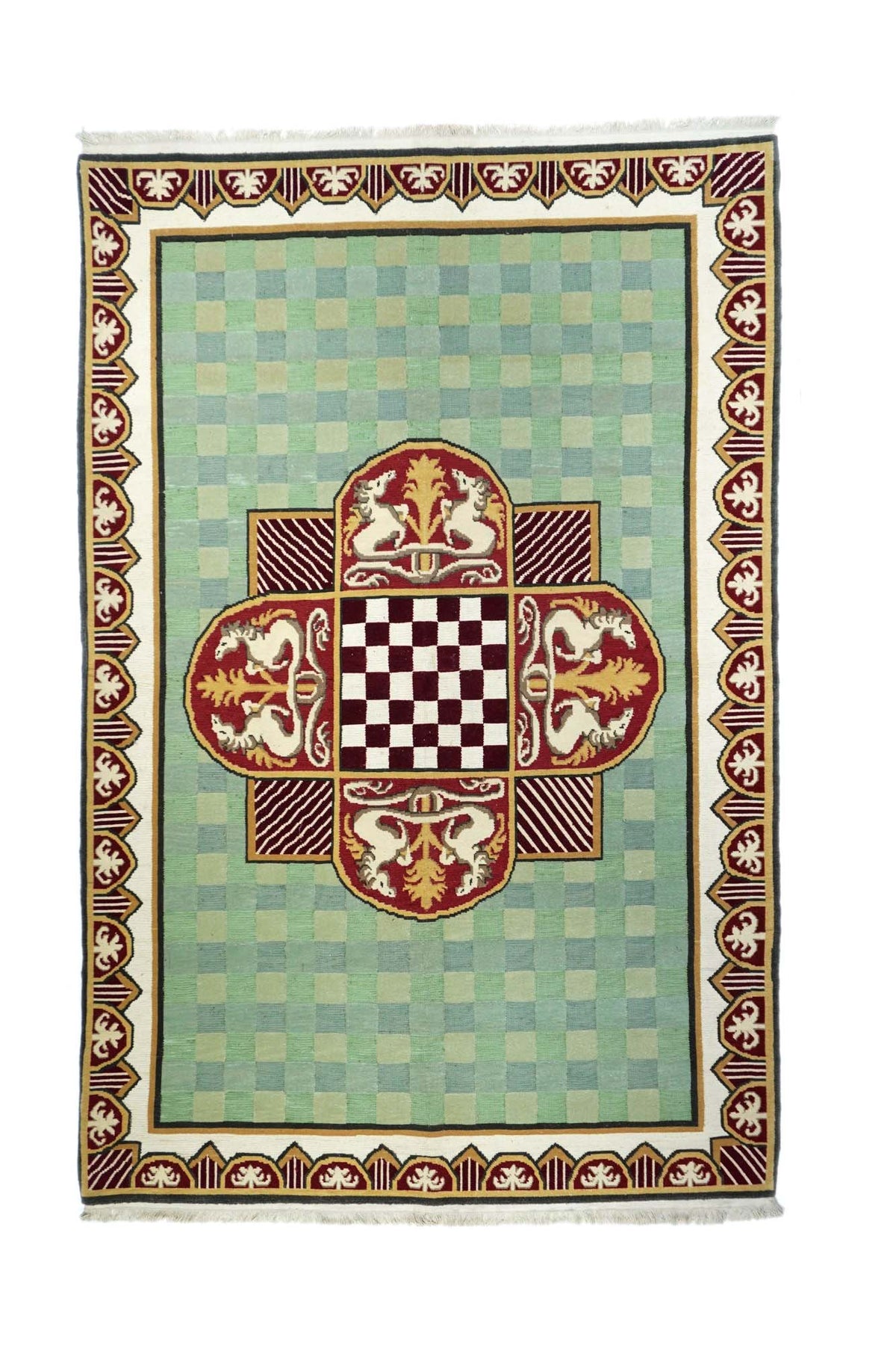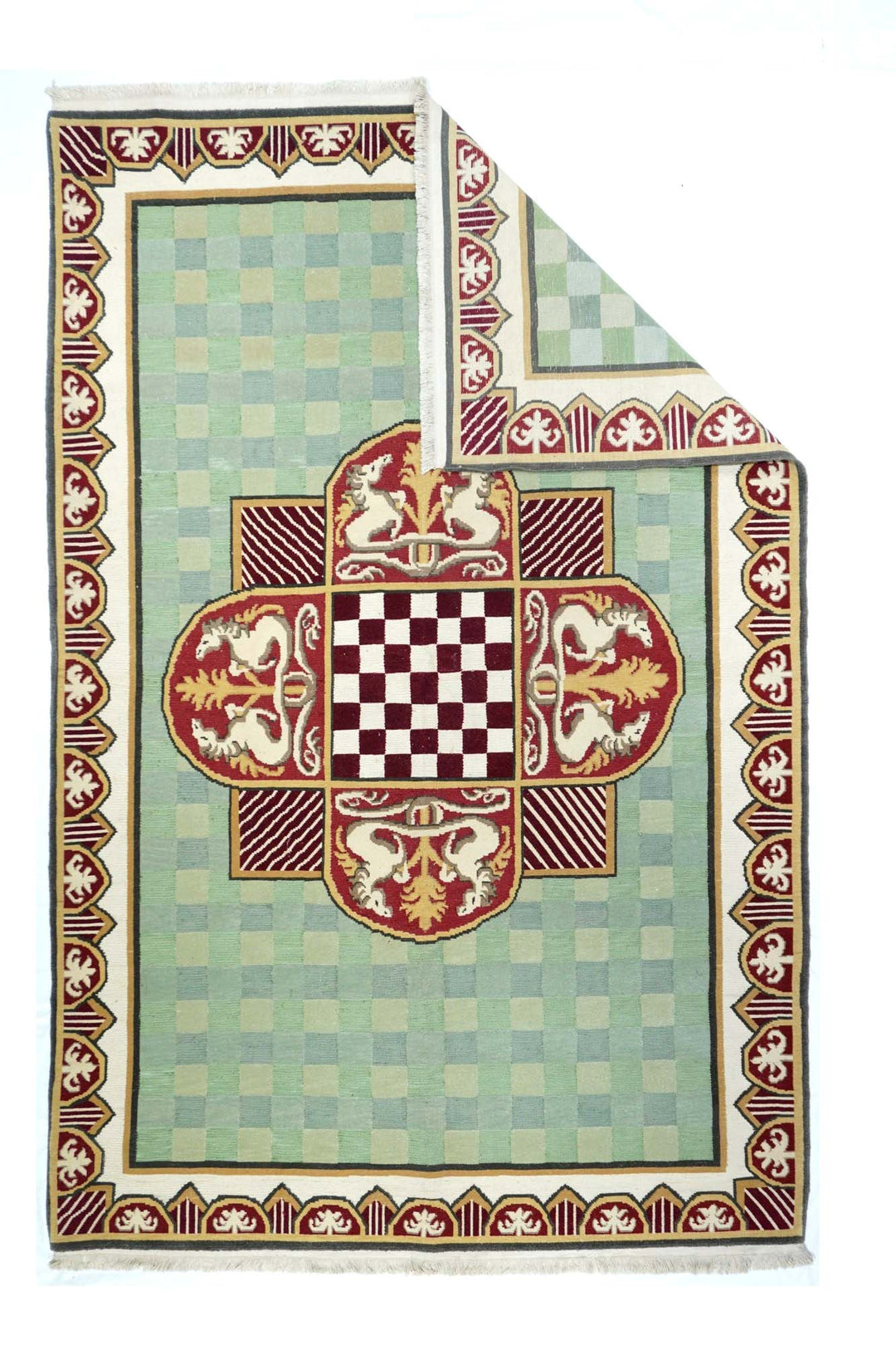 A technique rather than a specific type, in which warps are wrapped by colored wefts to create a pattern. Turkish, Persian and other types. Produces a flat surface, pileless rug which may be turned over for extended use. Lends itself to geometric patterns. Also used on bag faces and as a partial design element on pile rugs.